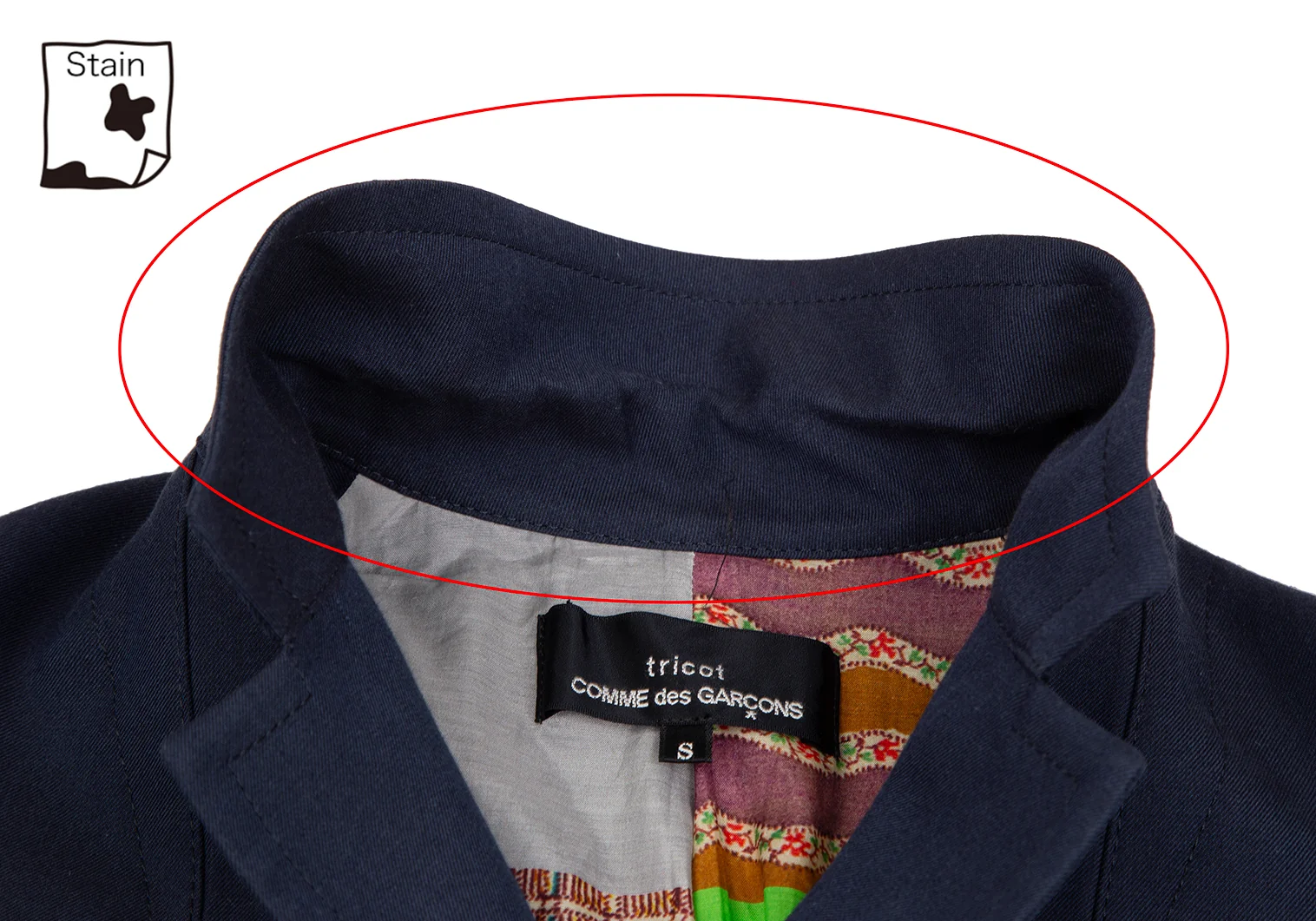 襟・袖に薄汚れがあります。(写真参照)その他目立ったシミ、汚れ、ほつれ等なくいい状態です。クリーニング済み