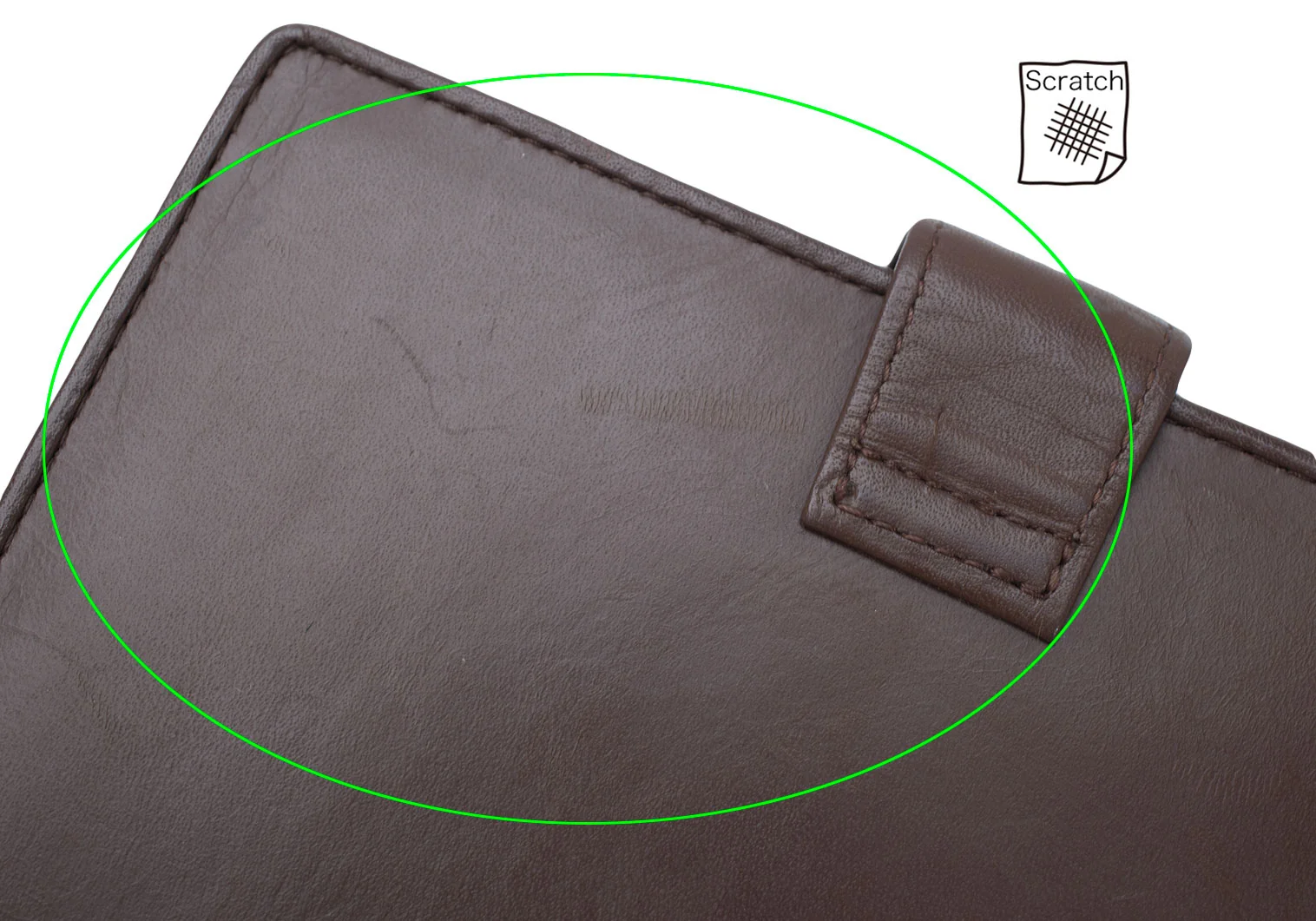 表面全体に擦れ傷、内側に薄汚れがあります(写真参照)。その他目立った汚れ、ダメージ等はありません。
