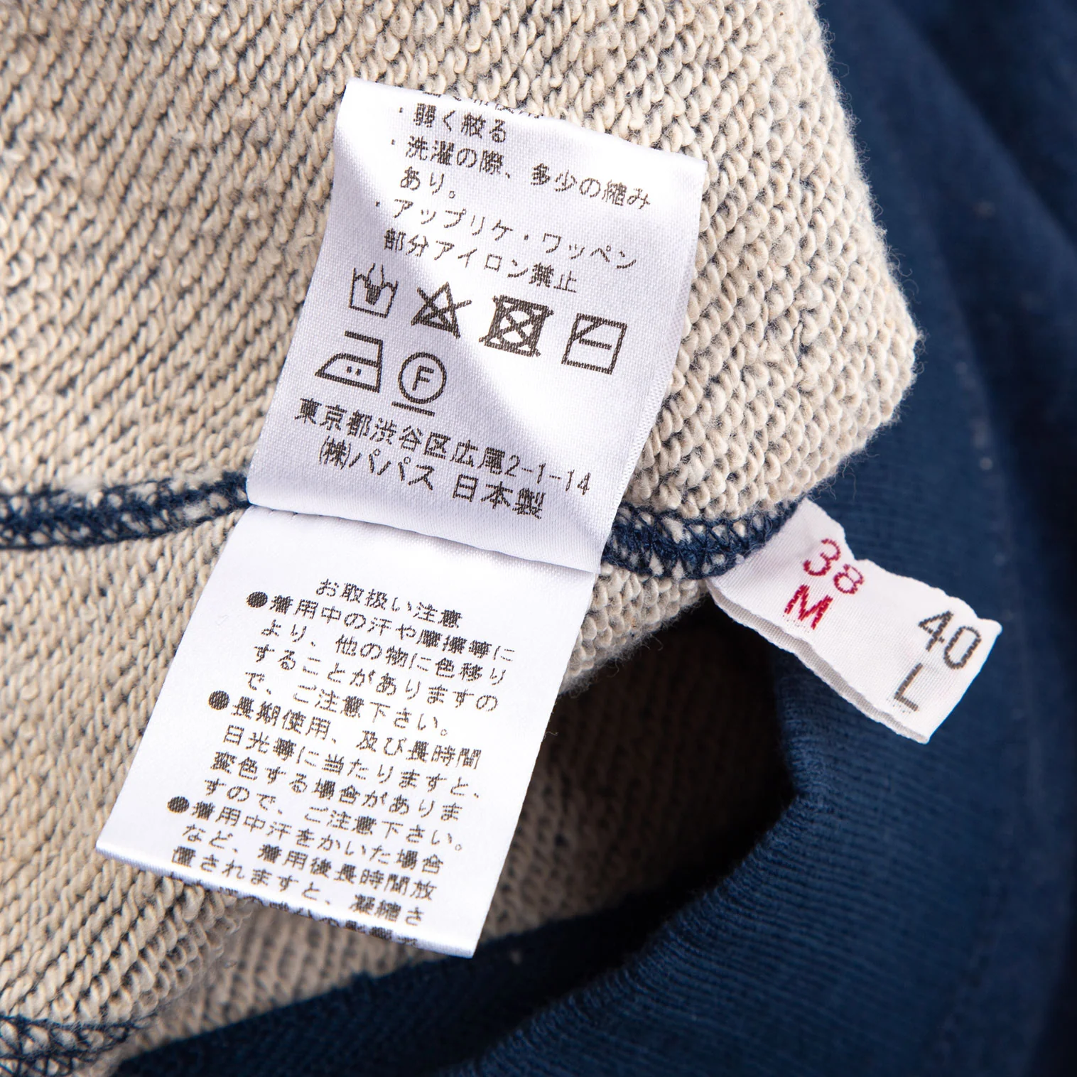 綿100% リブ部分 綿95% ポリウレタン5% 別布 ポリエステル75% アクリル25% 引手 牛革