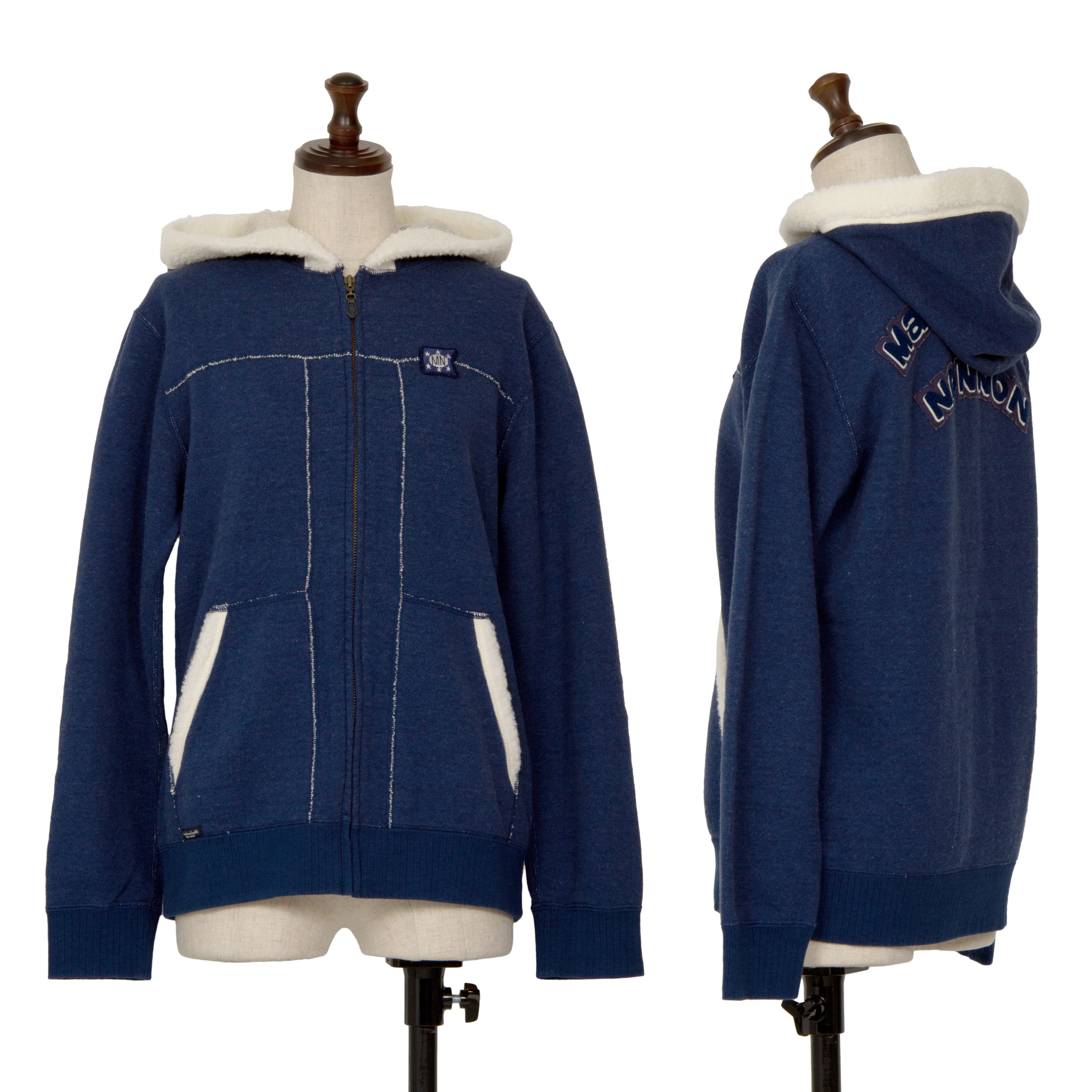 マドモアゼルノンノン ノンノNON NO Mademoiselle NON NON バックロゴボアパイピングジップアップスウェット 青38M