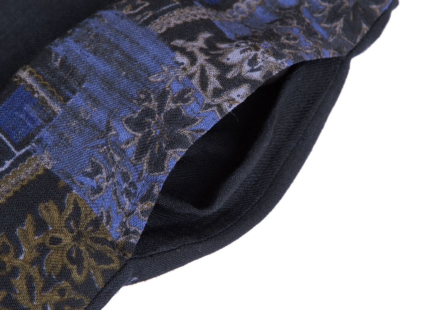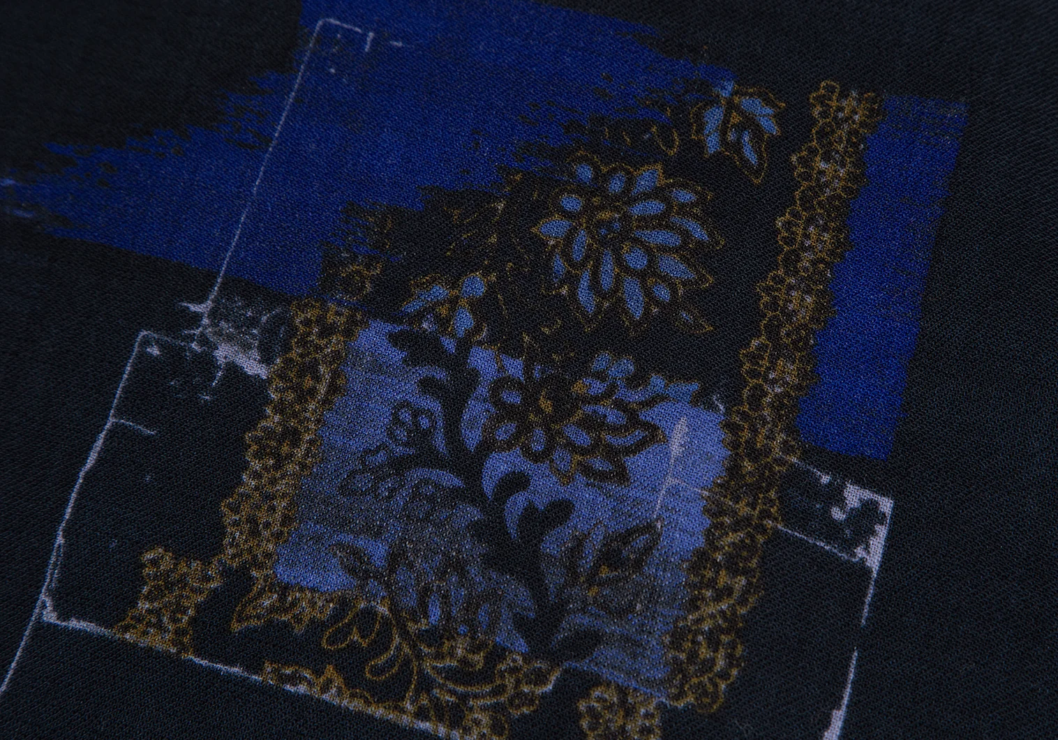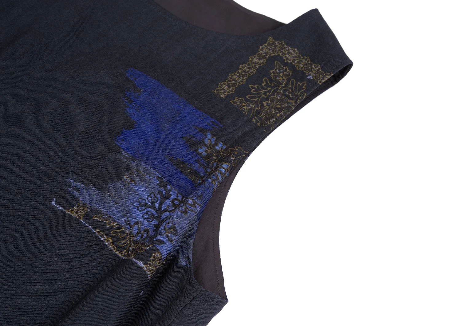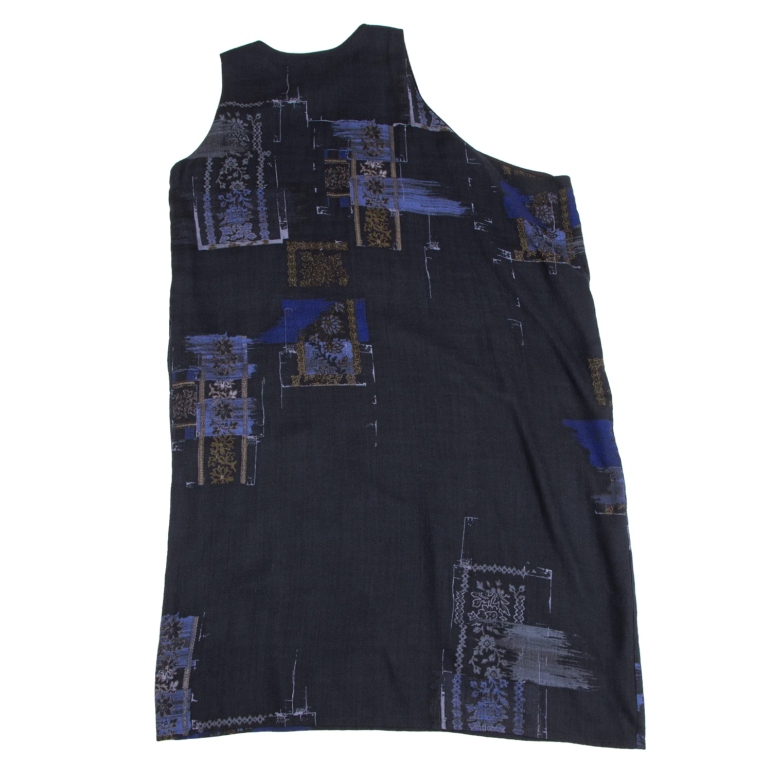ワイズY's フラワープリントアシンメトリースリーブワンピース 紺2