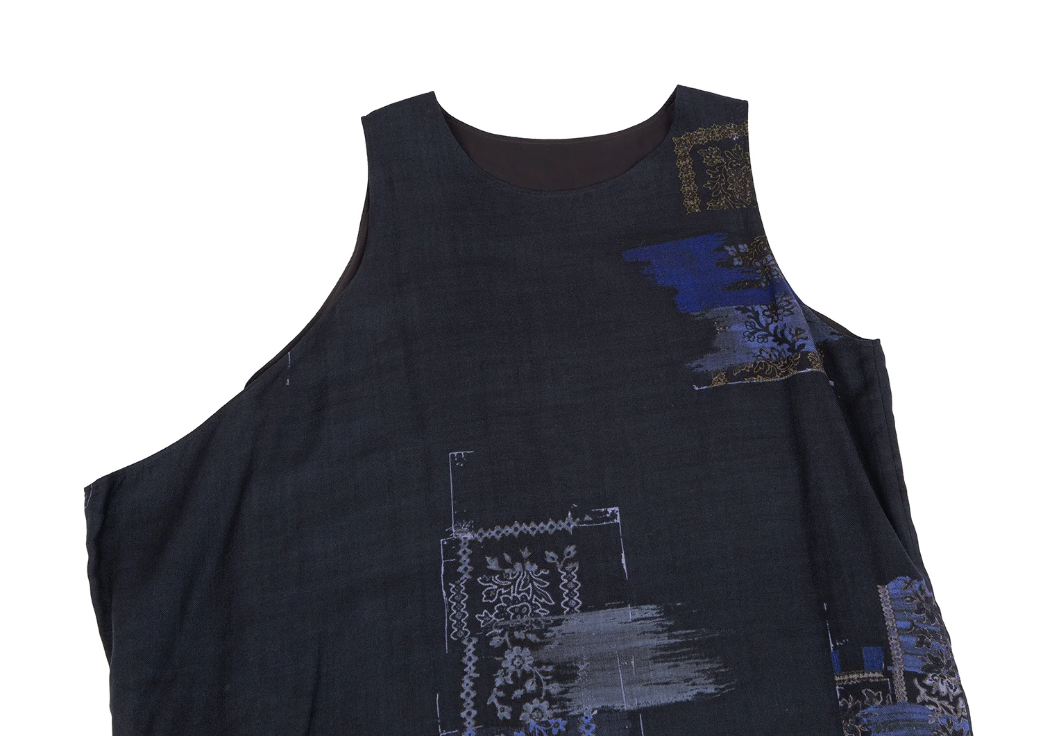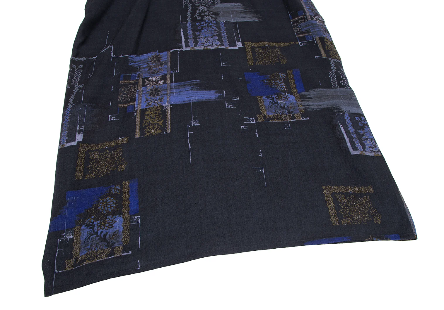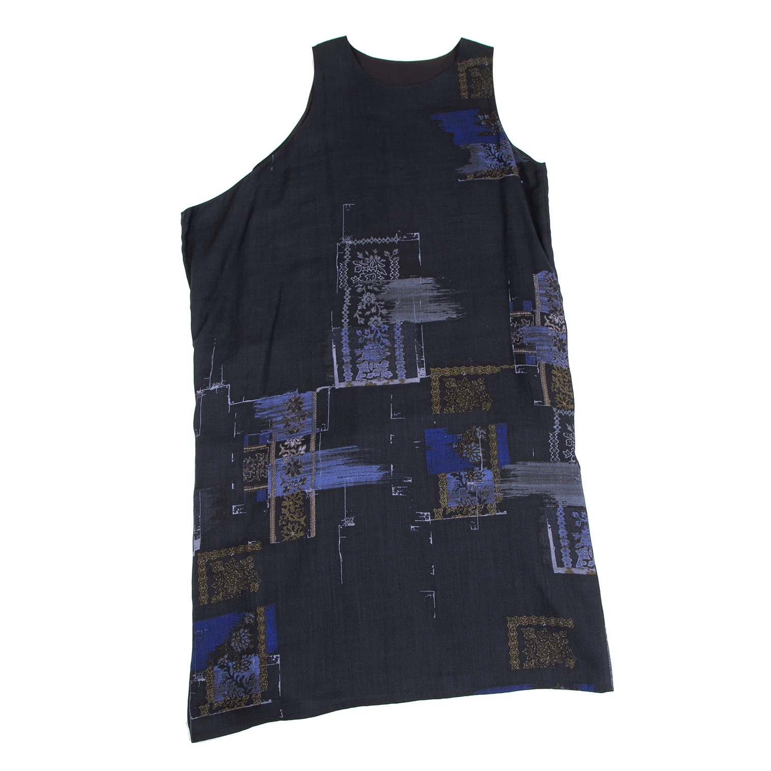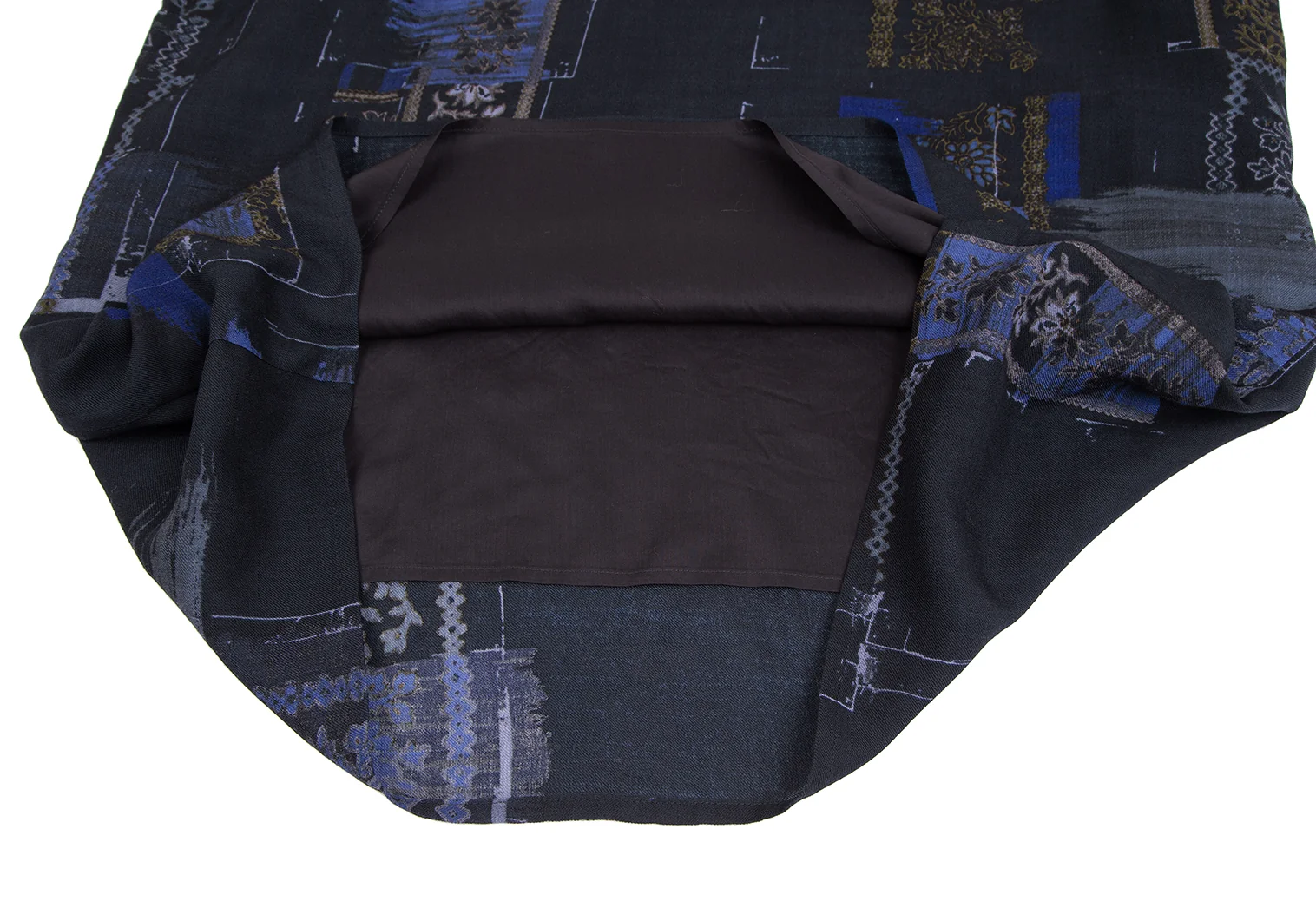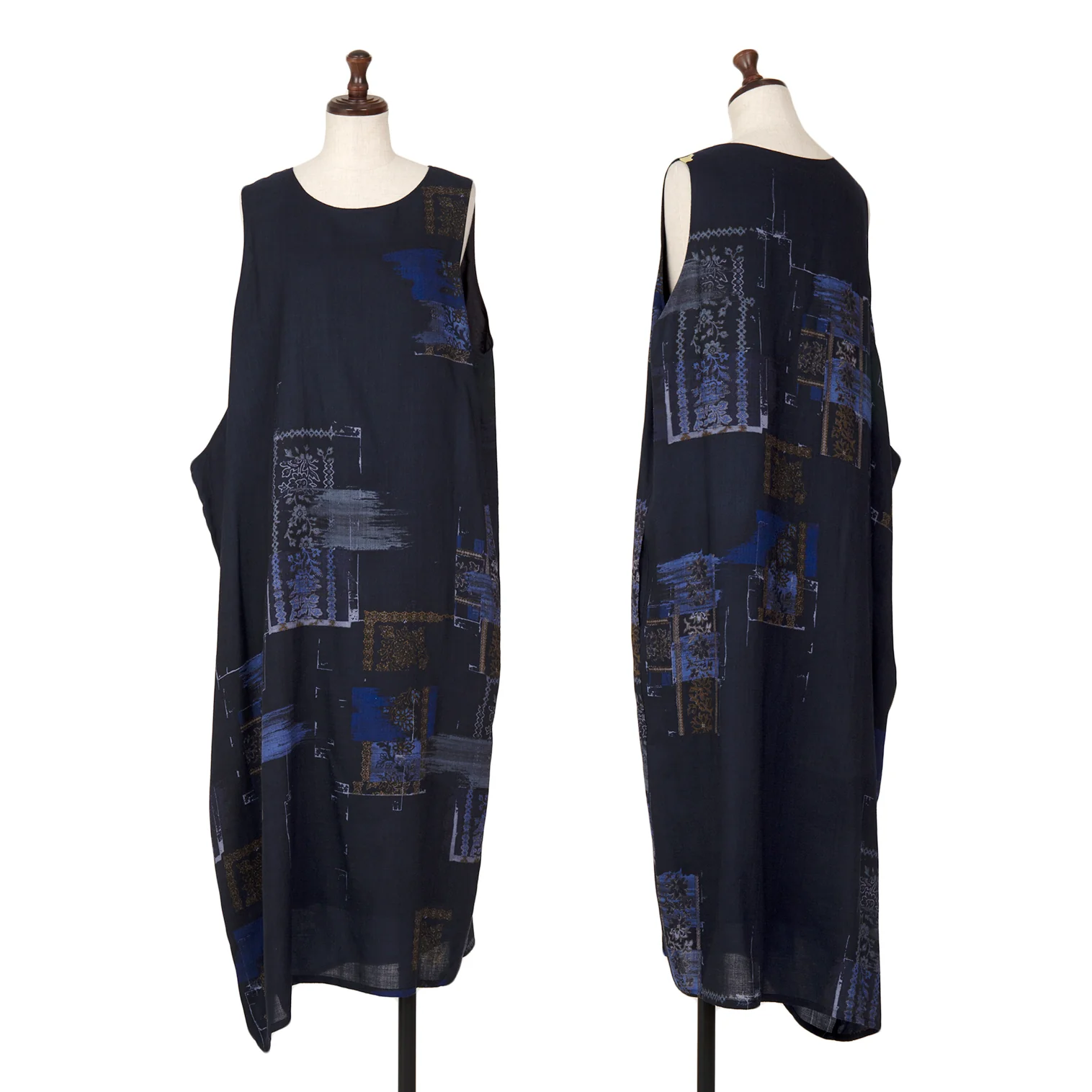 ワイズY's フラワープリントアシンメトリースリーブワンピース 紺2