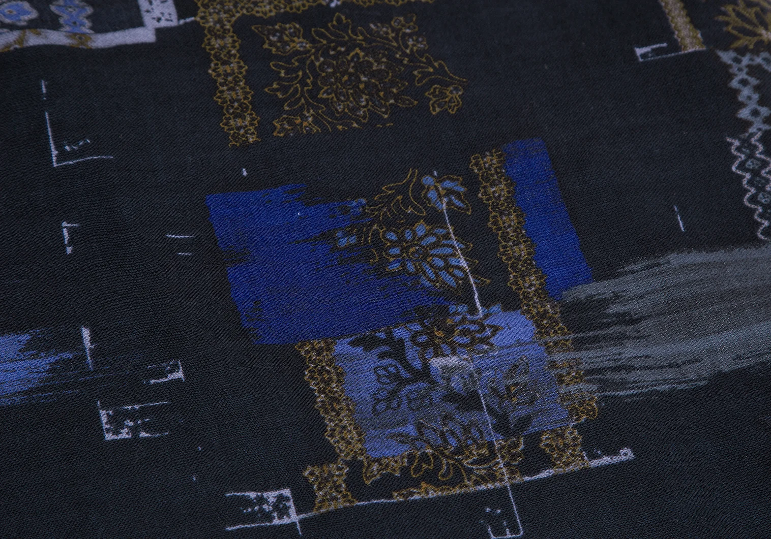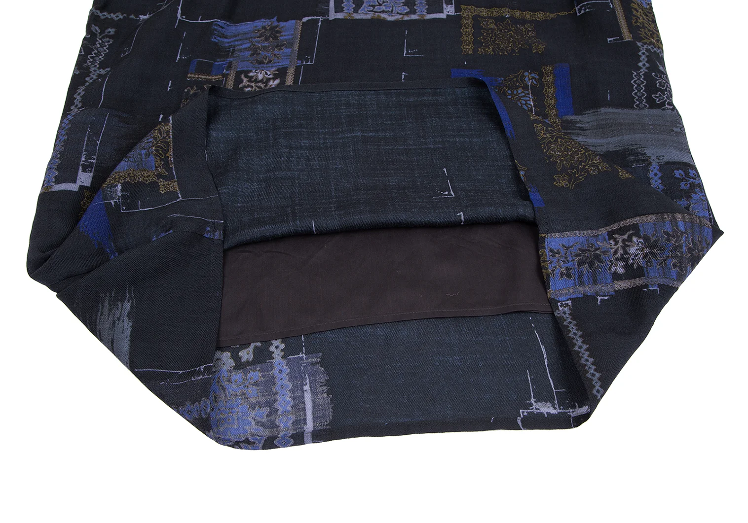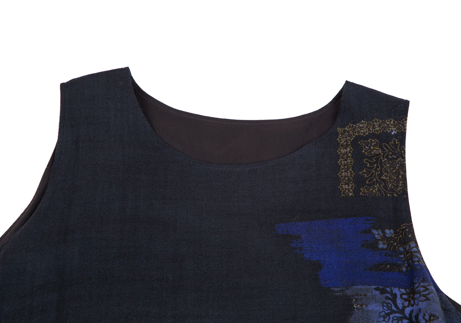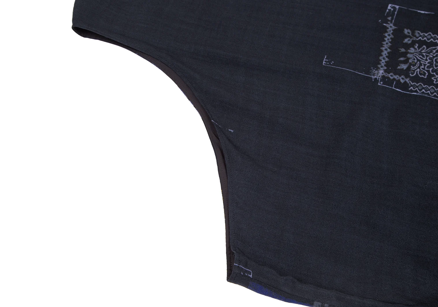 ワイズY's フラワープリントアシンメトリースリーブワンピース 紺2