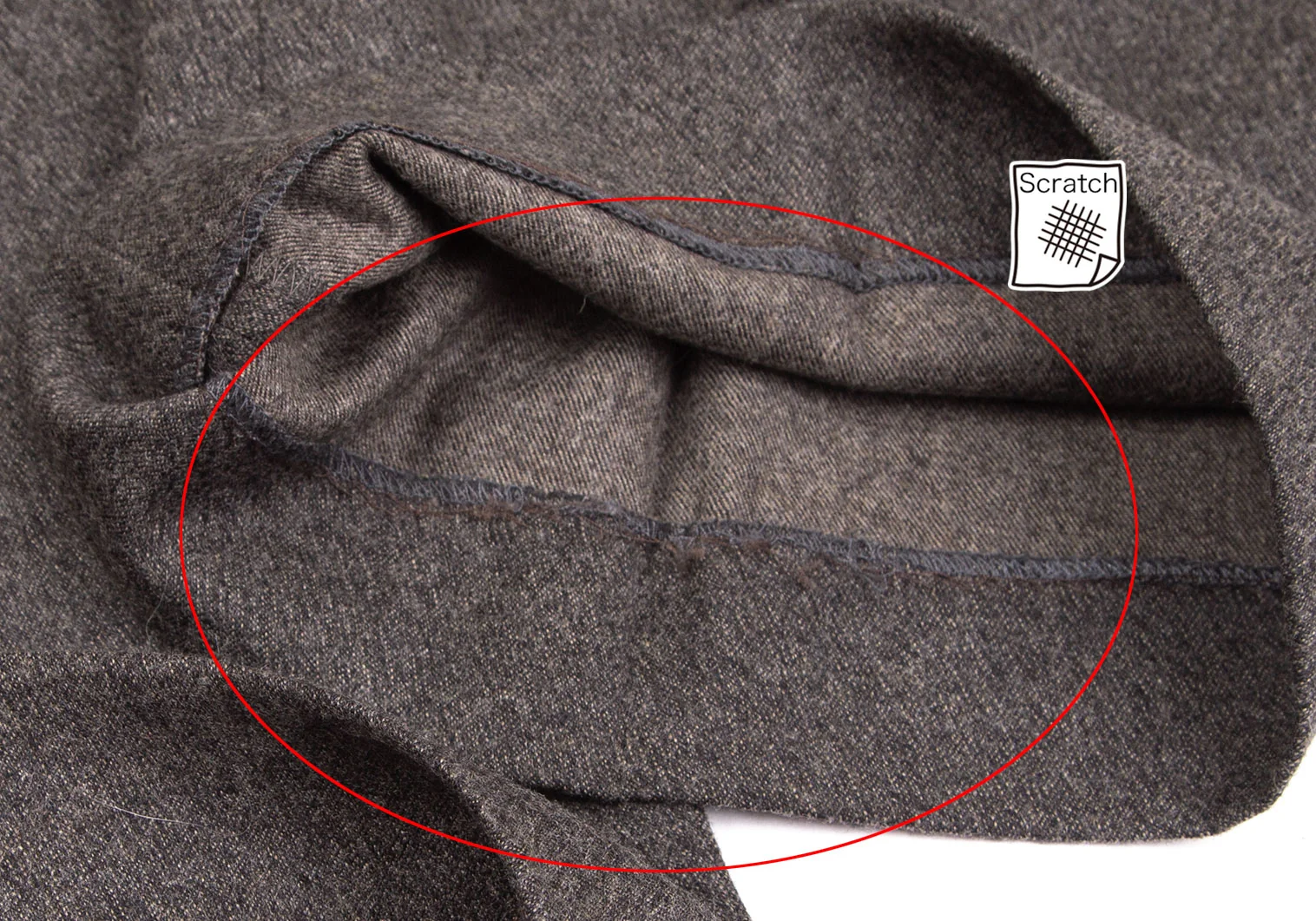 裾裏ロック縫製部分にスレがあります(写真参照)。その他目立ったシミ、汚れ、ほつれ等なくいい状態です。クリーニング済み