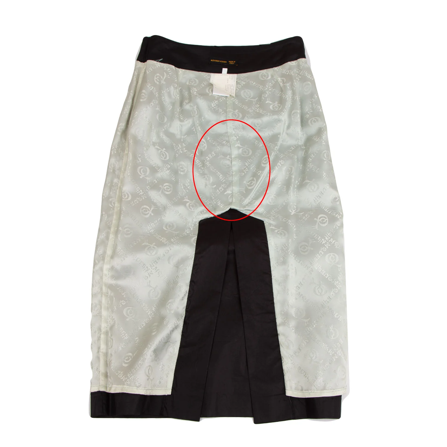 裏地ヒップ部分に縫製の伸びがあります(写真参照)。その他目立ったシミ、汚れ、ほつれ等なくいい状態です。クリーニング済み