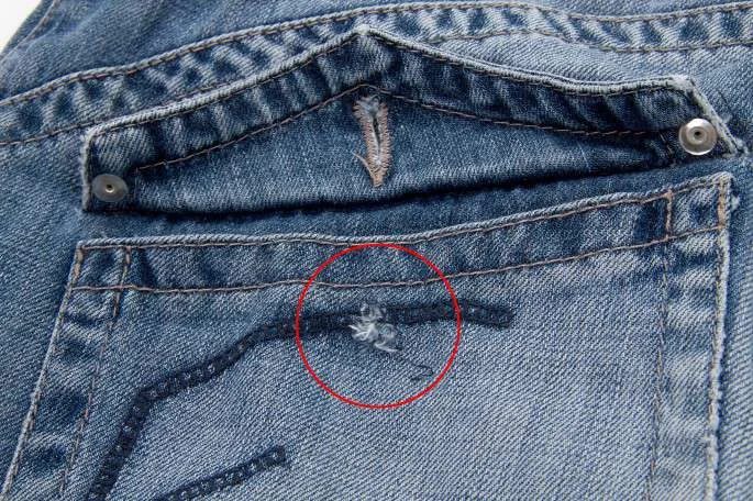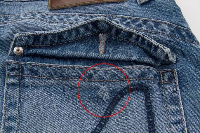 後ろポケットのボタンがありません。裾に少々ダメージあり(写真参照)。その他は目立ったシミ、汚れ、ほつれ等なくいい状態です。クリーニング済み
