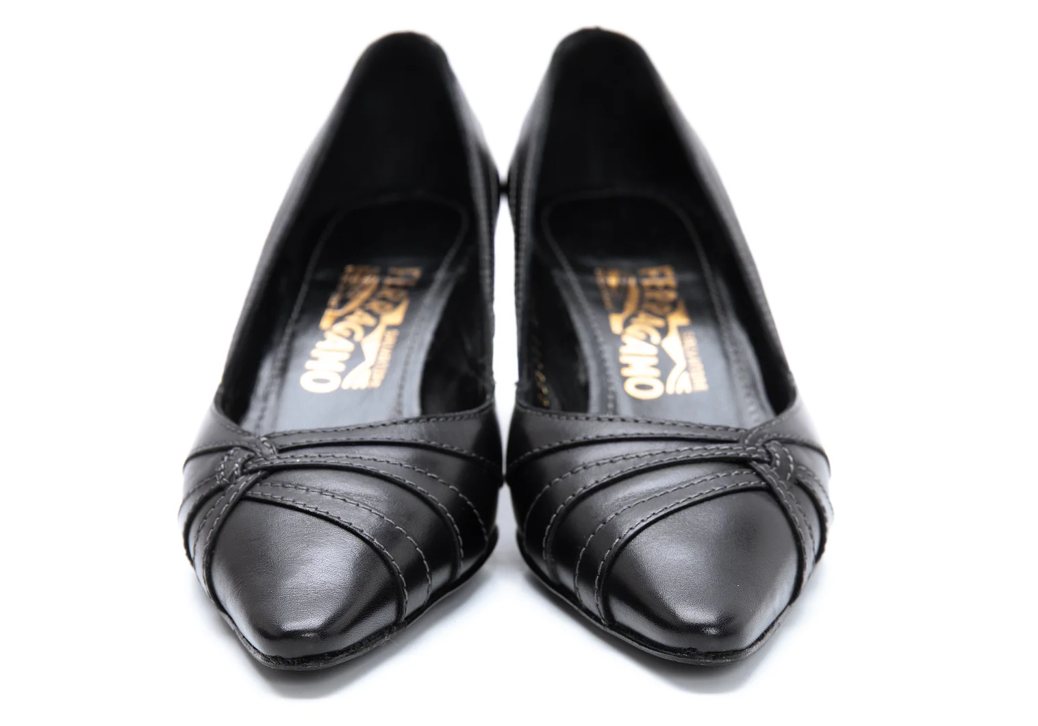 サルヴァトーレフェラガモ Salvatore Ferragamo レザーヒールパンプス 黒5(22.5位)