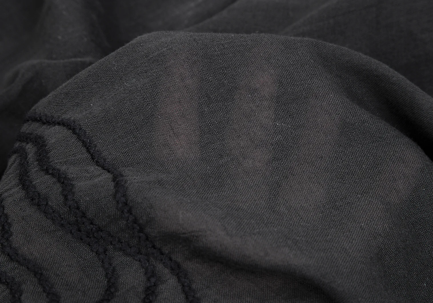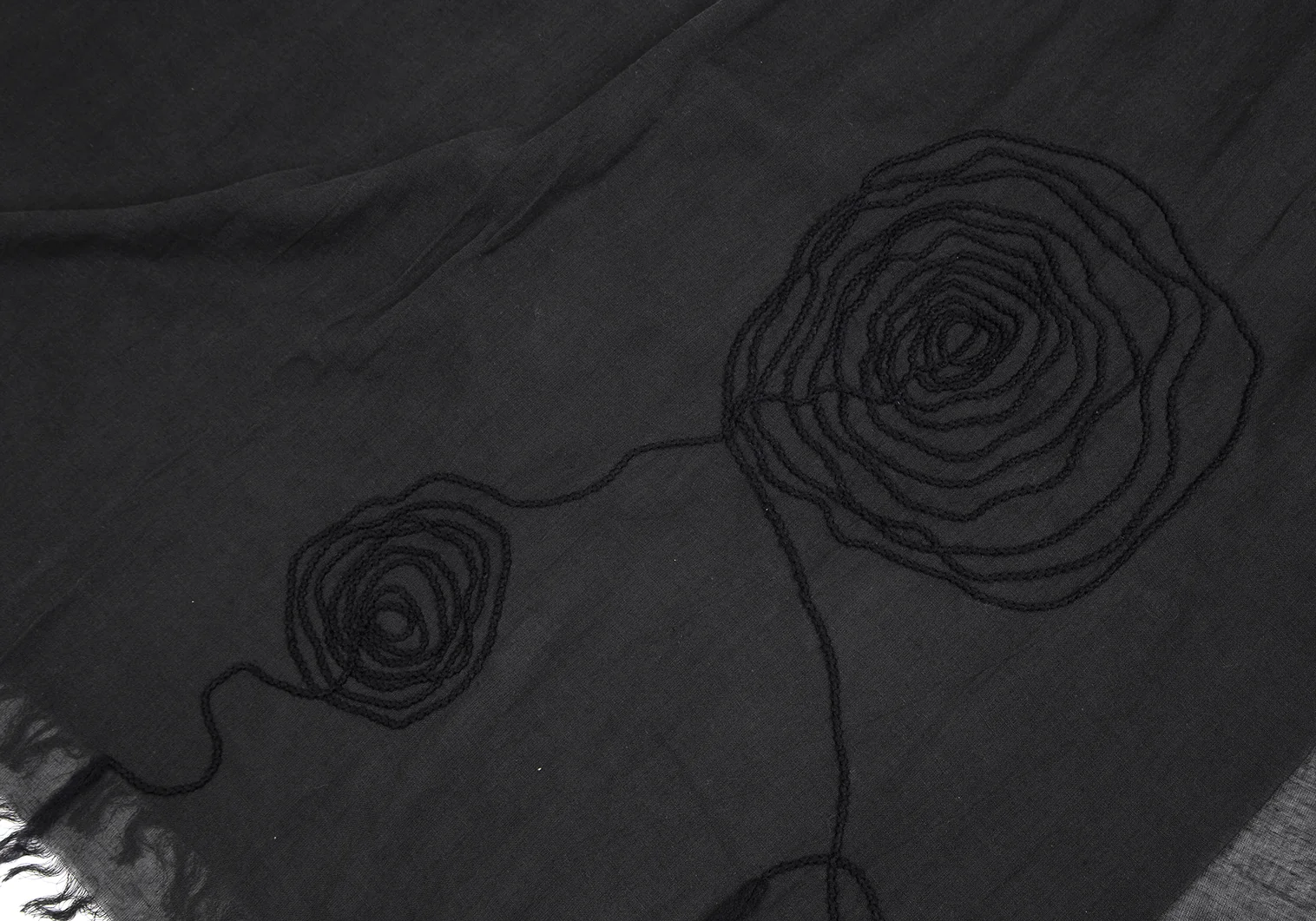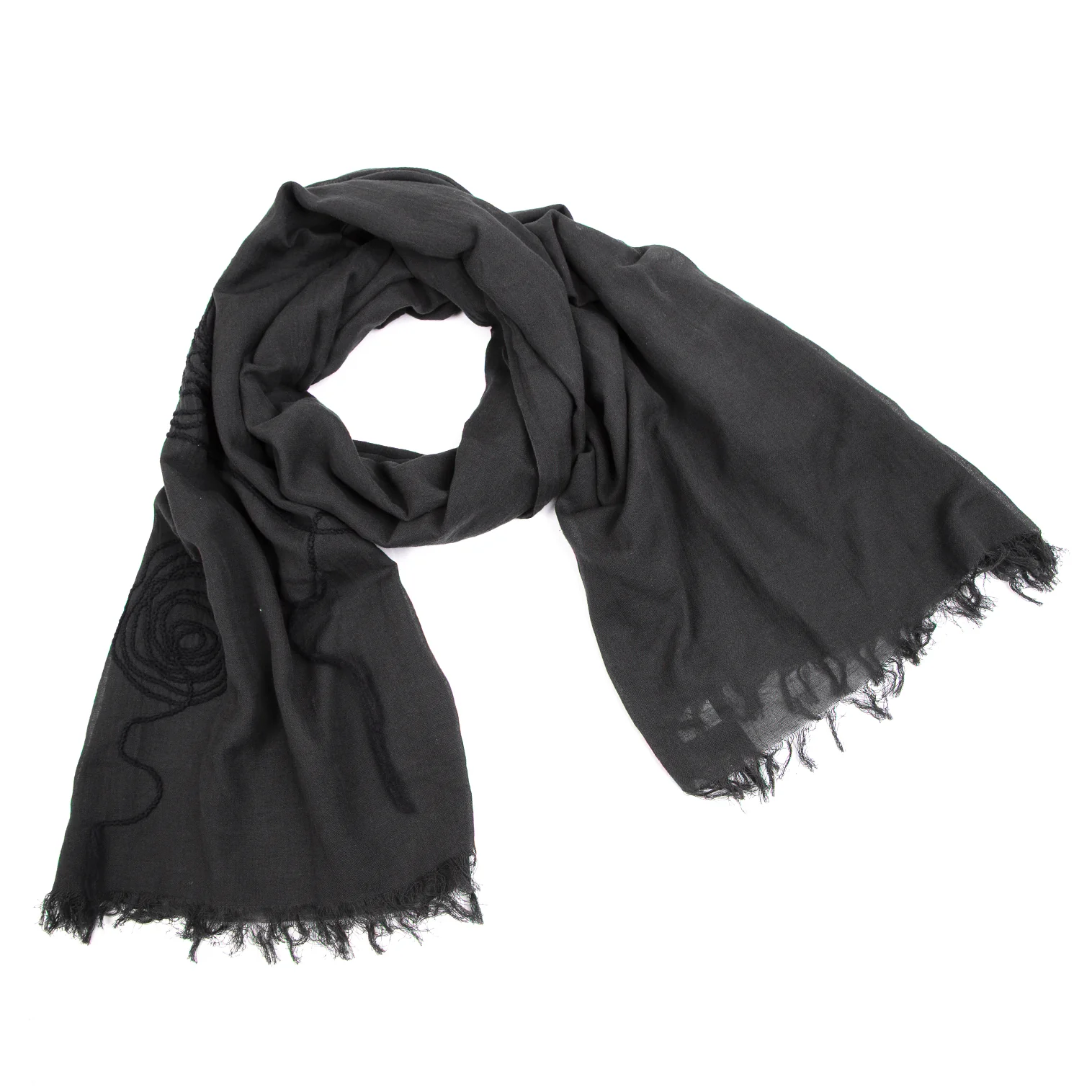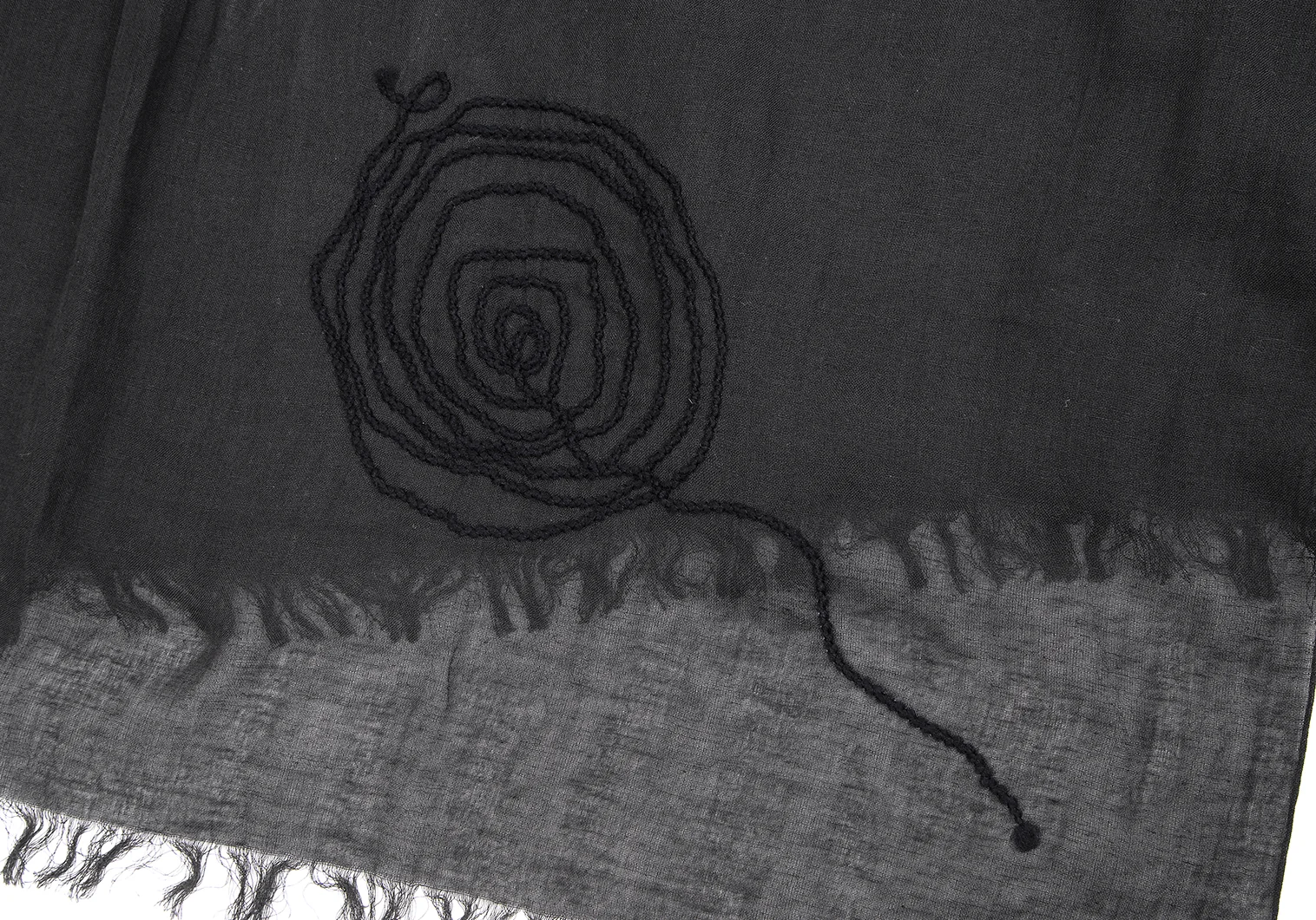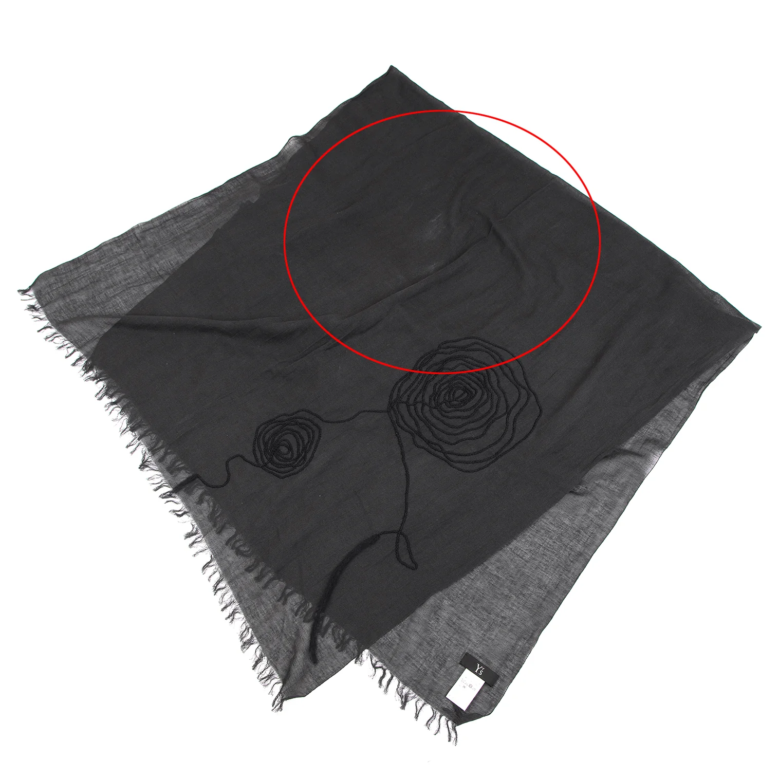 ワイズY's コットンリネンエンブロイダリーフリンジストール チャコール