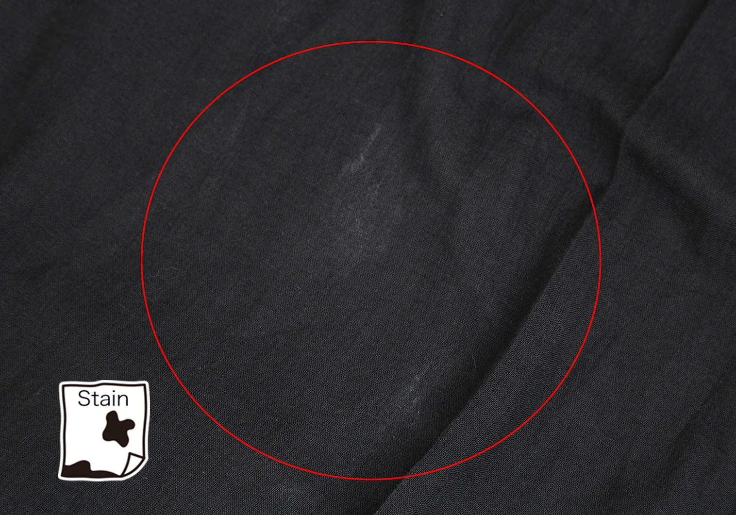 透け感があります。全体に汚れ・色褪せがあります(写真参照)。その他目立ったシミ、ほつれ等ありません。クリーニング済み