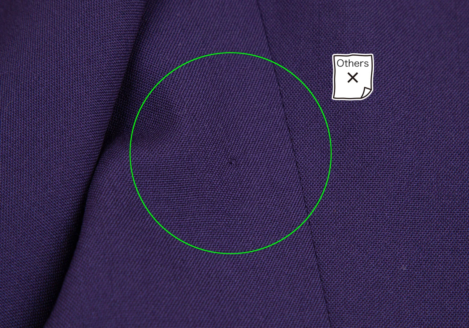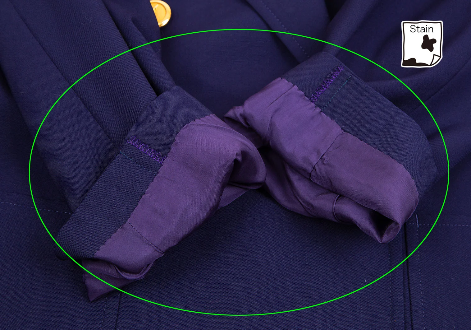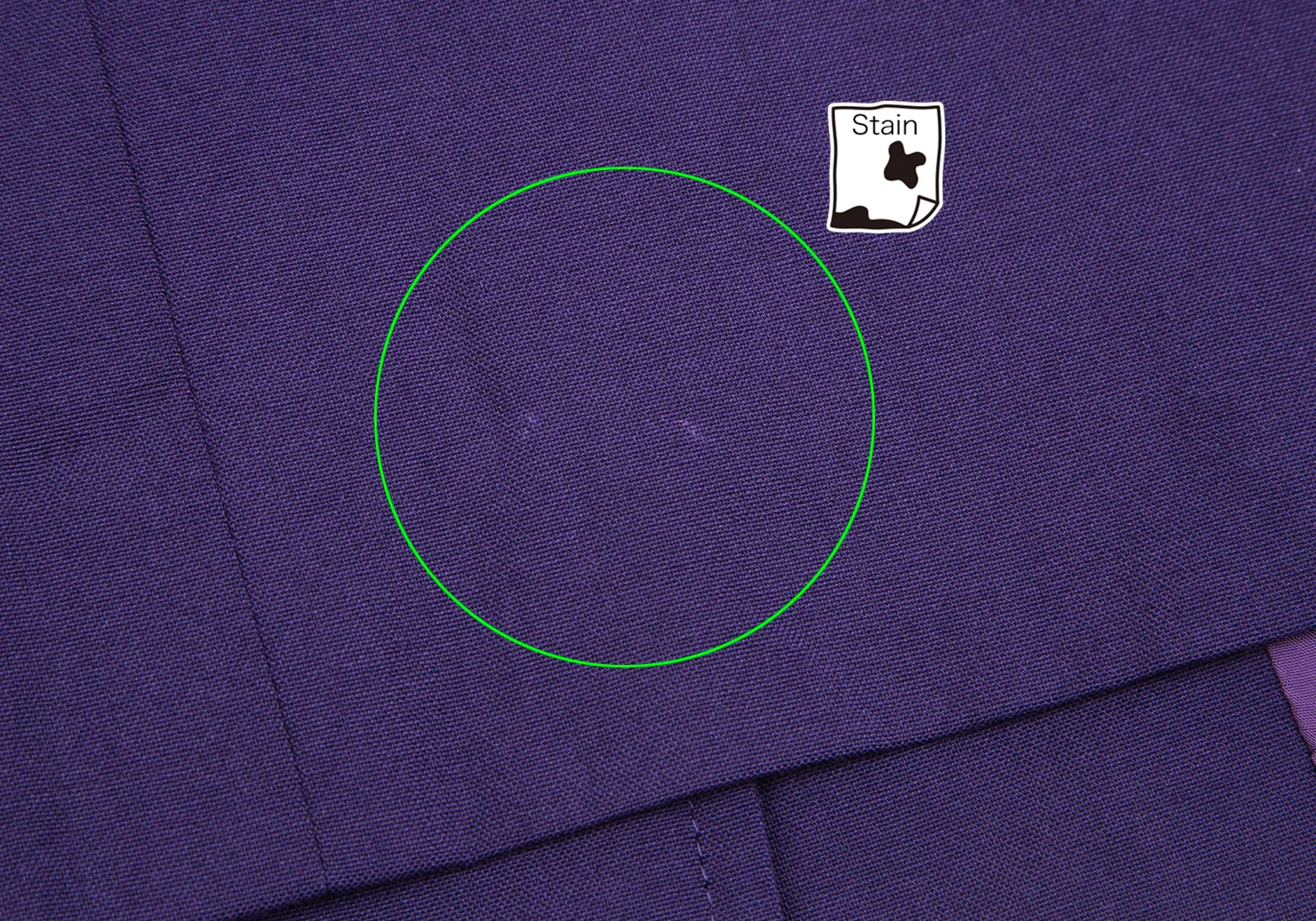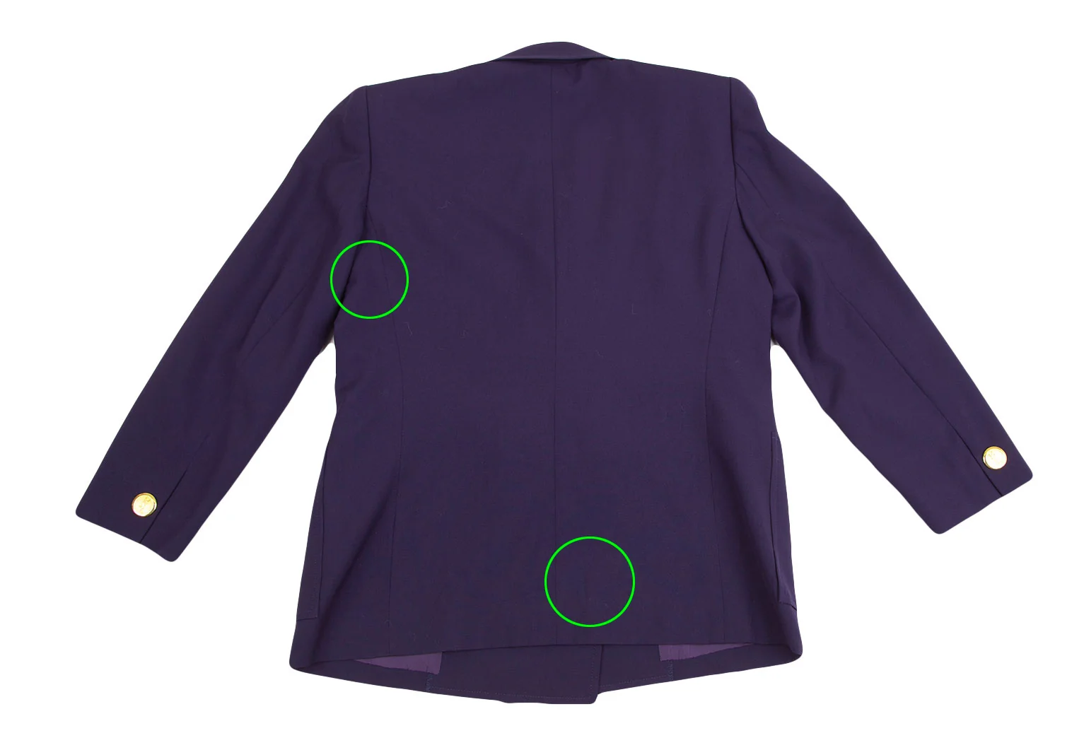 肩パッドあり。襟裏・袖裏に汚れ、裏地にシミ。後ろに薄汚れ・左脇下に織りムラがあります(写真参照)。その他目立ったシミ、汚れ、ほつれ等はありません。クリーニング済み