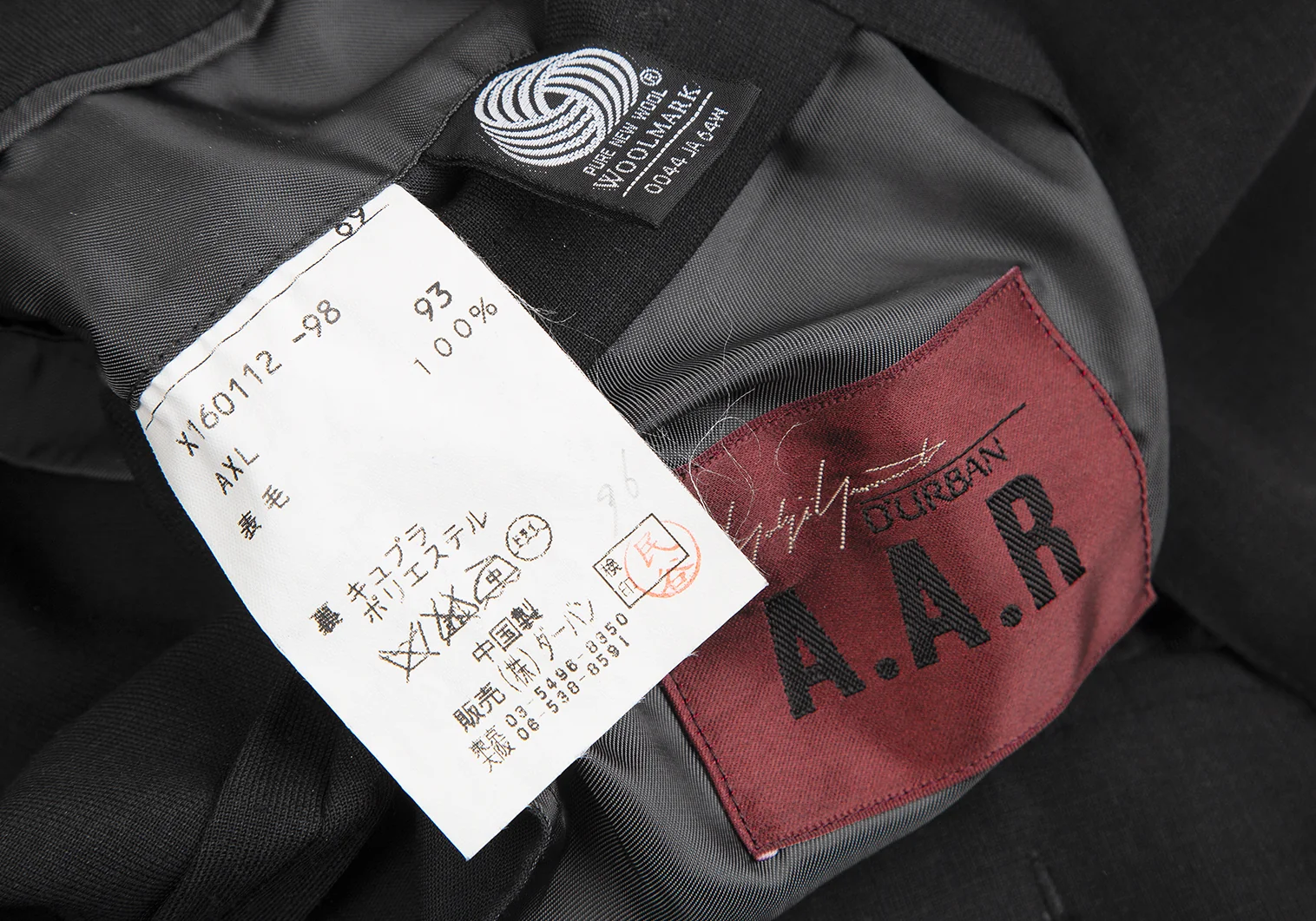 ヨウジヤマモト ダーバンYohji Yamamoto DURBAN A.A.R ウールセットアップスーツ チャコールグレーXL