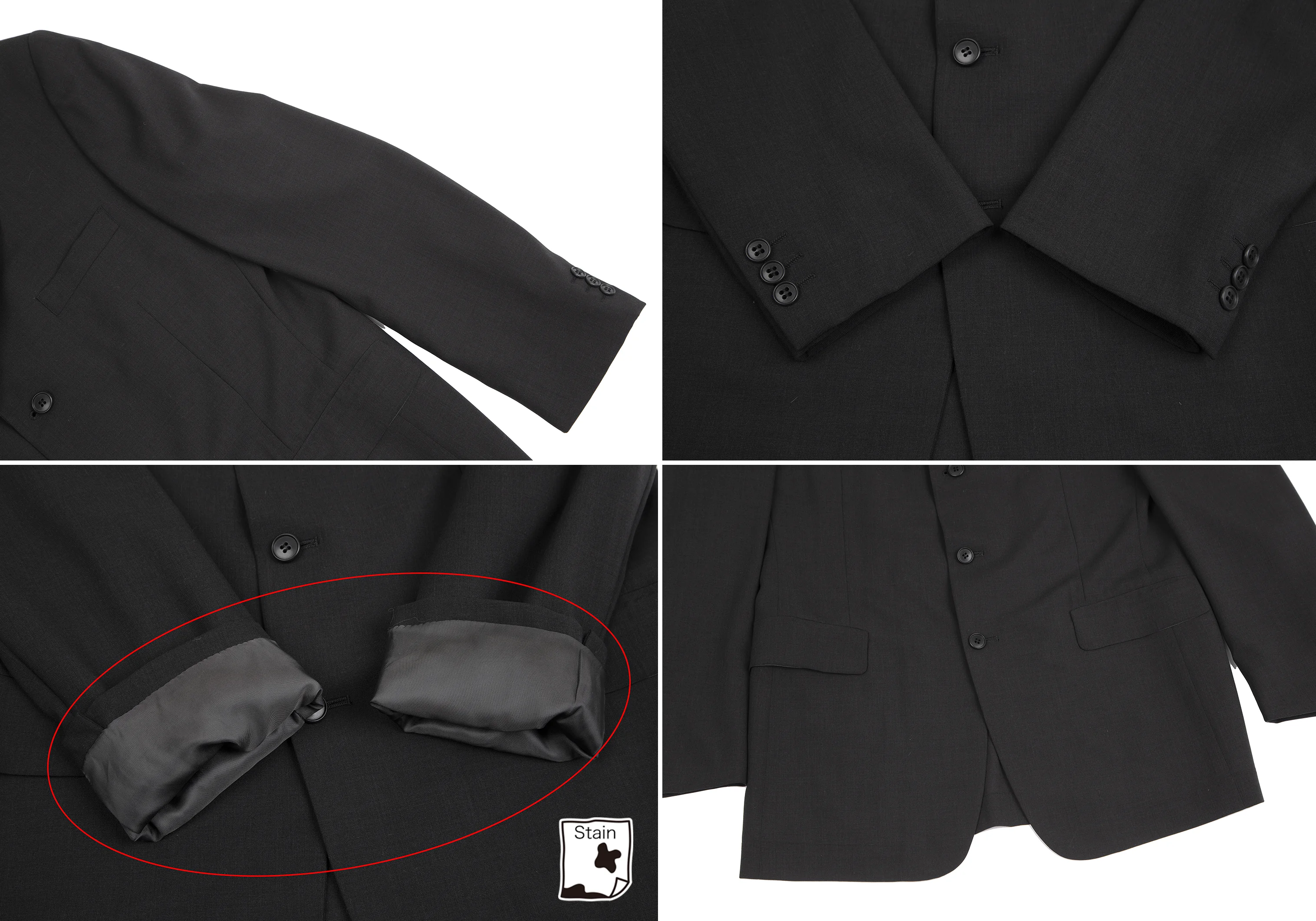 ジャケット:肩パッドがあります。袖裏に汚れがあります(写真参照)。その他目立ったシミ、汚れ、ほつれ等なくいい状態です。クリーニング済み