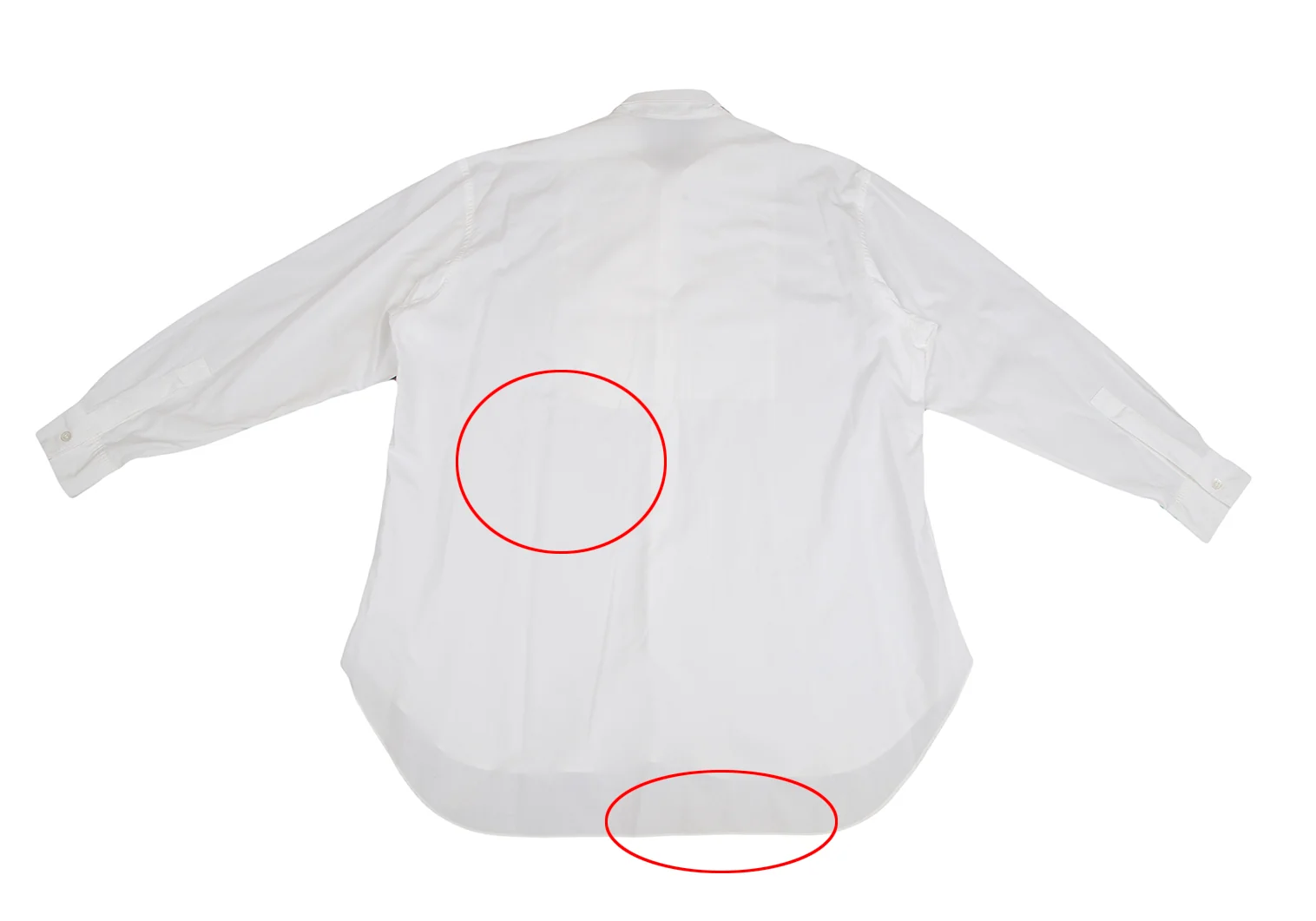 透け感があります。品質タグがありません。左肩にシミ、後ろ身頃に薄汚れ・薄シミがあります。(写真参照)その他目立ったシミ、汚れ、ほつれ等なくいい状態です。クリーニング済み