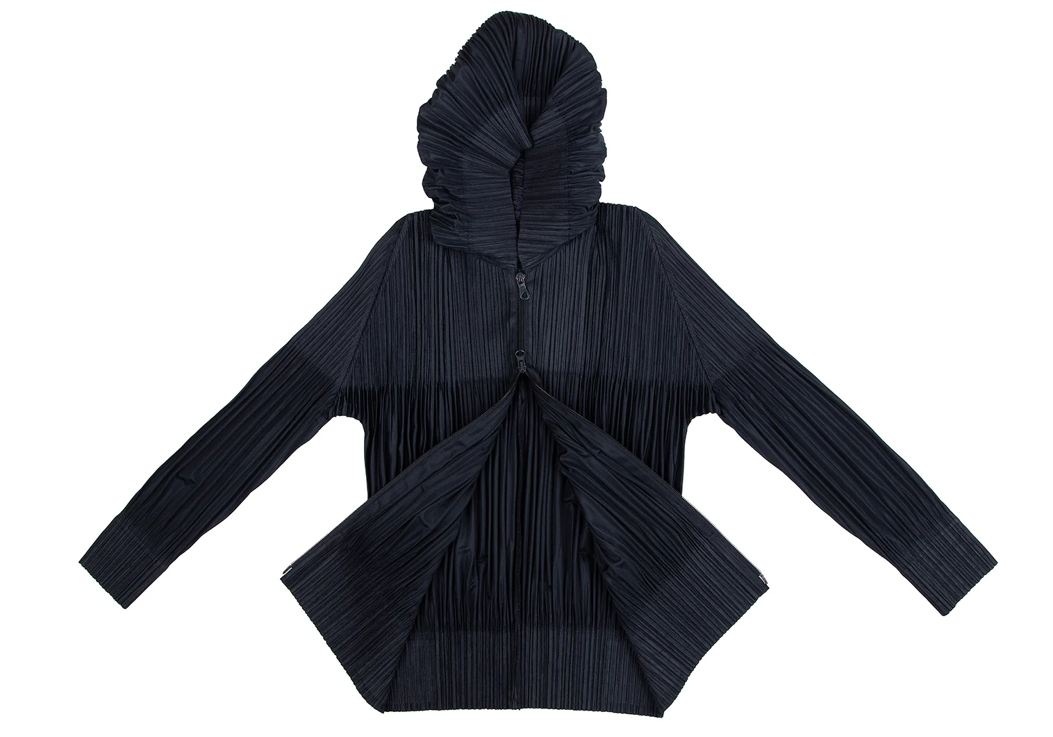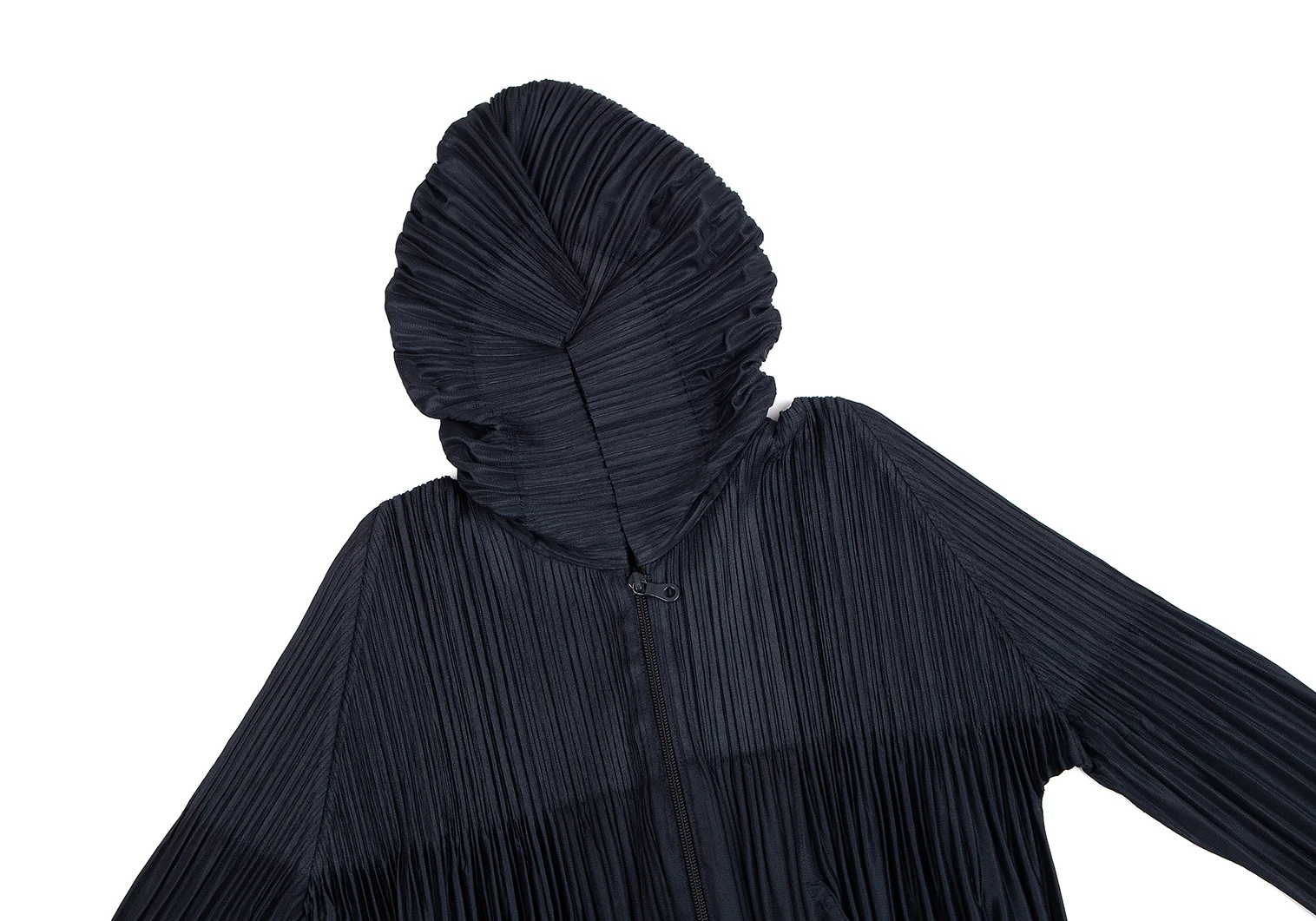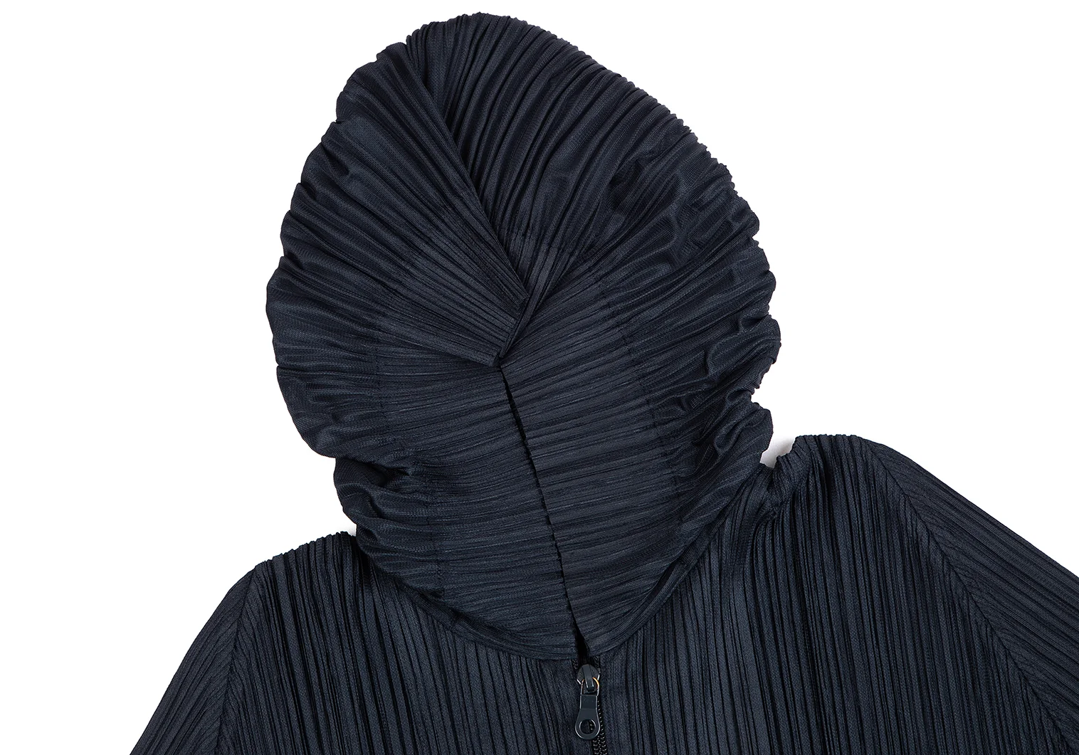 プリーツプリーズPLEATS PLEASE 消しプリーツダブルジップフードパーカー 紺3