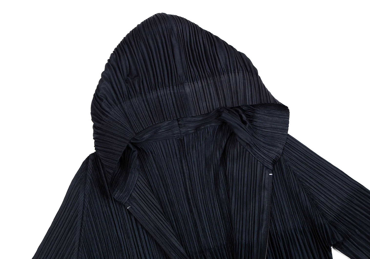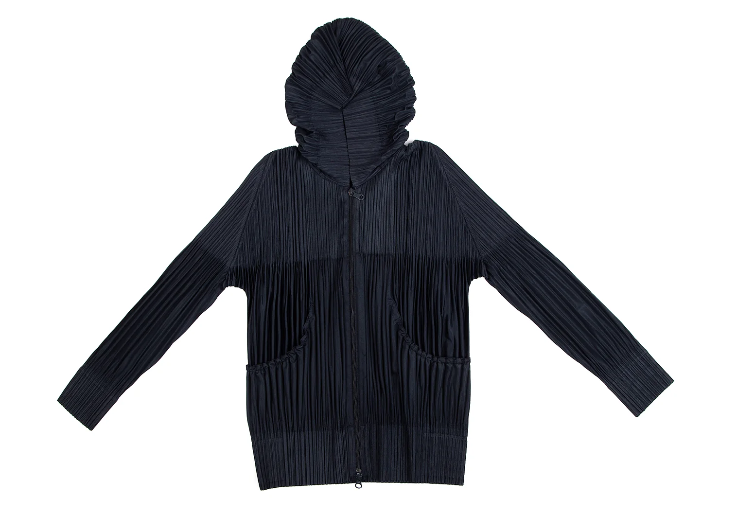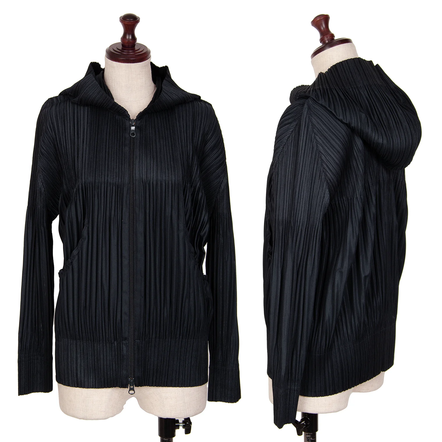 プリーツプリーズPLEATS PLEASE 消しプリーツダブルジップフードパーカー 紺3