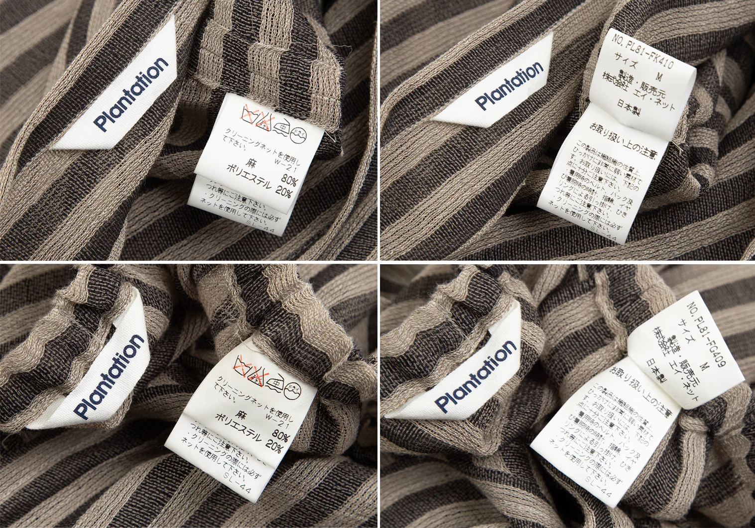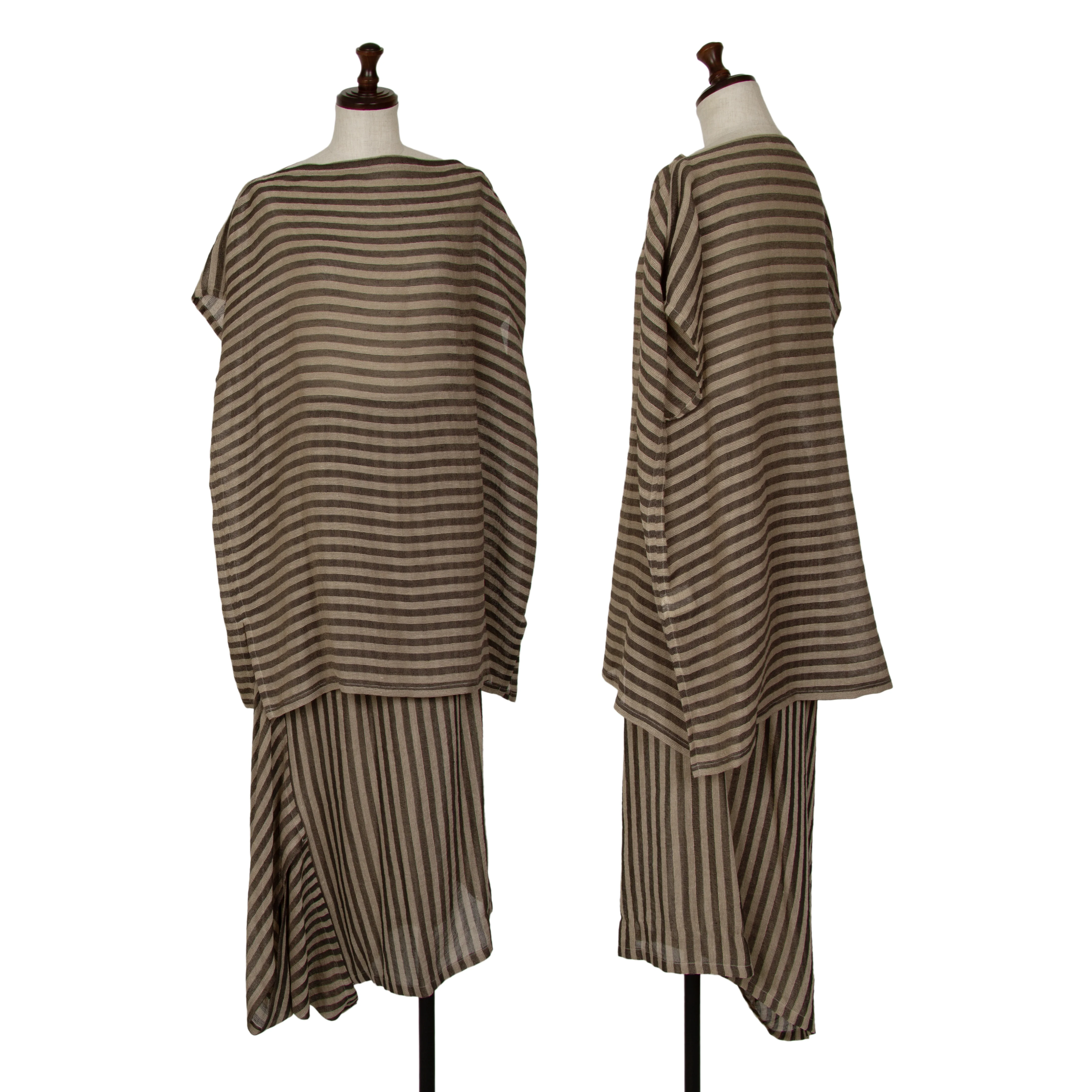 プランテーションPlantation リネンポリボーダーセットアップ ベージュチャコールM