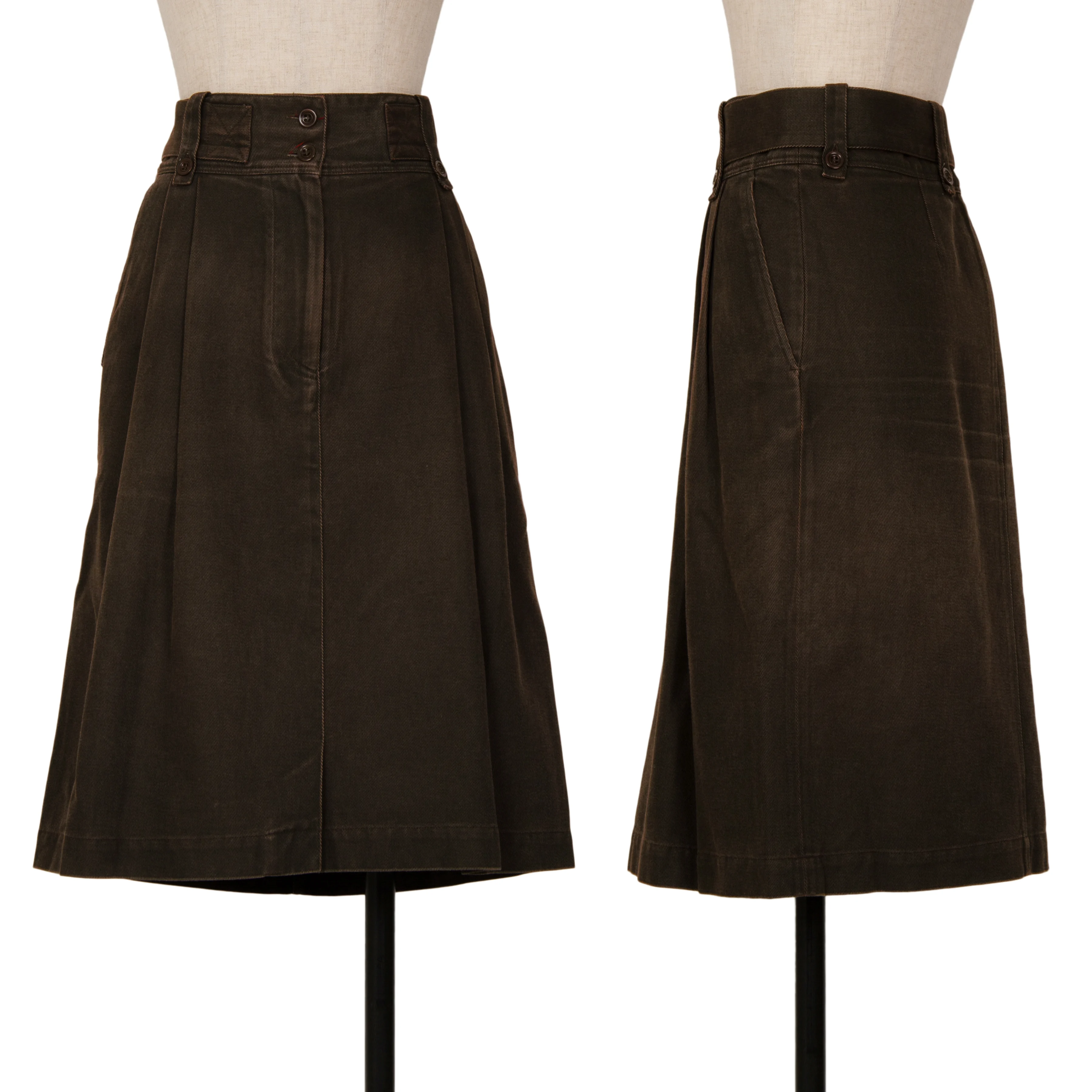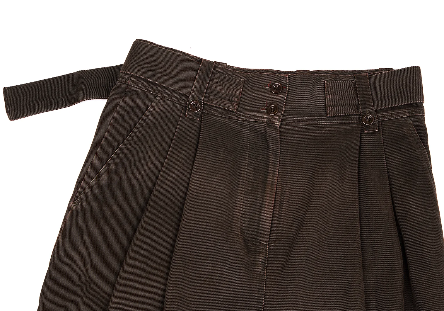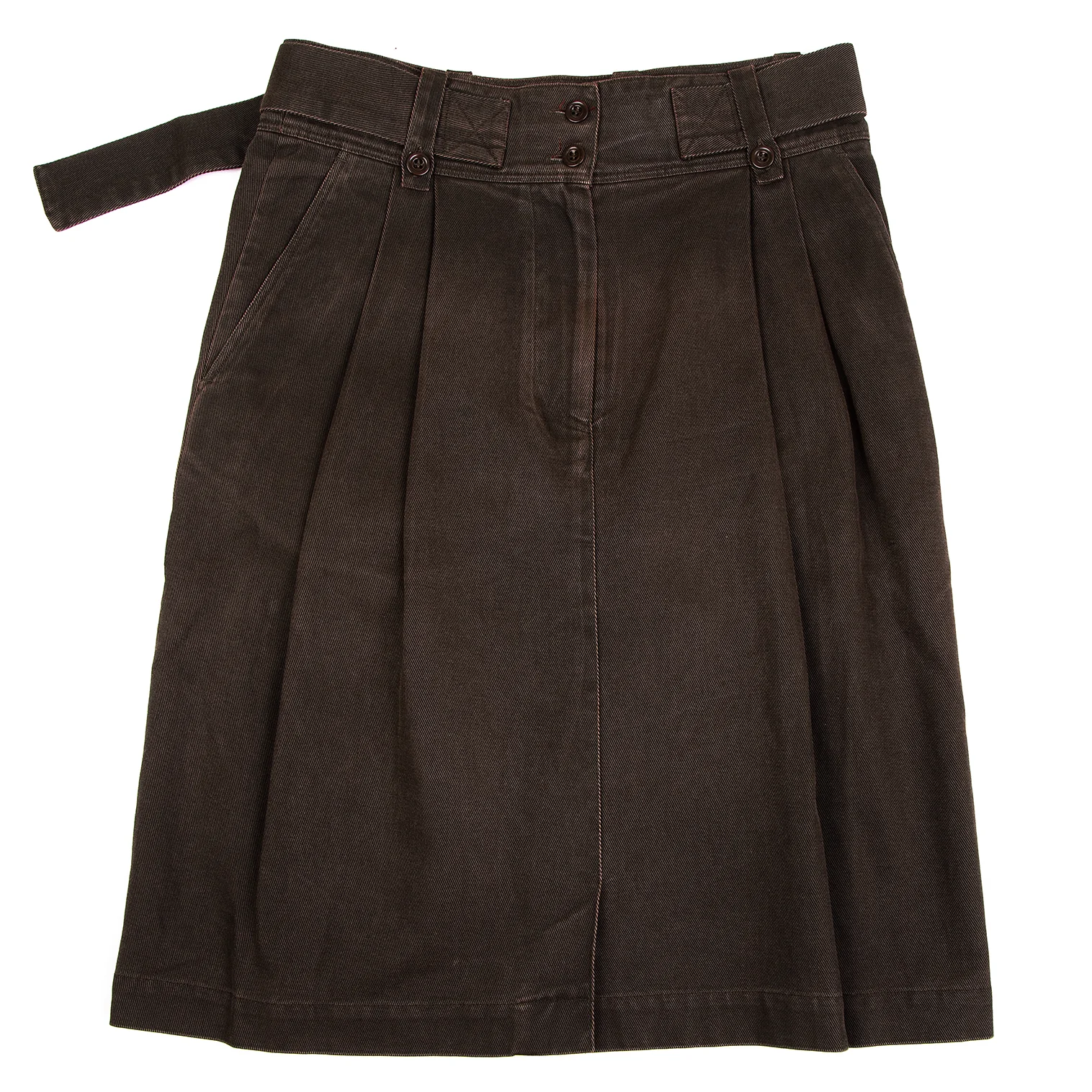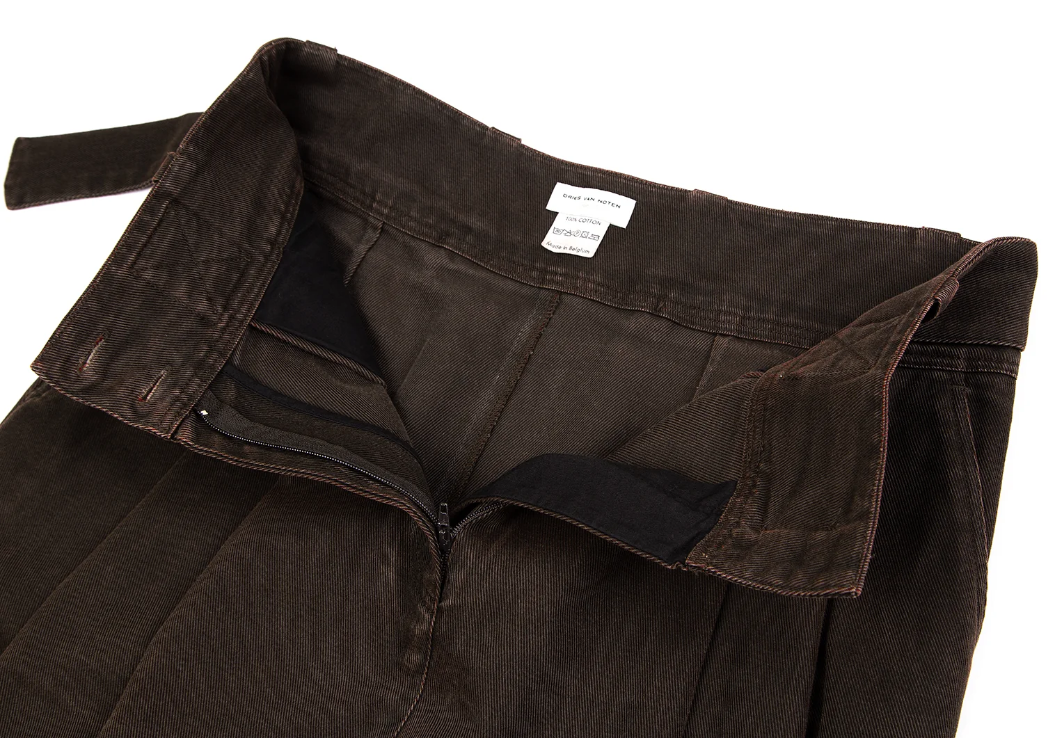 ドリスヴァンノッテンDRIES VAN NOTEN ウエストベルトデザインタックスカート 茶38