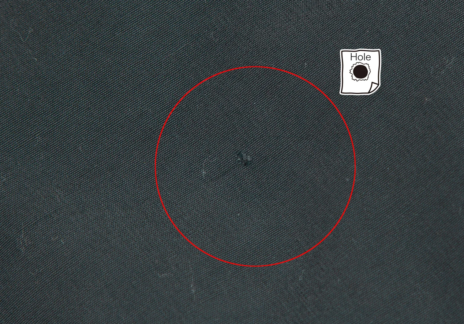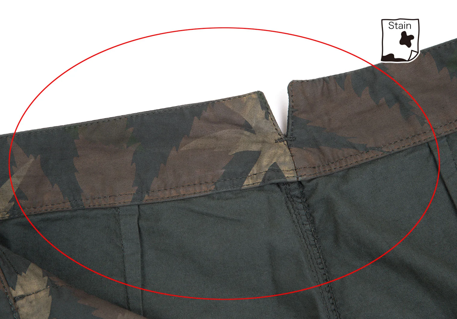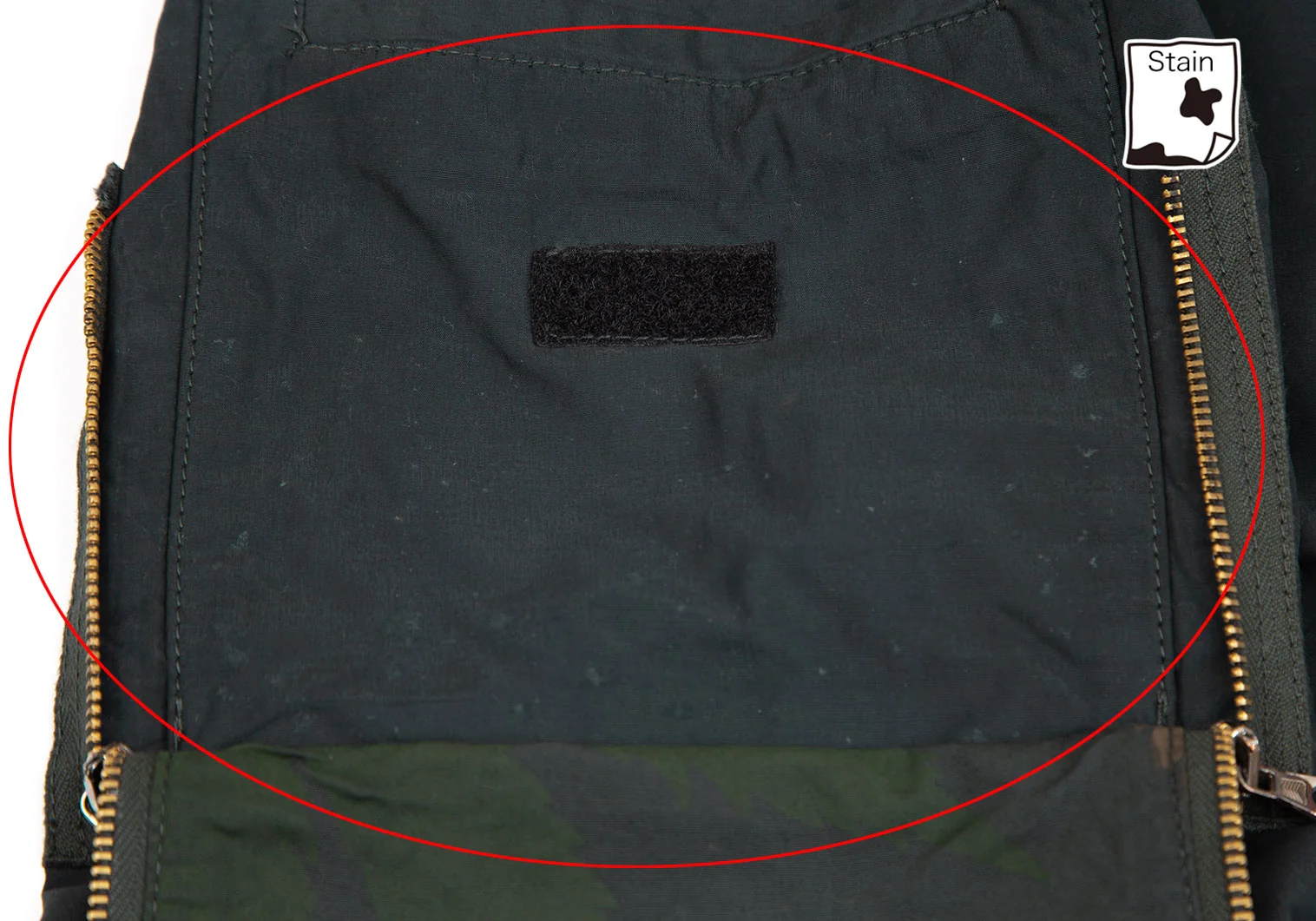 ウエスト見返し部分に汚れ、後ろに穴あき、左足ポケット裏・後ろにカビがあります(写真参照)。クリーニング済み