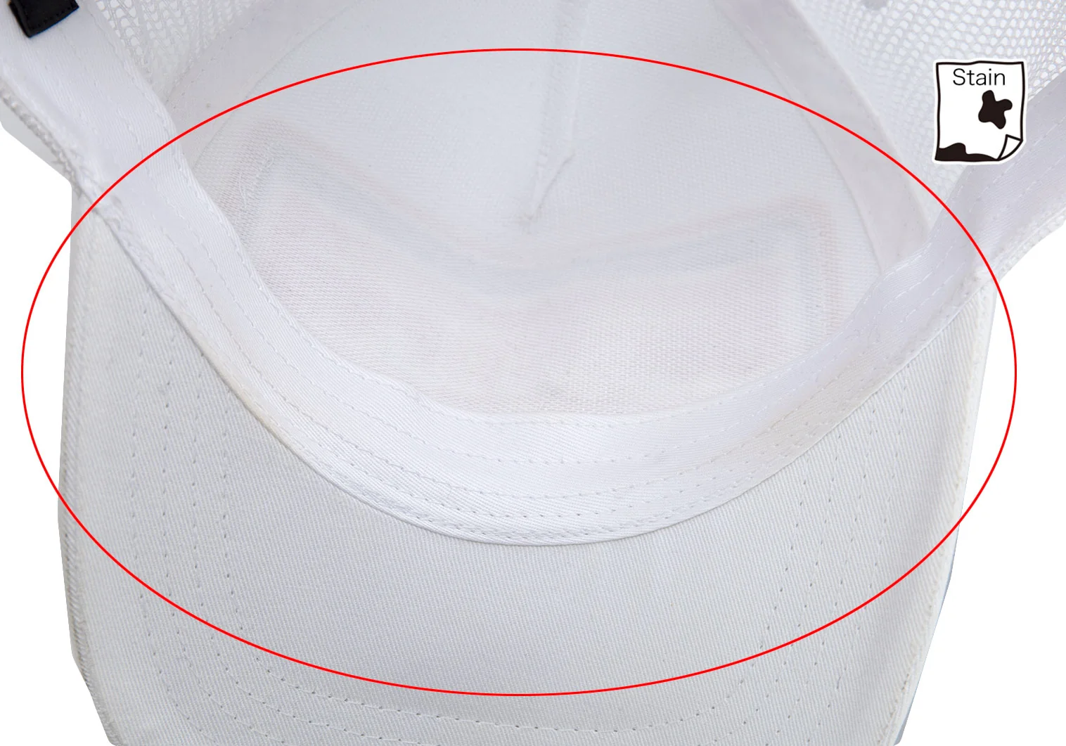 品質タグがカットされています。被り口・ツバにシミがあります(写真参照)。その他目立ったダメージ等はありません。クリーニング済み
