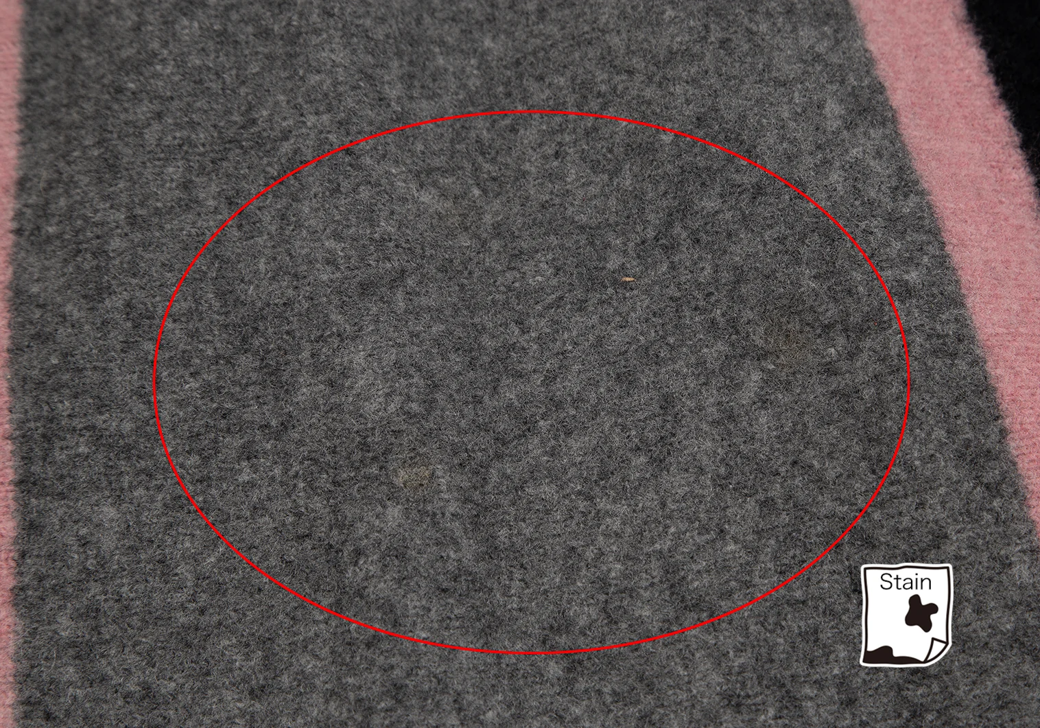 脇下にスレ、前裾にシミ、後ろ裾に小穴があります(写真参照)。その他目立ったシミ、汚れ、ほつれ等なくいい状態です。クリーニング済み