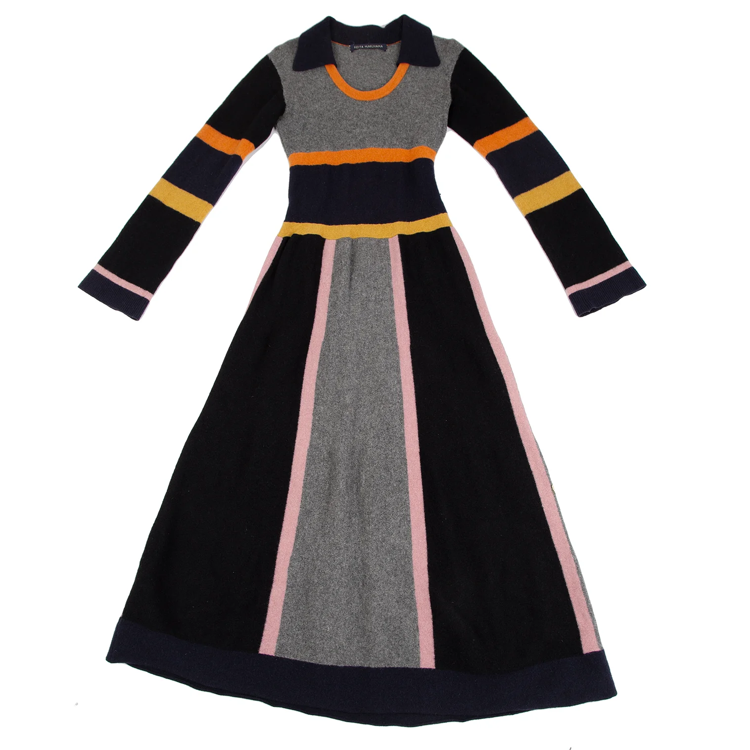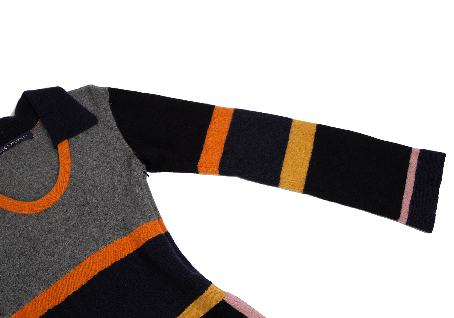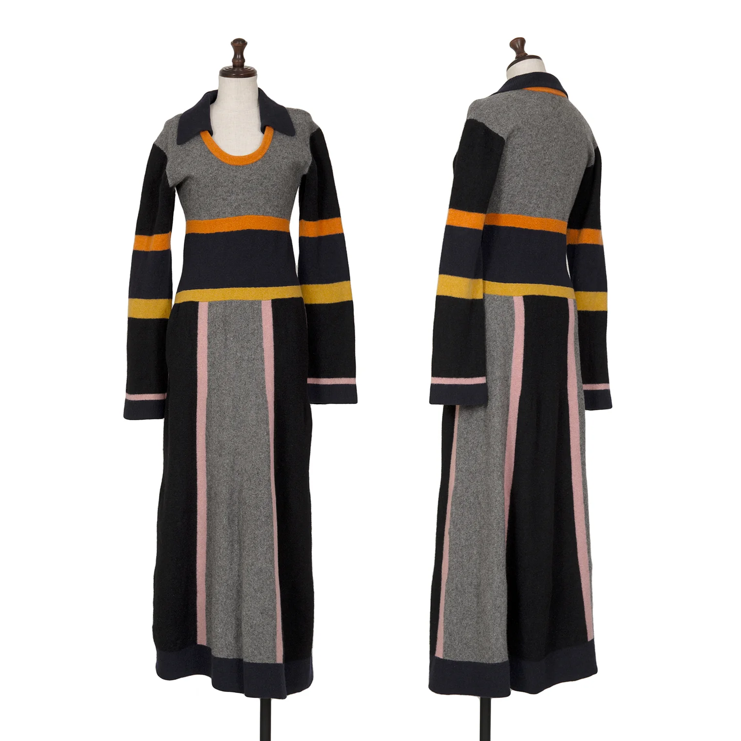 ケイタマルヤマKEITA MARUYAMA ウールカラーパネル切替マキシワンピース グレー紺他M