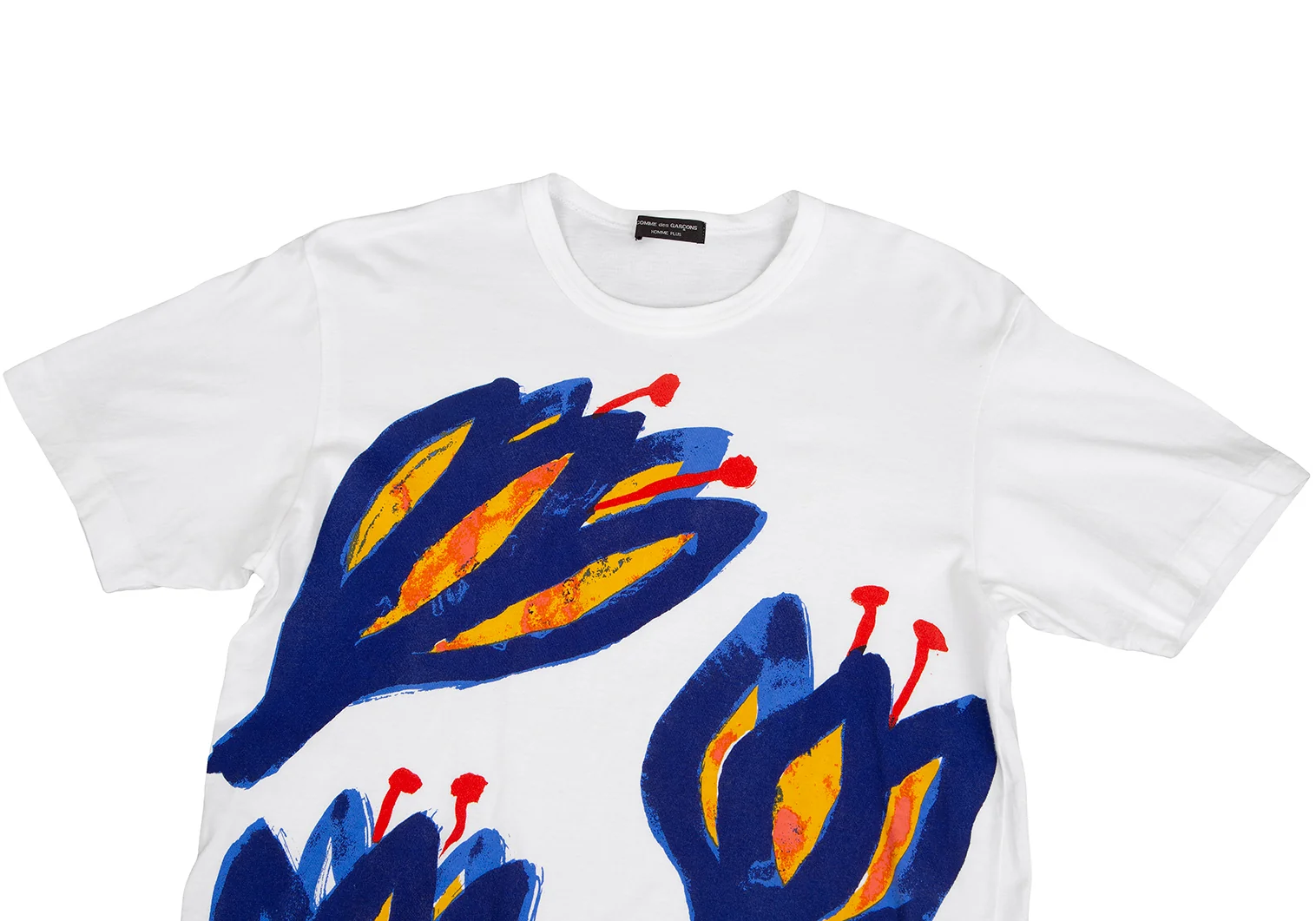 コムデギャルソン オムプリュスCOMME des GARCONS HOMME PLUS フラワードローイングプリントTシャツ 白M位