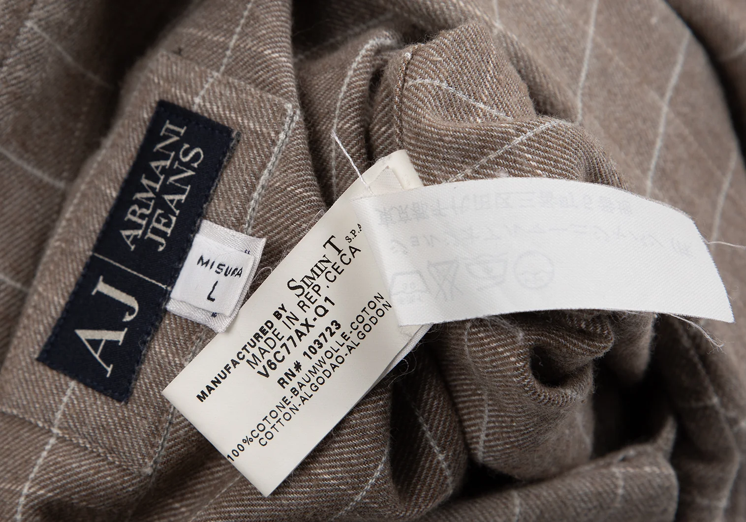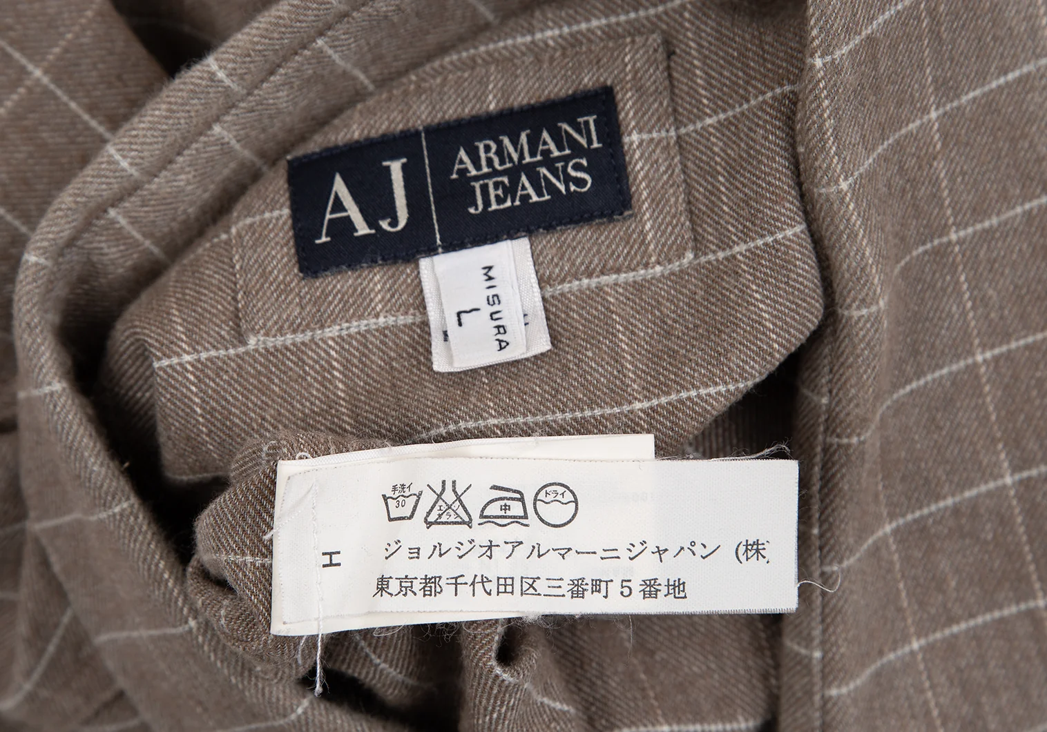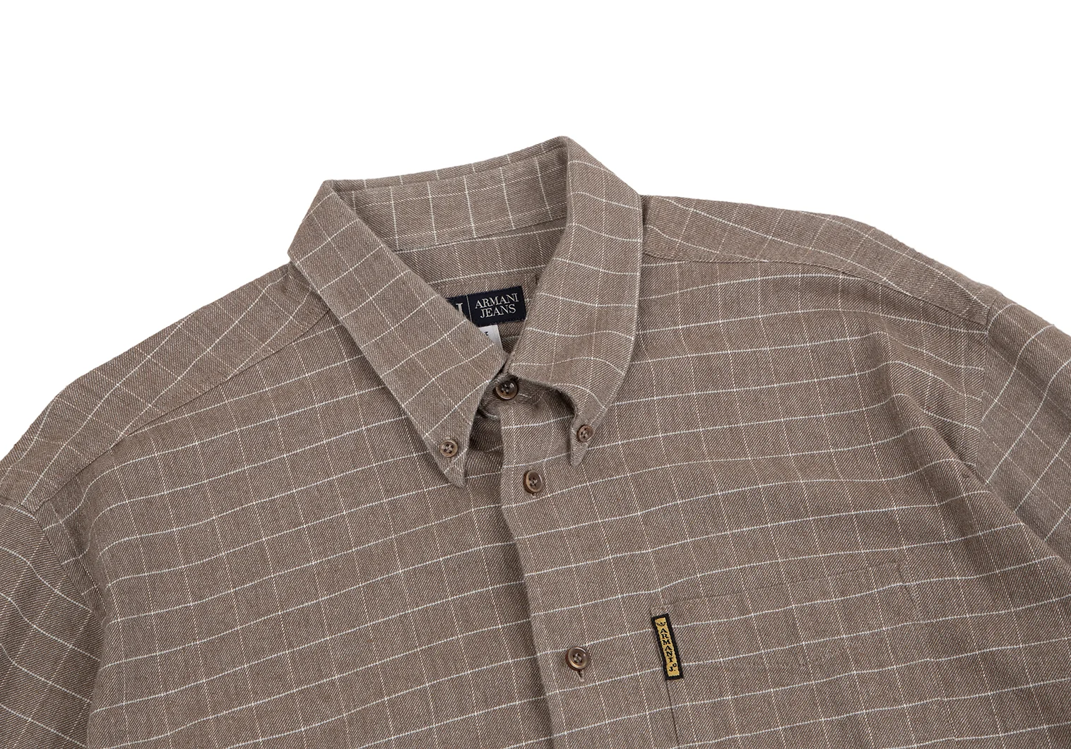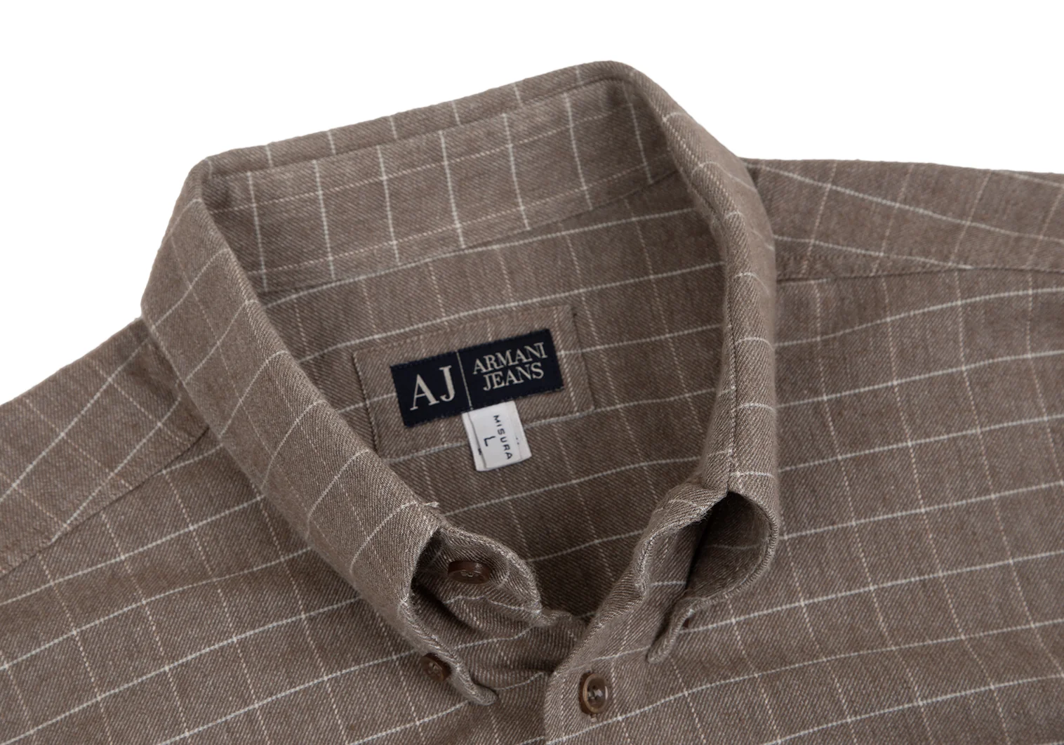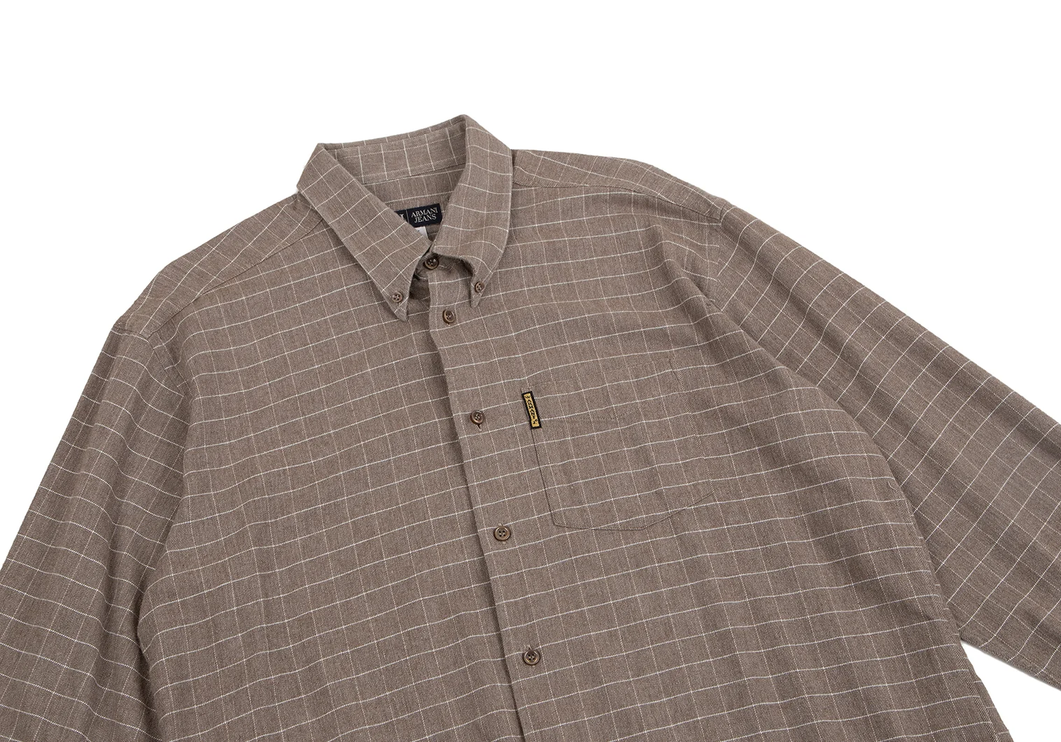 アルマーニジーンズARMANI JEANS グラフチェック長袖シャツ モカL
