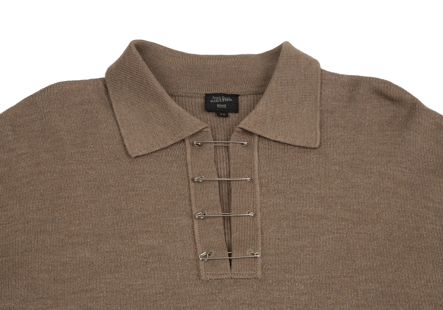 ジャンポールゴルチエ オムJean Paul GAULTIER HOMME セーフティーピンボタンデザインスキッパーニット ブラウン48