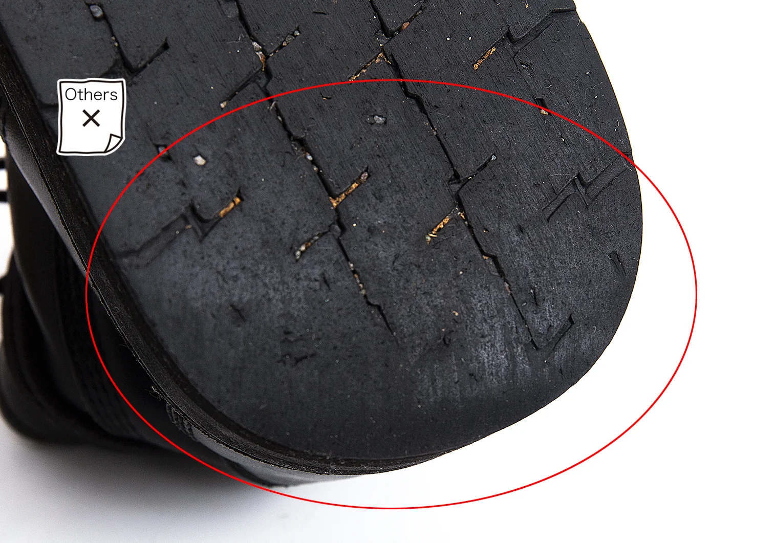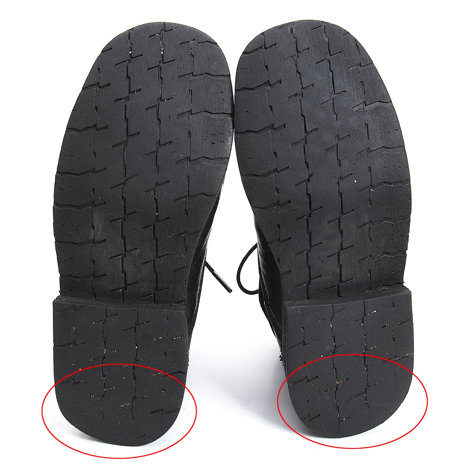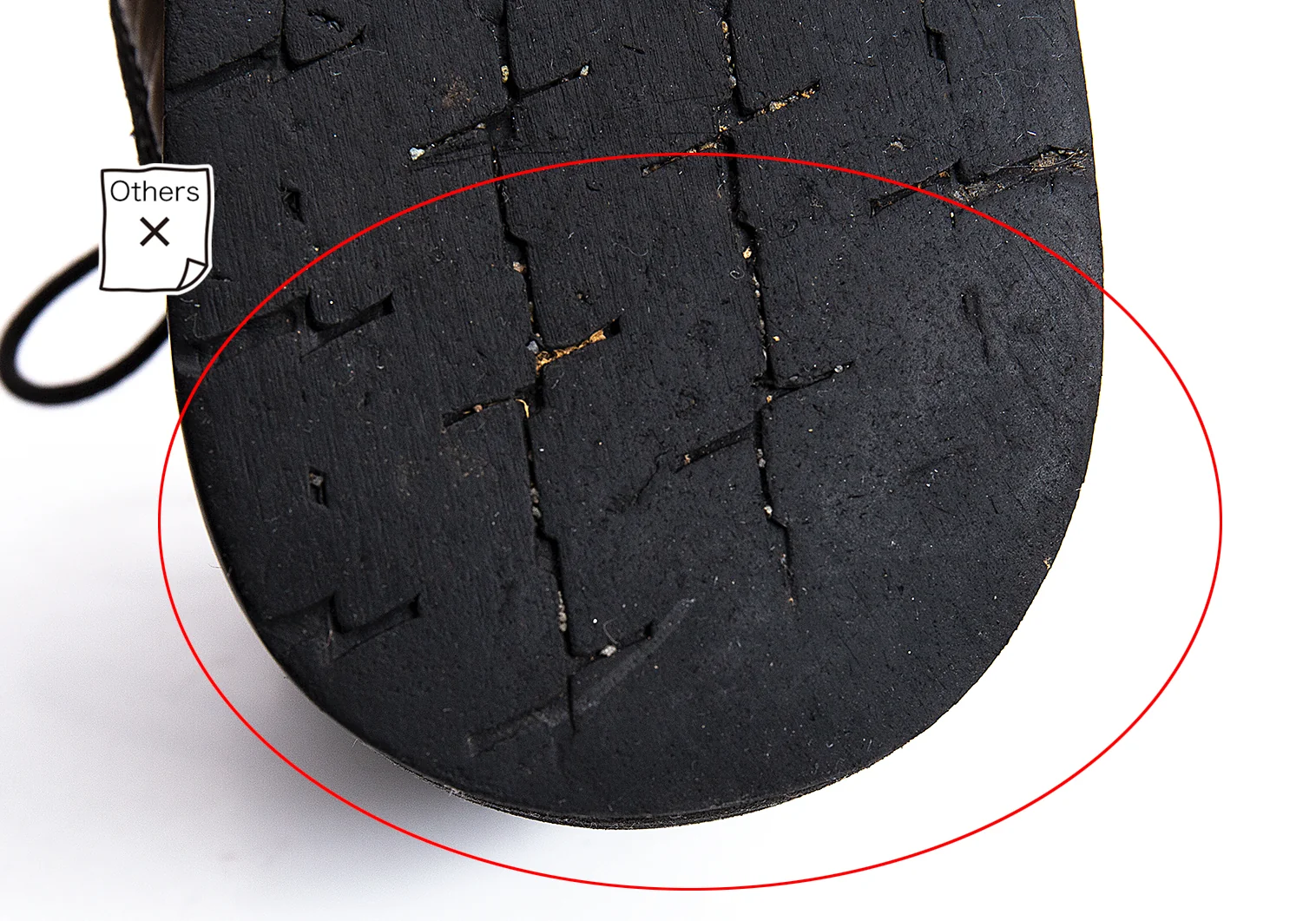 踵ソール減りがあります(写真参照)。全体的に着用感ございますが、その他目立った傷や汚れなどなくいい状態です。