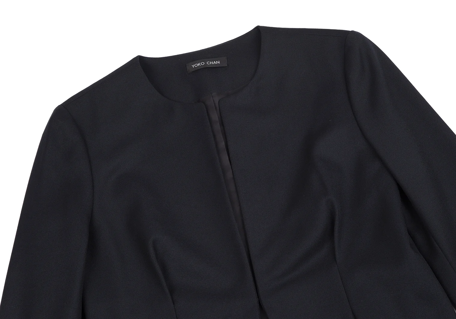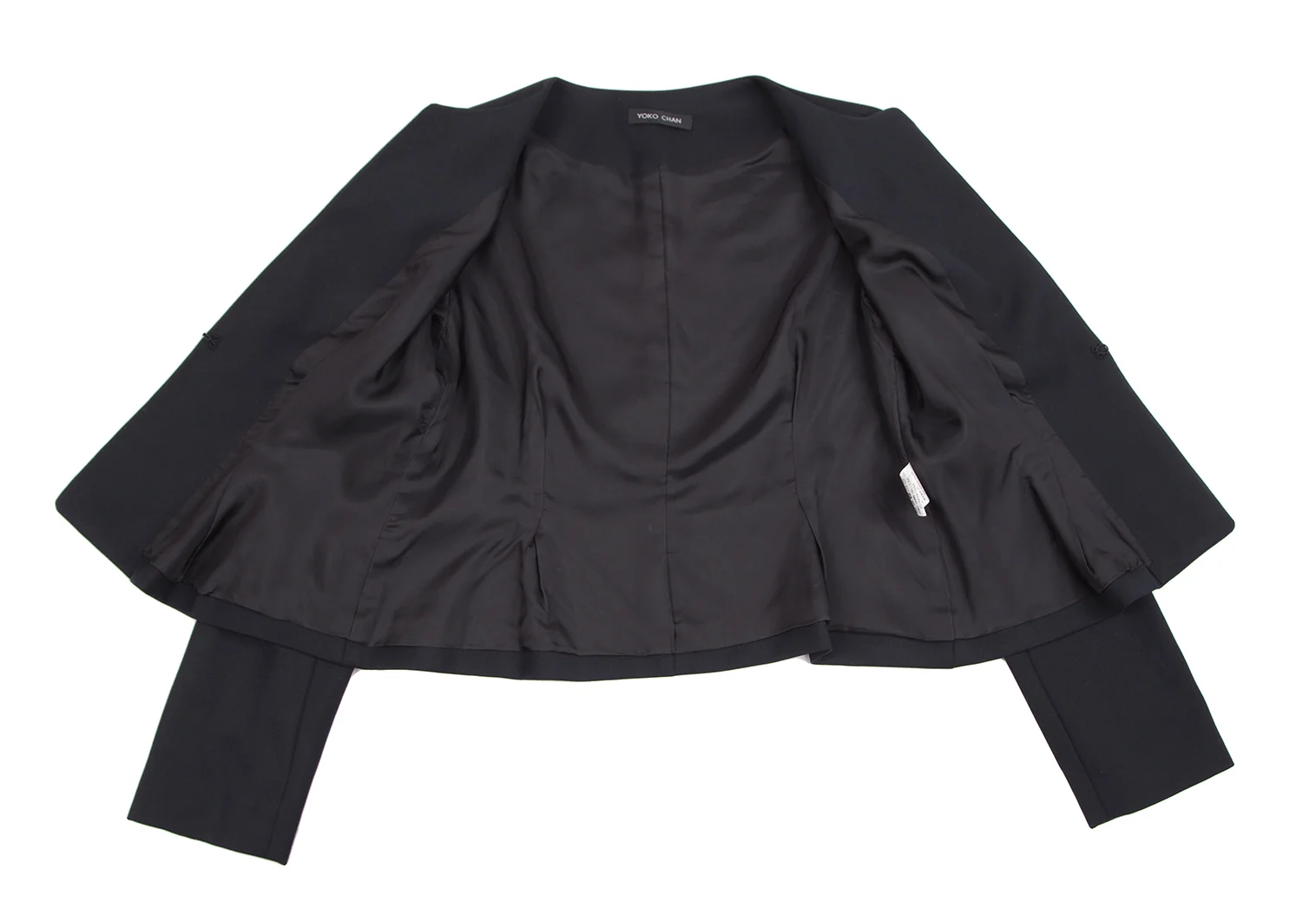 ヨーコチャンYOKO CHAN ウールギャバノーカラージャケット 紺38