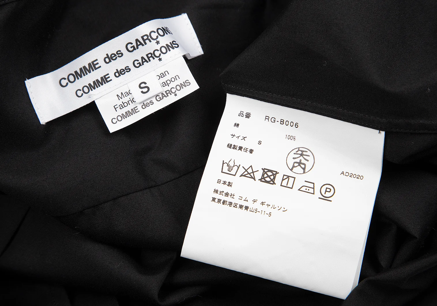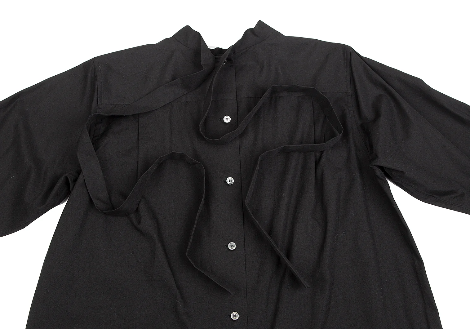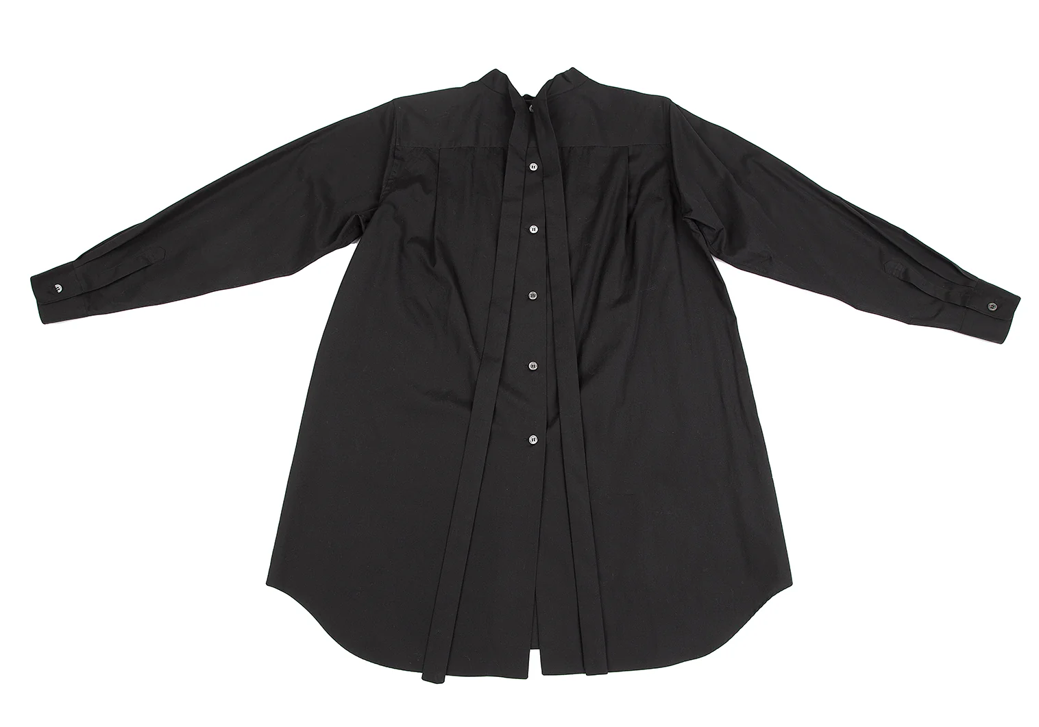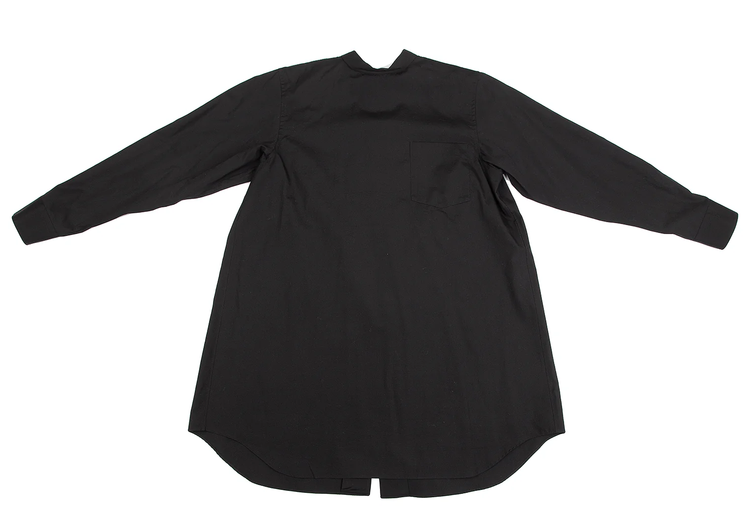 コムコム コムデギャルソンCOMME des GARCONS コットンバックボタンスタンドカラーロングシャツ 黒S