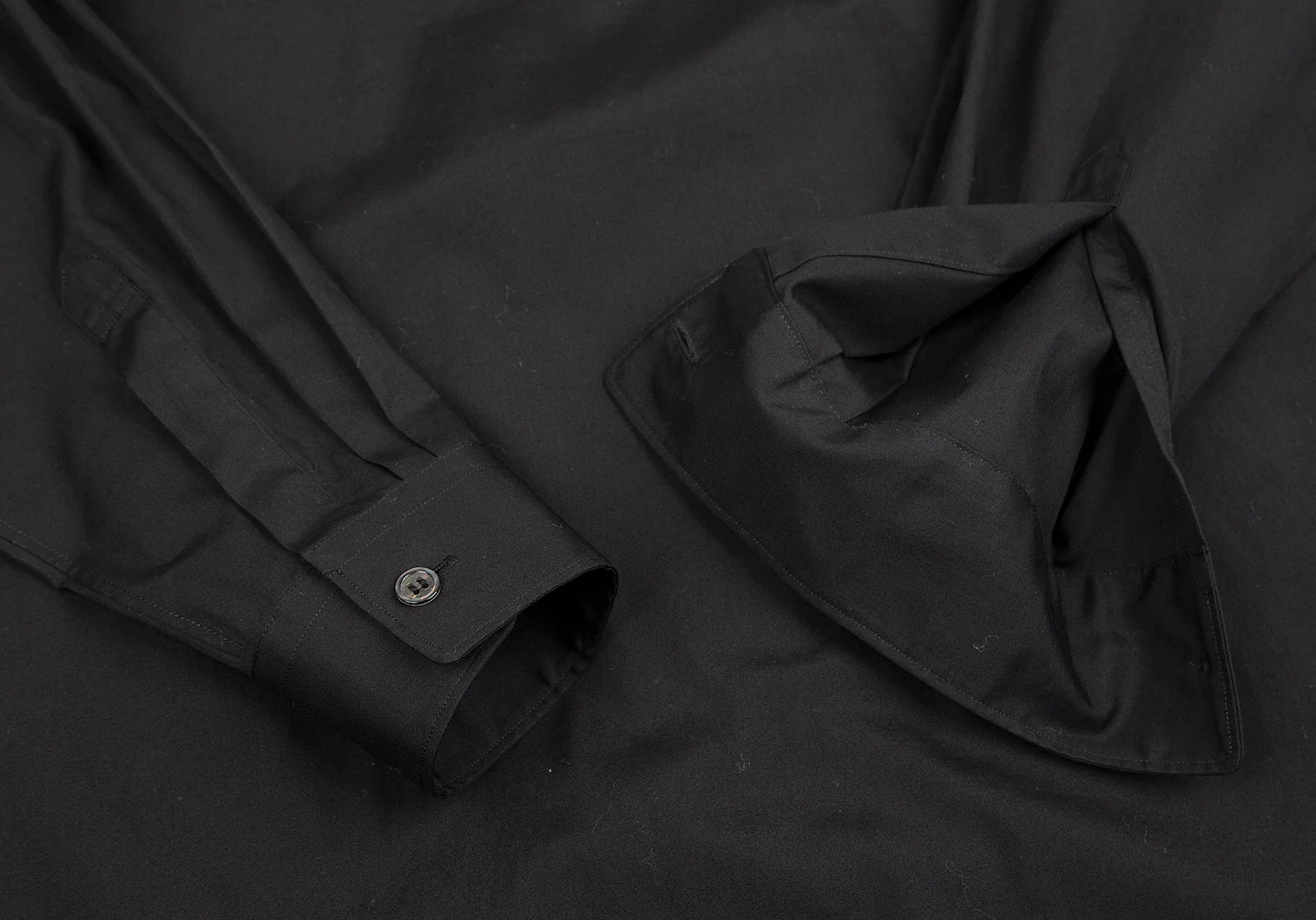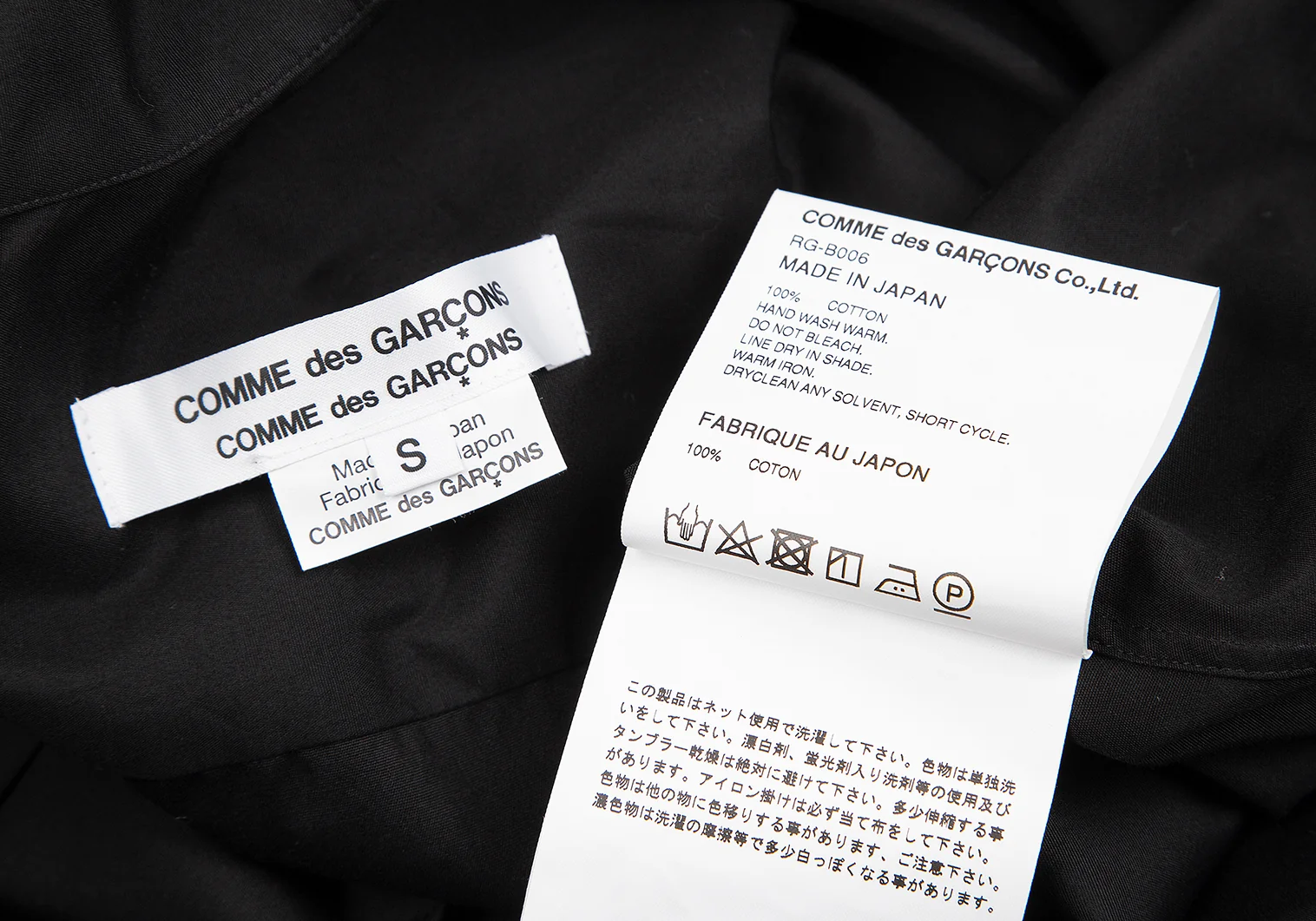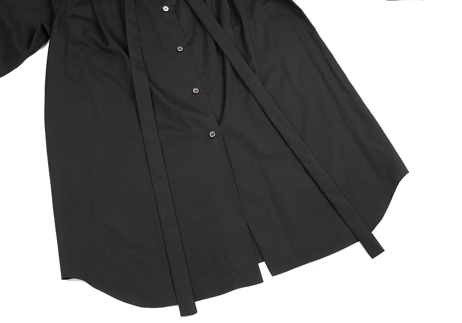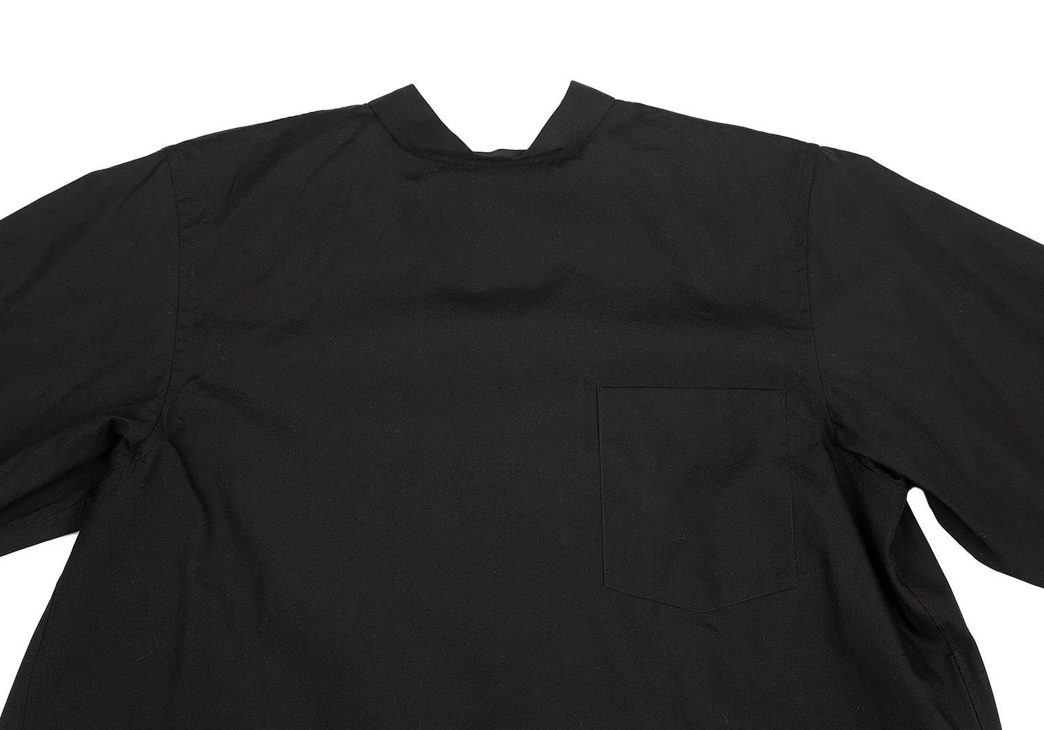 コムコム コムデギャルソンCOMME des GARCONS コットンバックボタンスタンドカラーロングシャツ 黒S