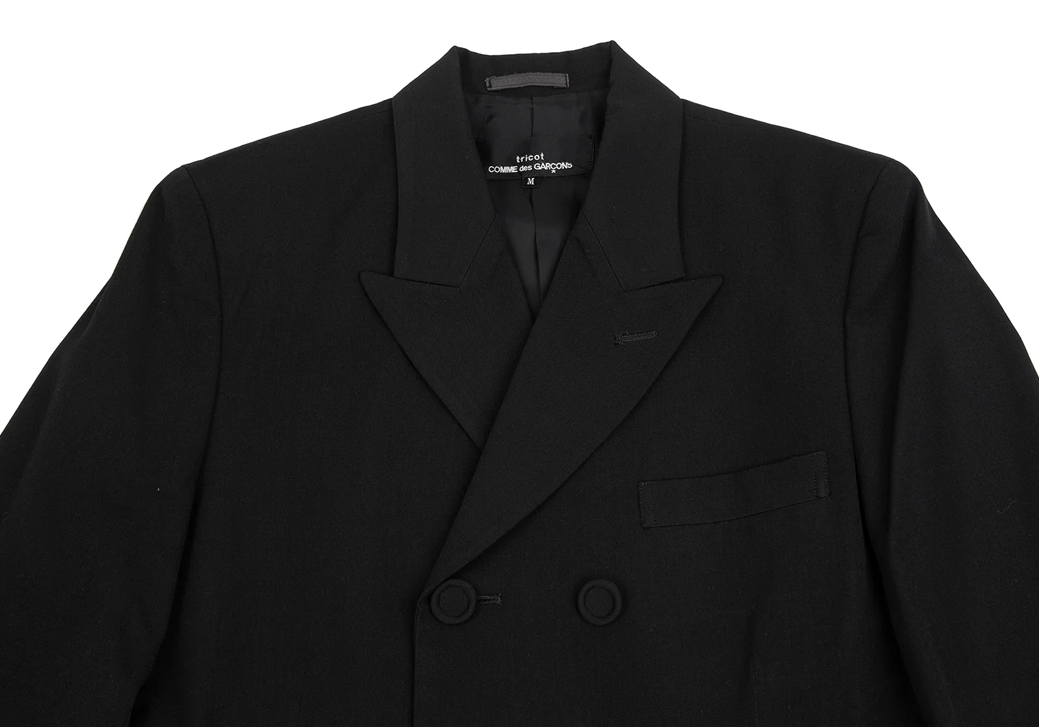 トリココムデギャルソンtricot COMME des GARCONSウールギャバダブルボタンピークドラペルセットアップ 黒M