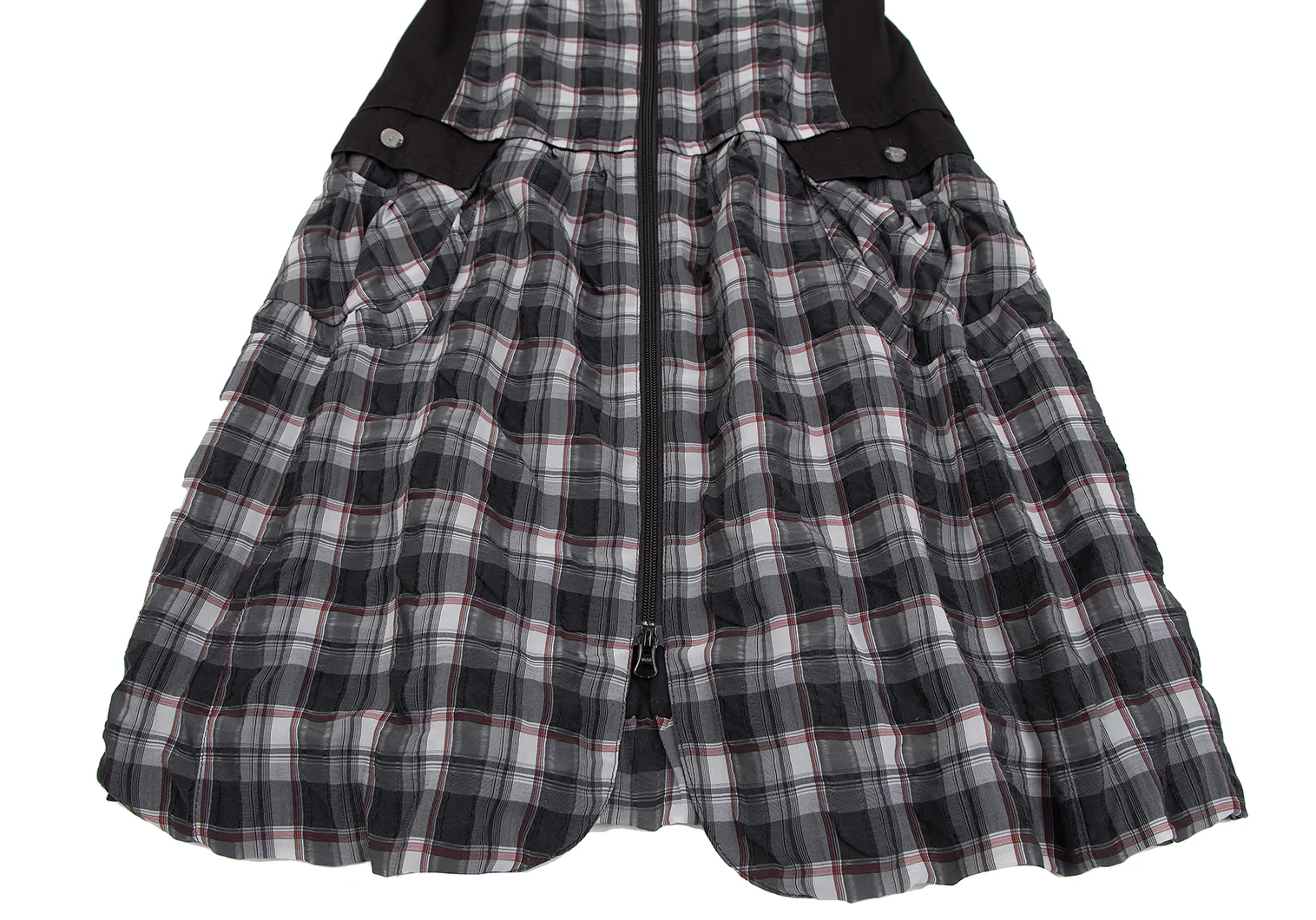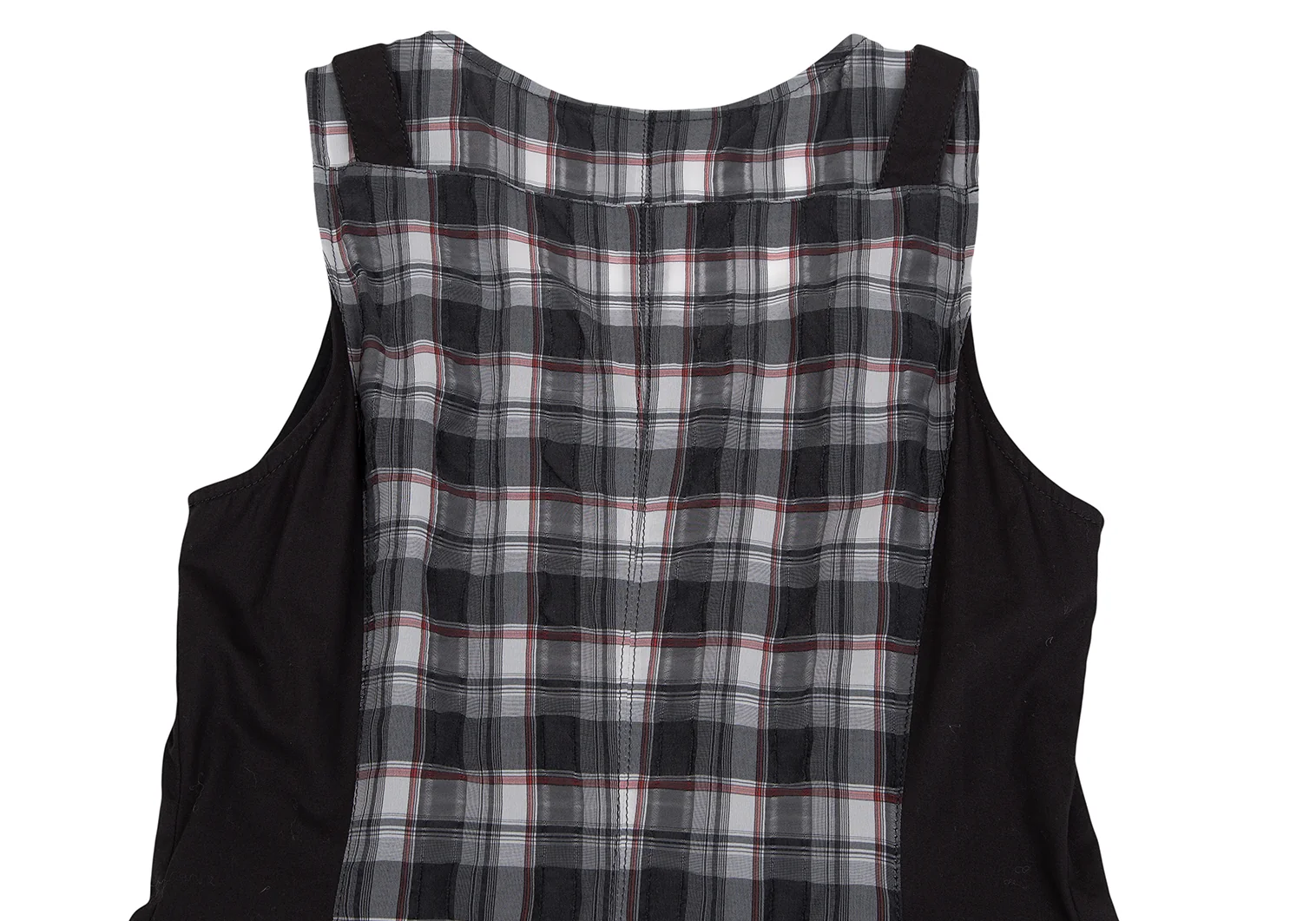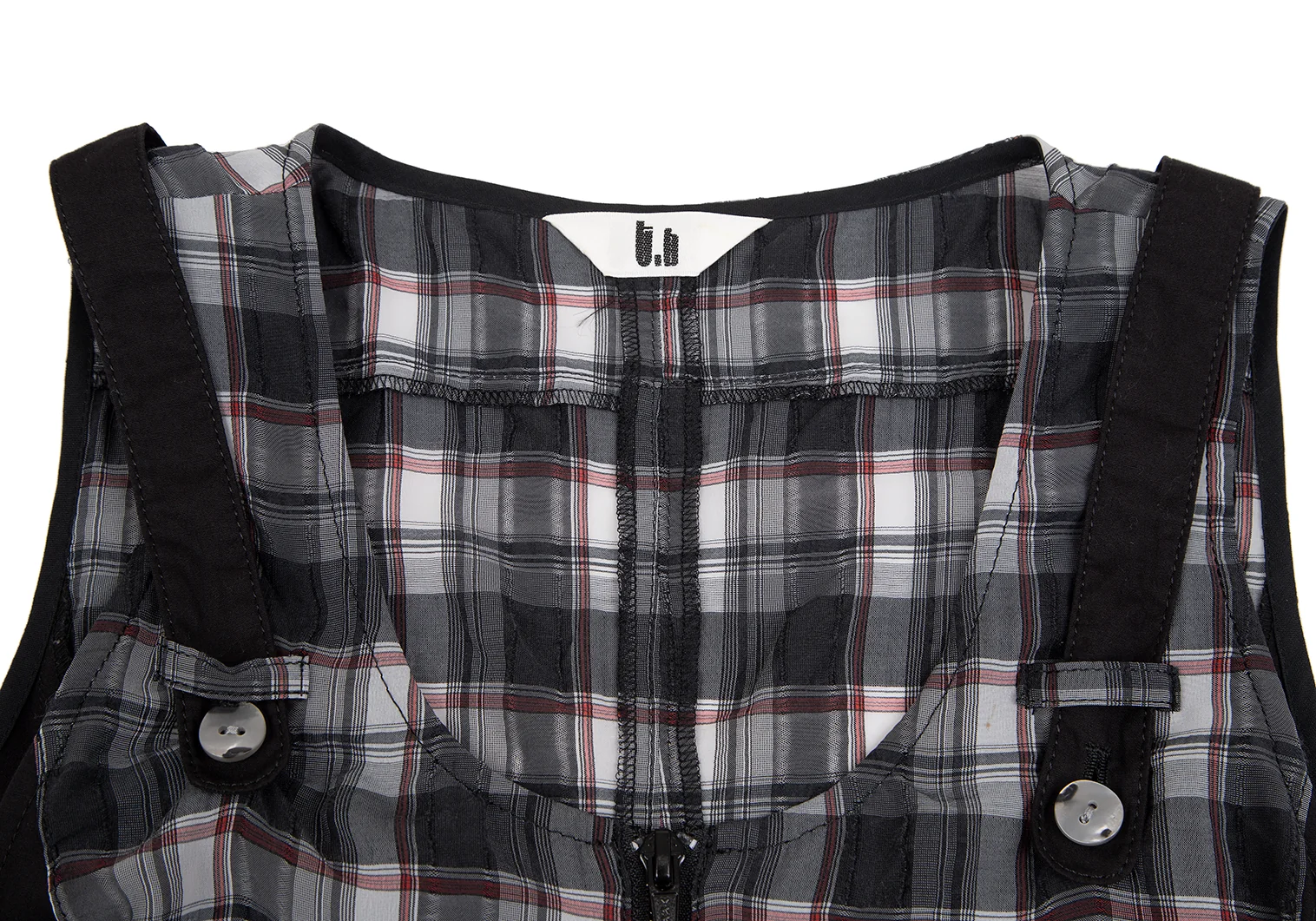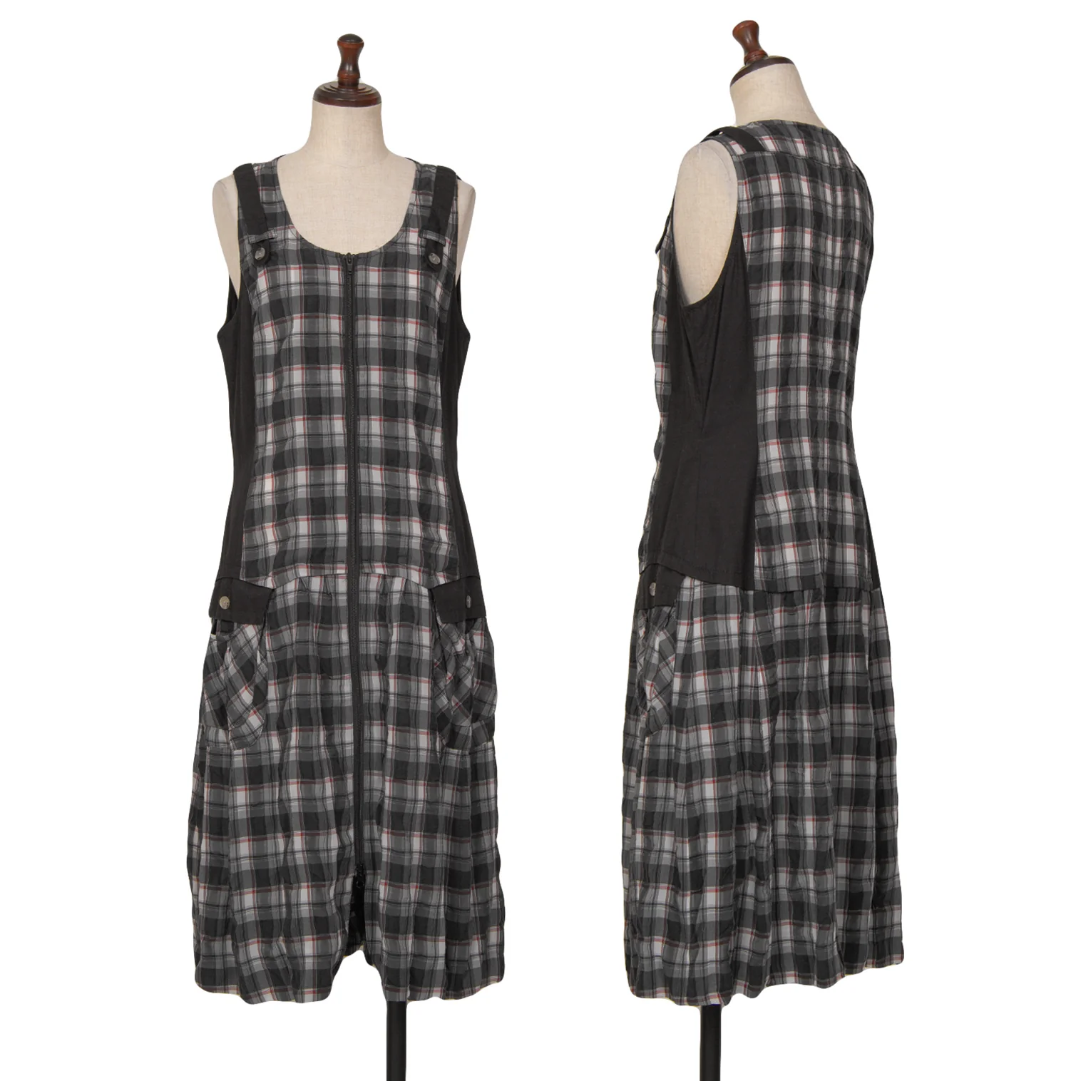 センソユニコt.b SENSOUNICO チェック切替フロントダブルジップノースリーブワンピース 黒グレー赤38