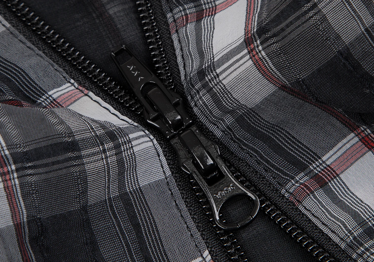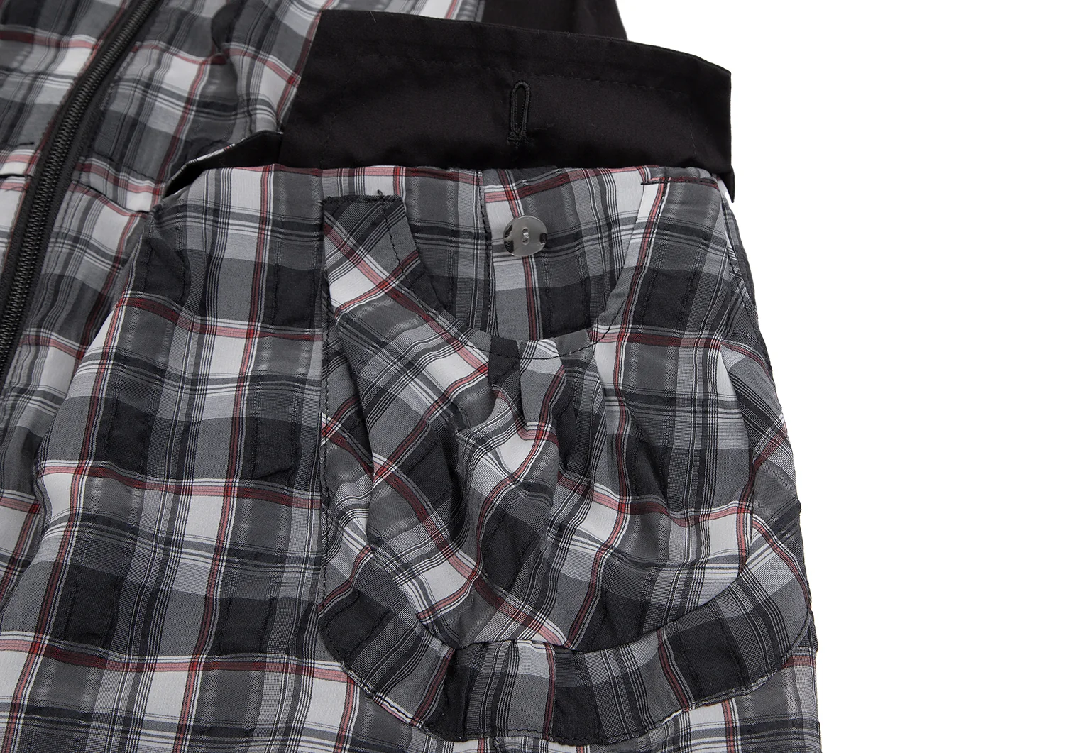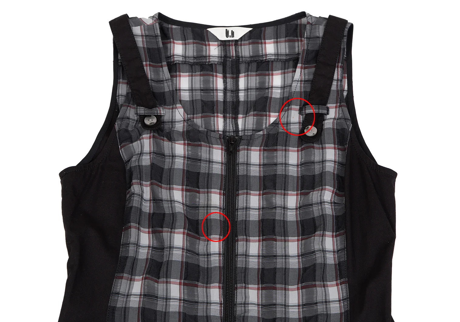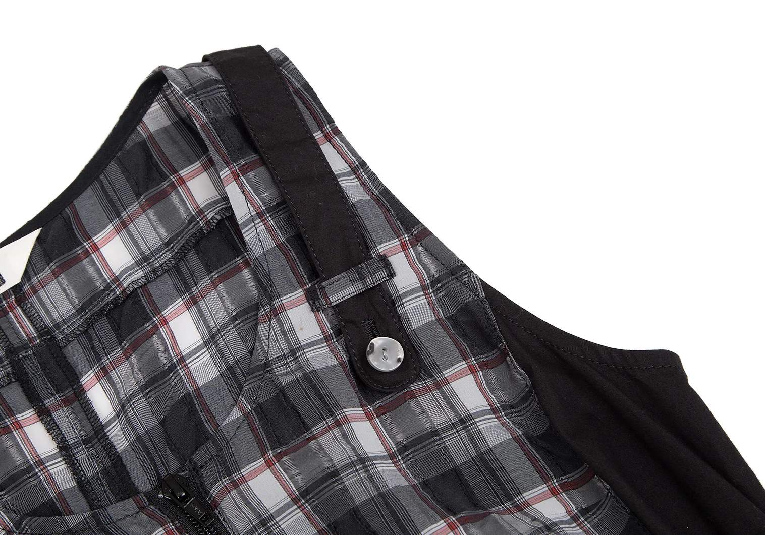 センソユニコt.b SENSOUNICO チェック切替フロントダブルジップノースリーブワンピース 黒グレー赤38