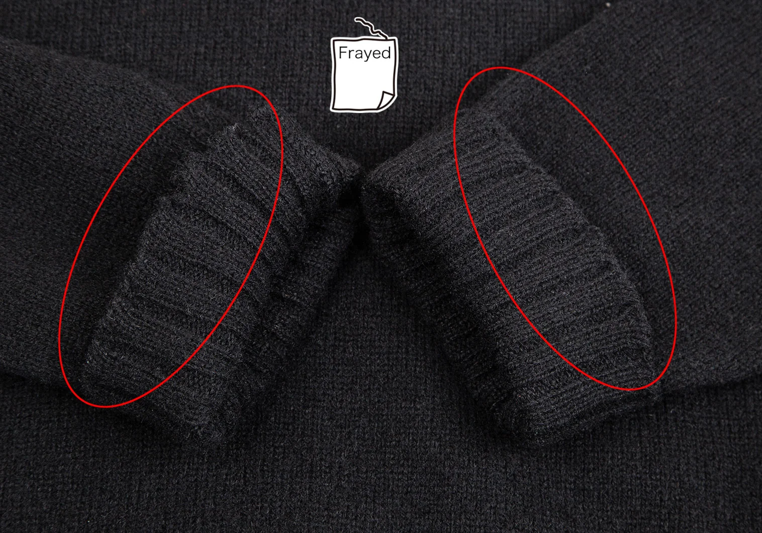 前に補修跡、首周りに薄汚れ、袖先編み目にほつれがあります(写真参照)。目立ったシミ、汚れ、ほつれ等はありません。クリーニング済み