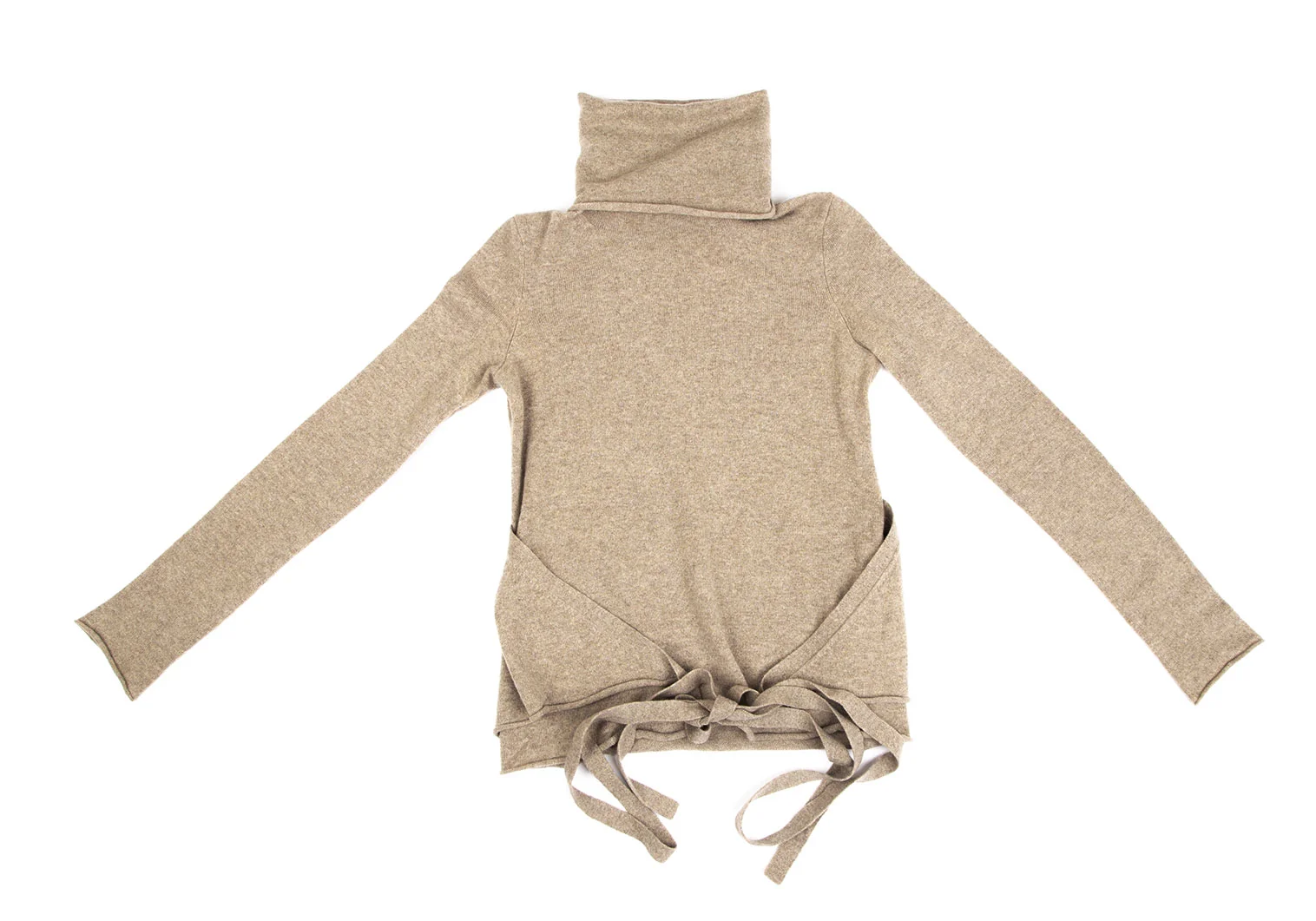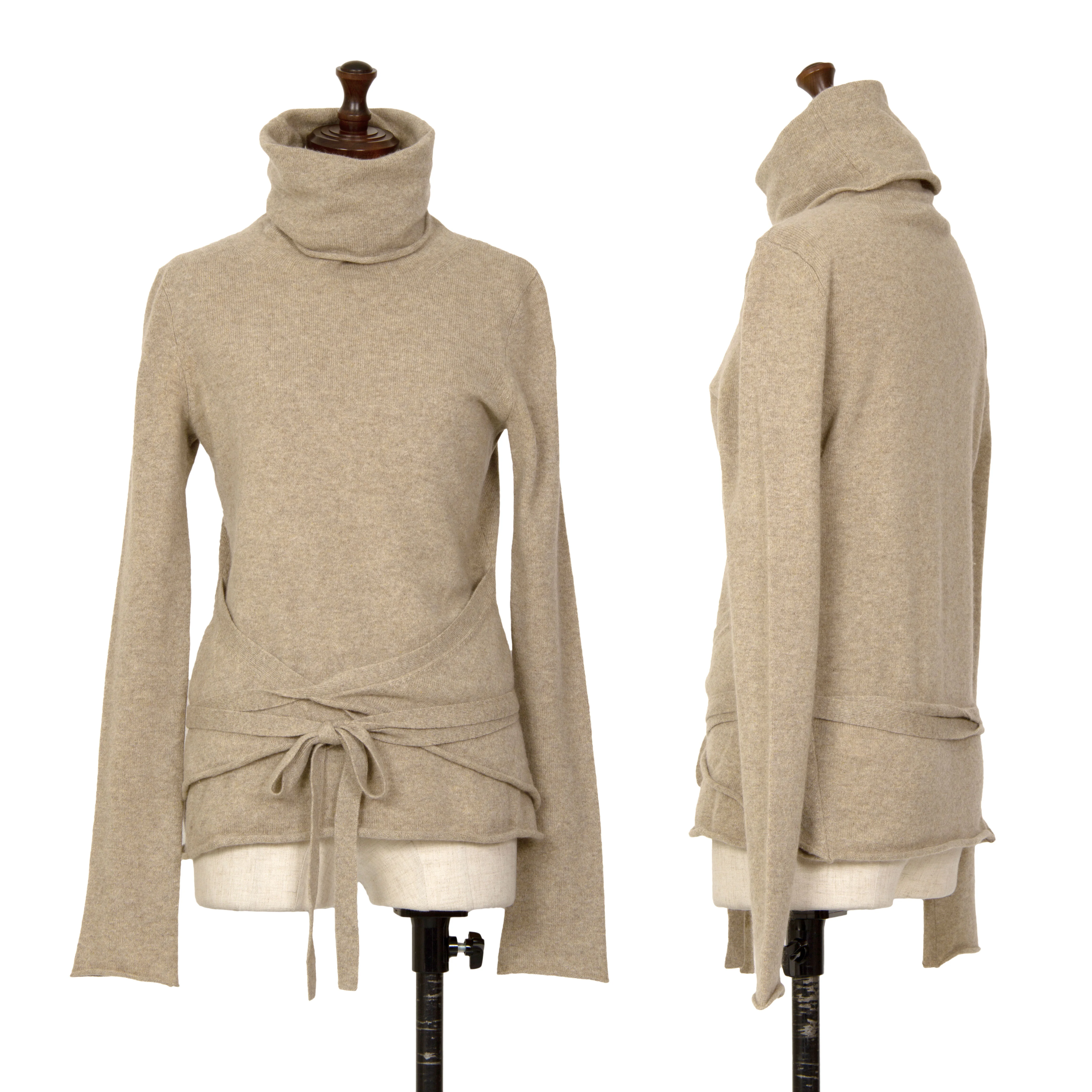 ダナキャランDONNA KARAN ウールタートルネックカシュクールニット ベージュS