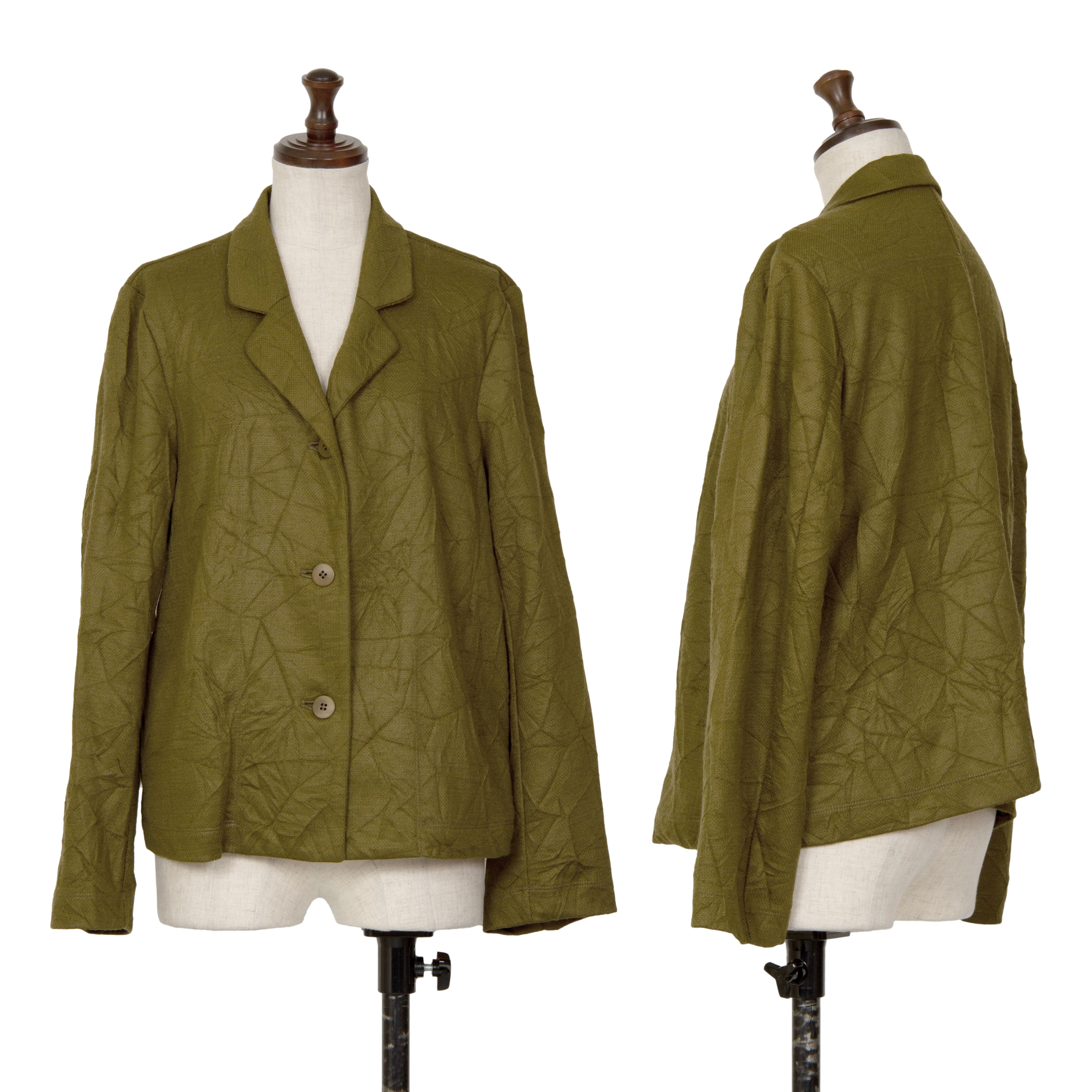 イッセイミヤケ ハートISSEY MIYAKE HaaT ポリウールシワ加工3Bジャケット カーキ2