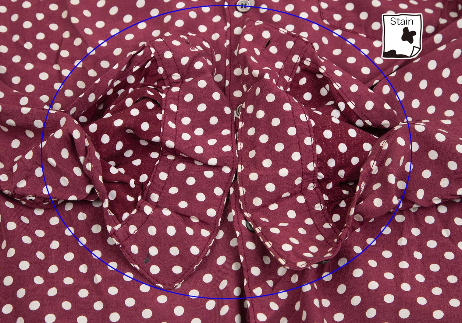 襟裏・肩に黄ばみ、袖裏に薄シミがあります(写真参照)。その他目立ったシミ、汚れ、ほつれ等なくいい状態です。クリーニング済み