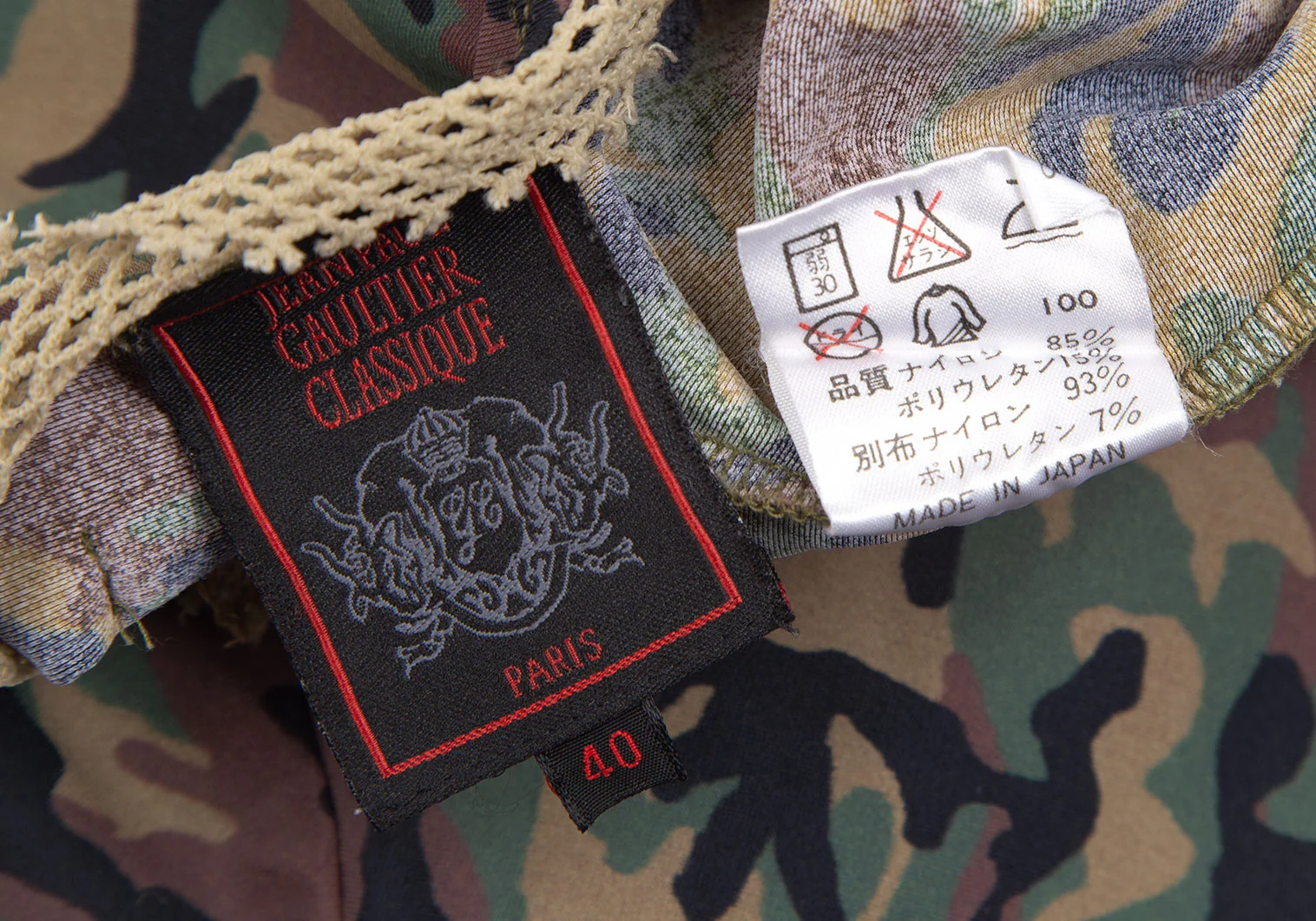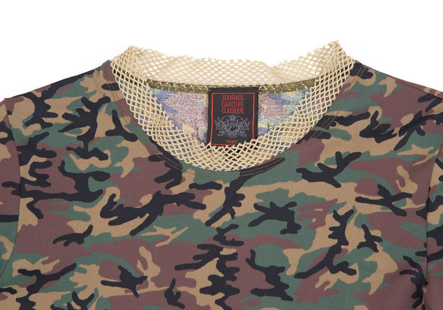 ジャンポールゴルチエ クラシックJean Paul GAULTIER CLASSIQUE ネットパイピングカモフラカットソー 緑茶40