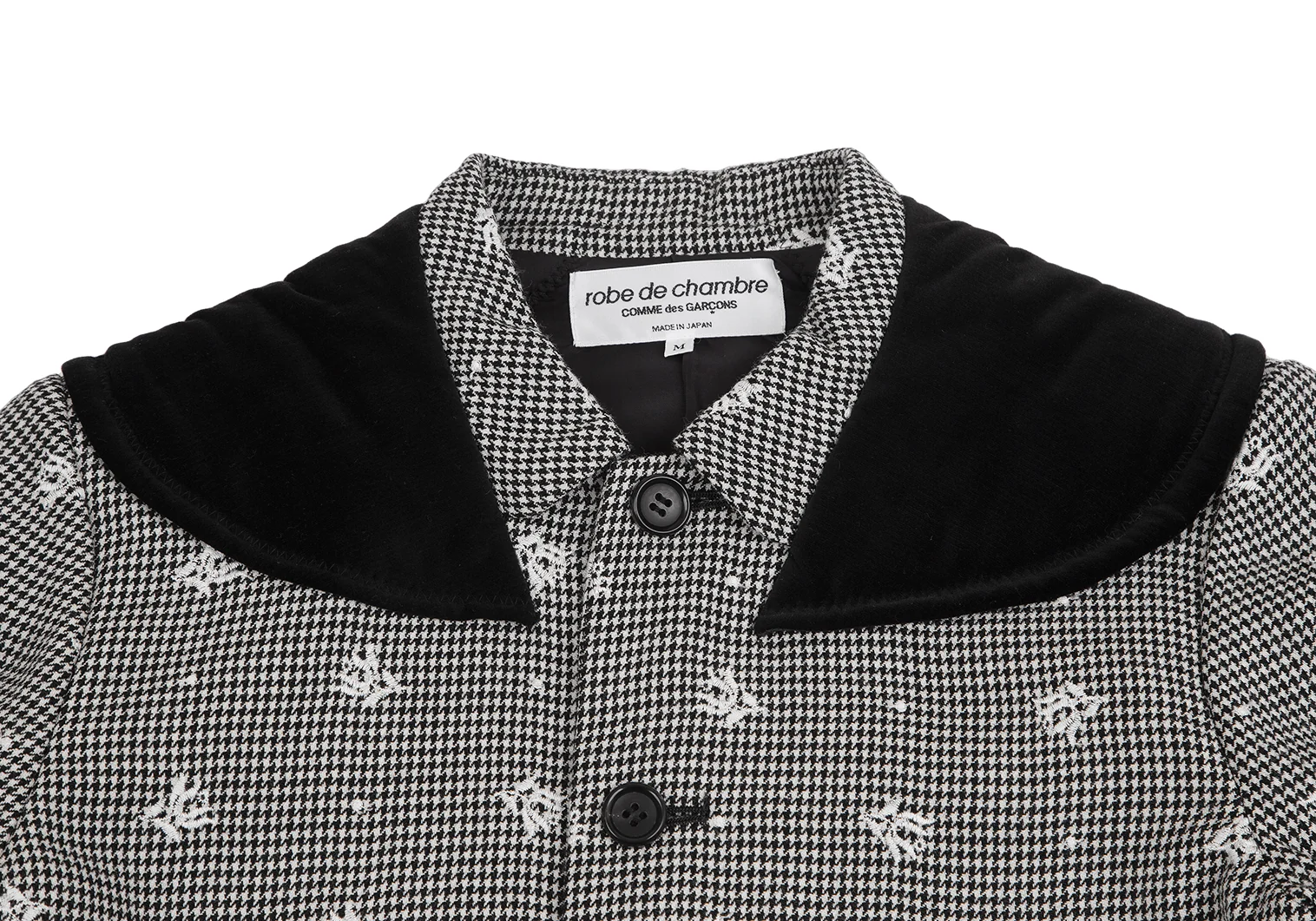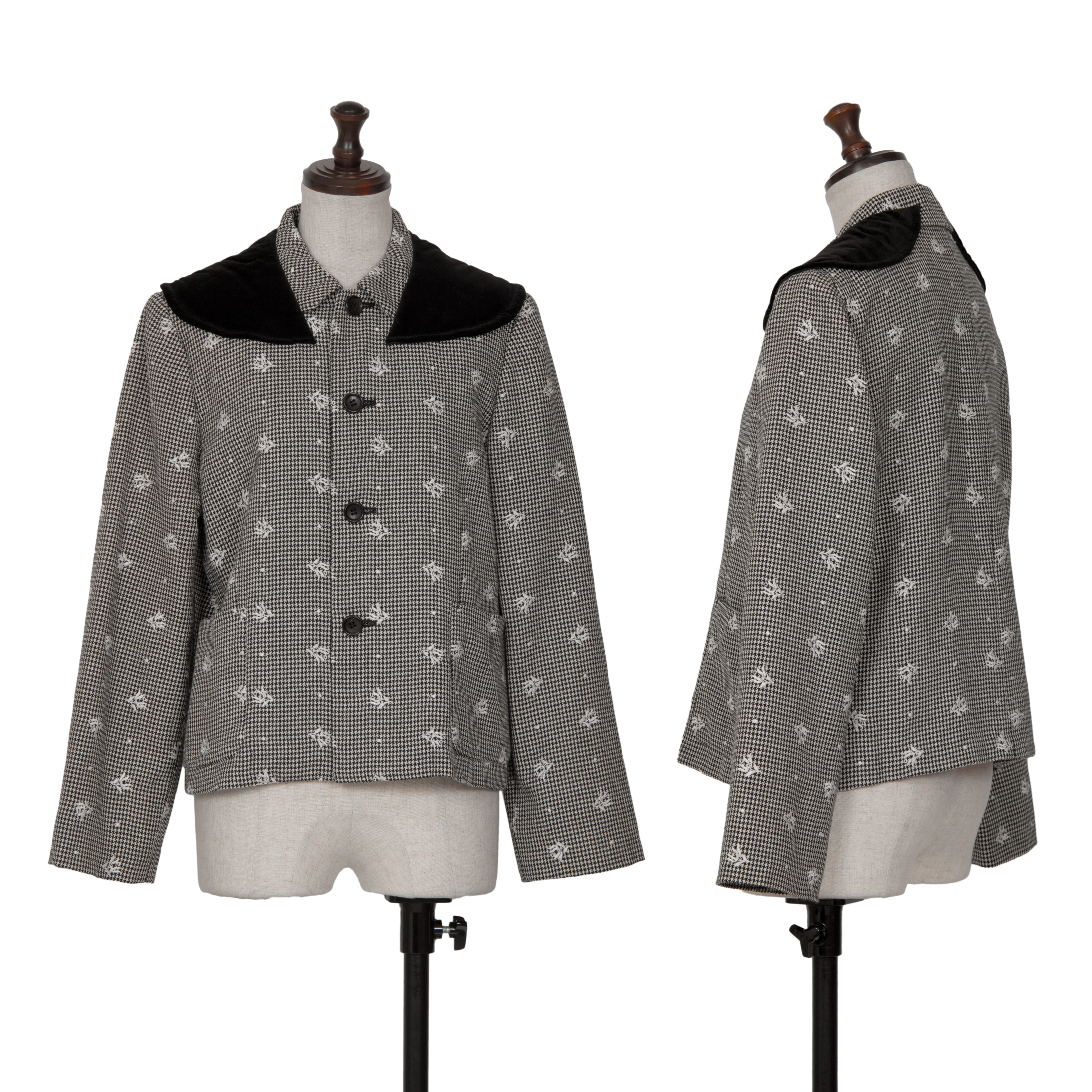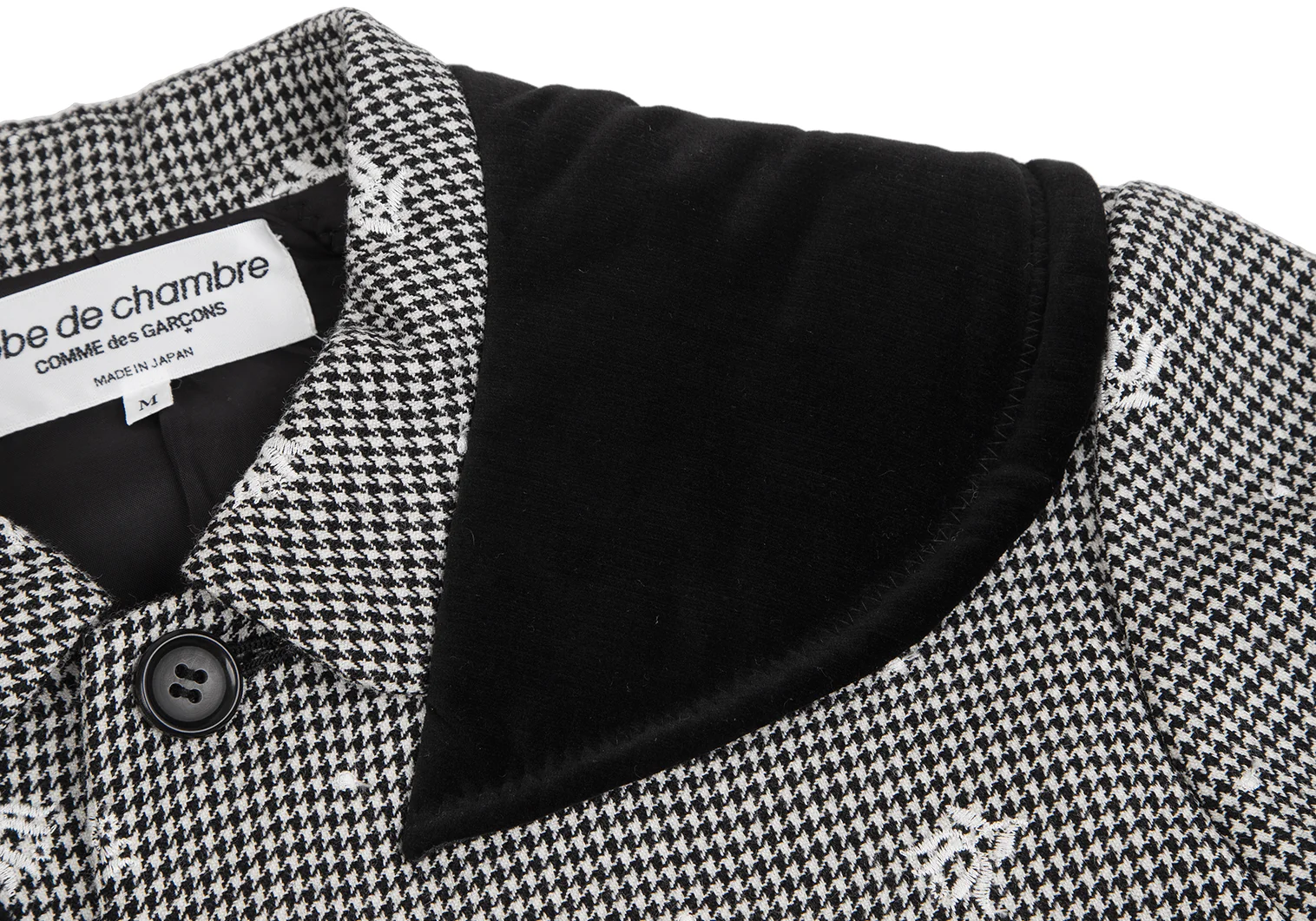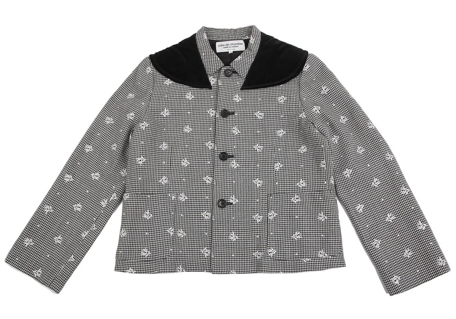 ローブドシャンブル コムデギャルソンrobe de chambre COMME des GARCONSフラワー刺繍ハウンドトゥースジャケット 黒白M