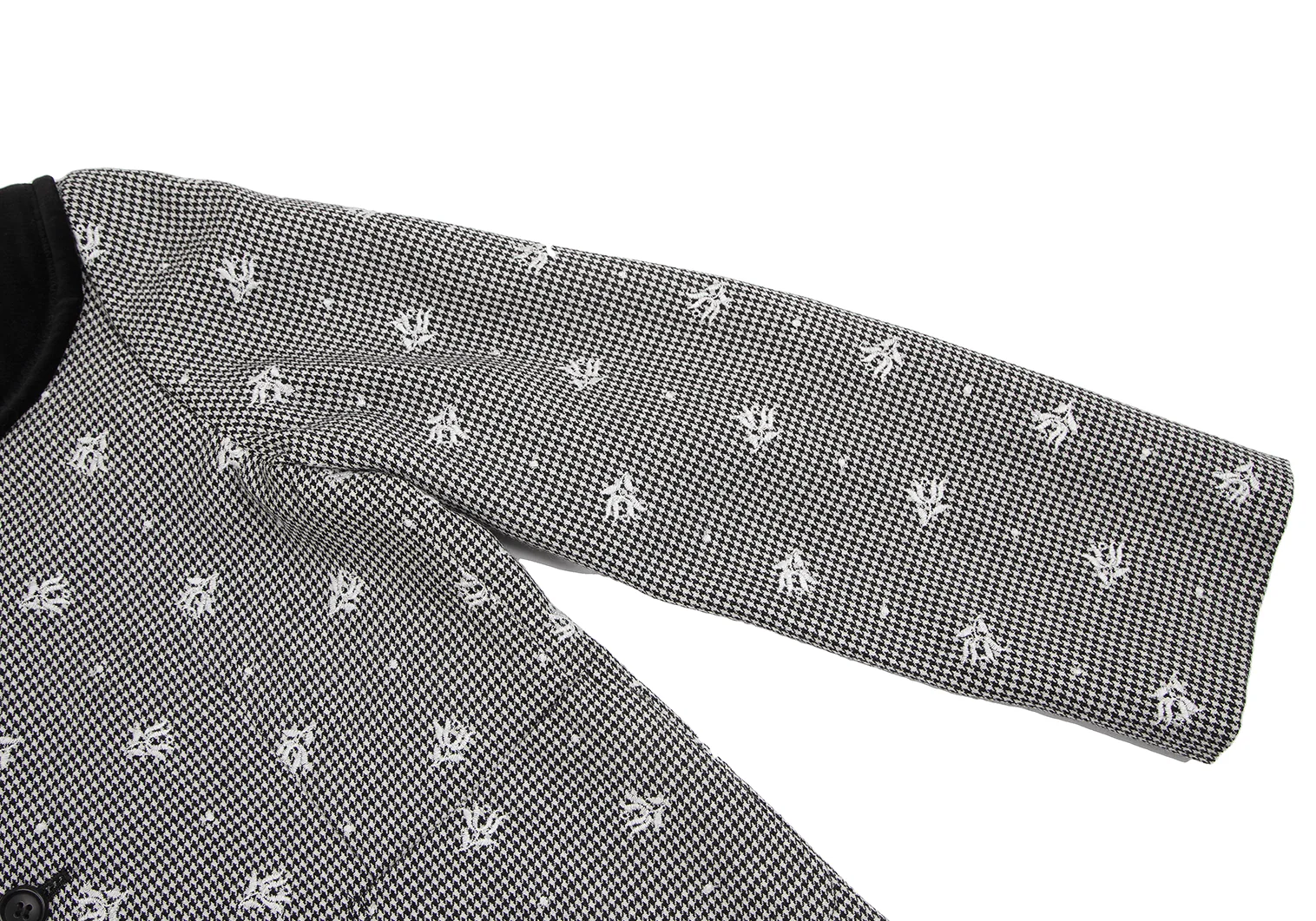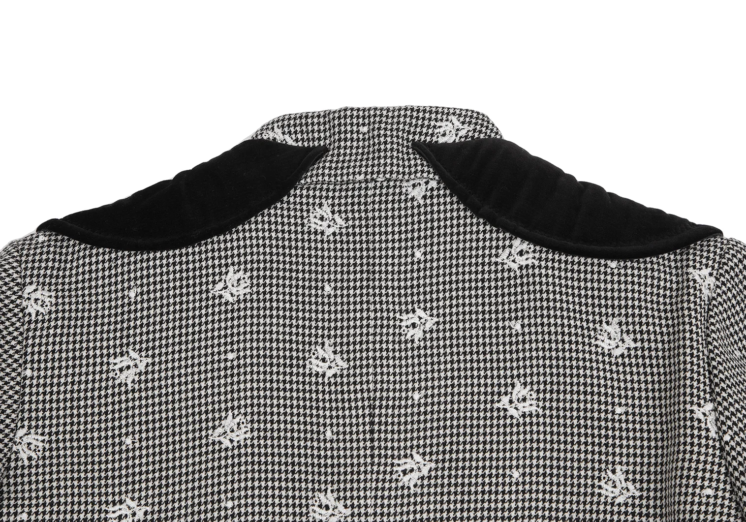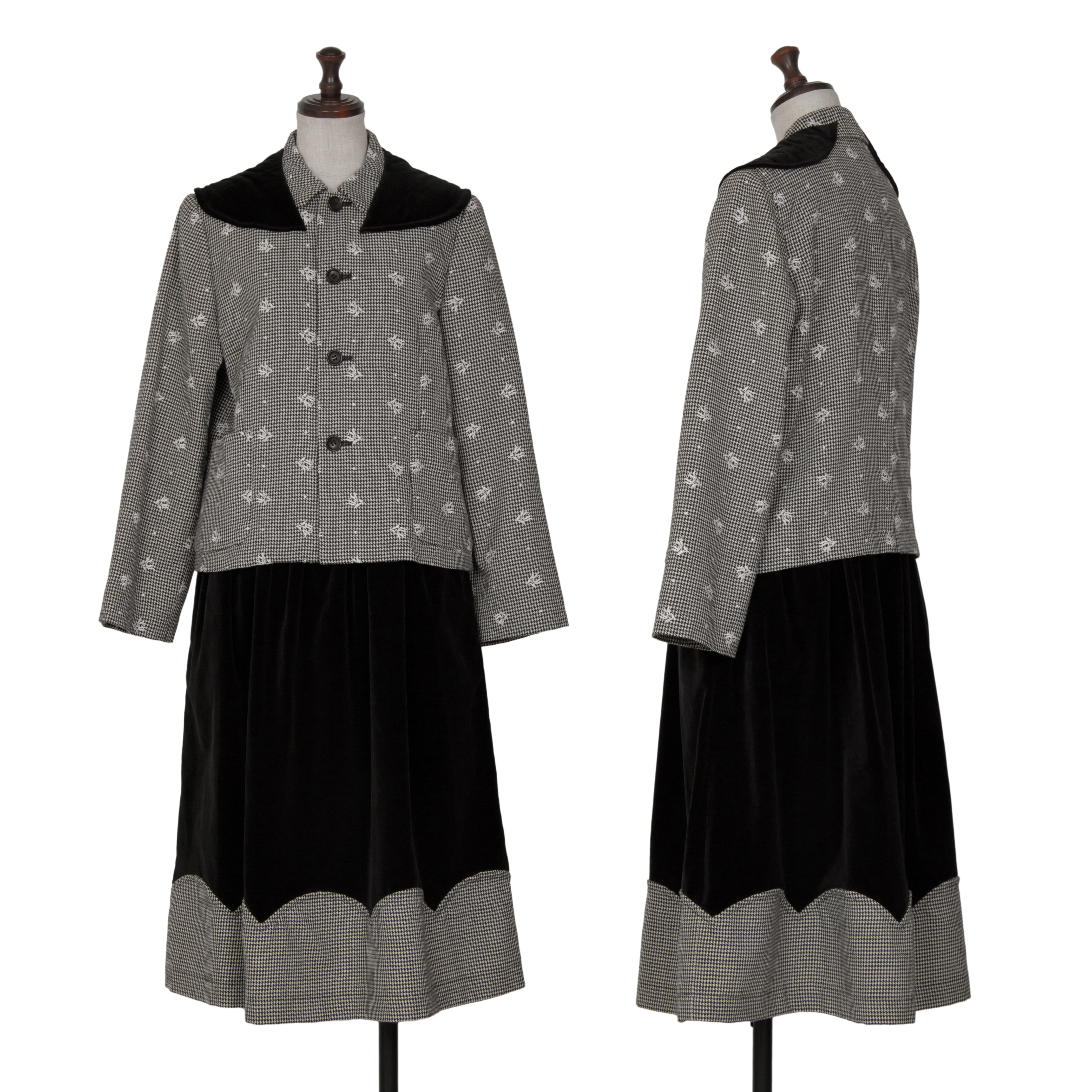 ローブドシャンブル コムデギャルソンrobe de chambre COMME des GARCONSフラワー刺繍ハウンドトゥースジャケット 黒白M