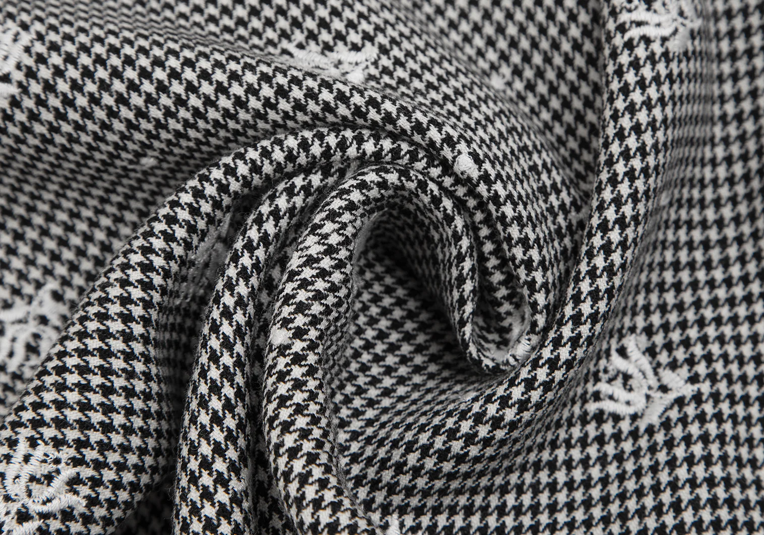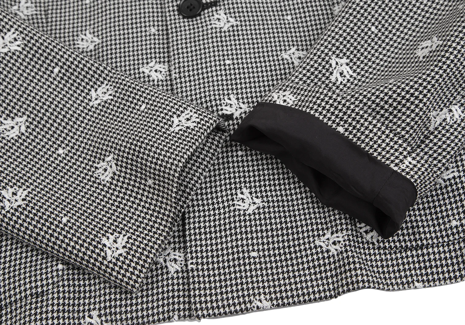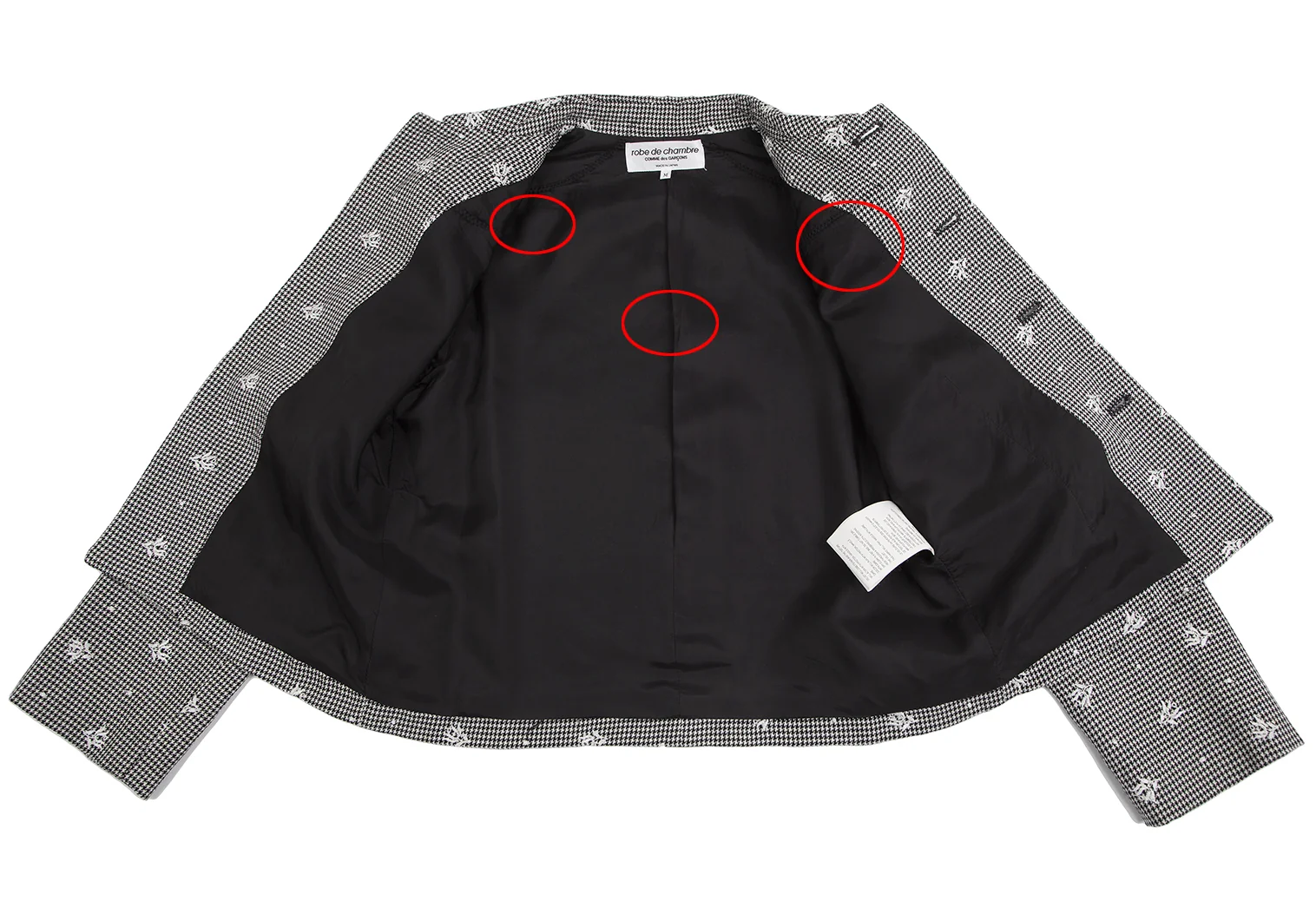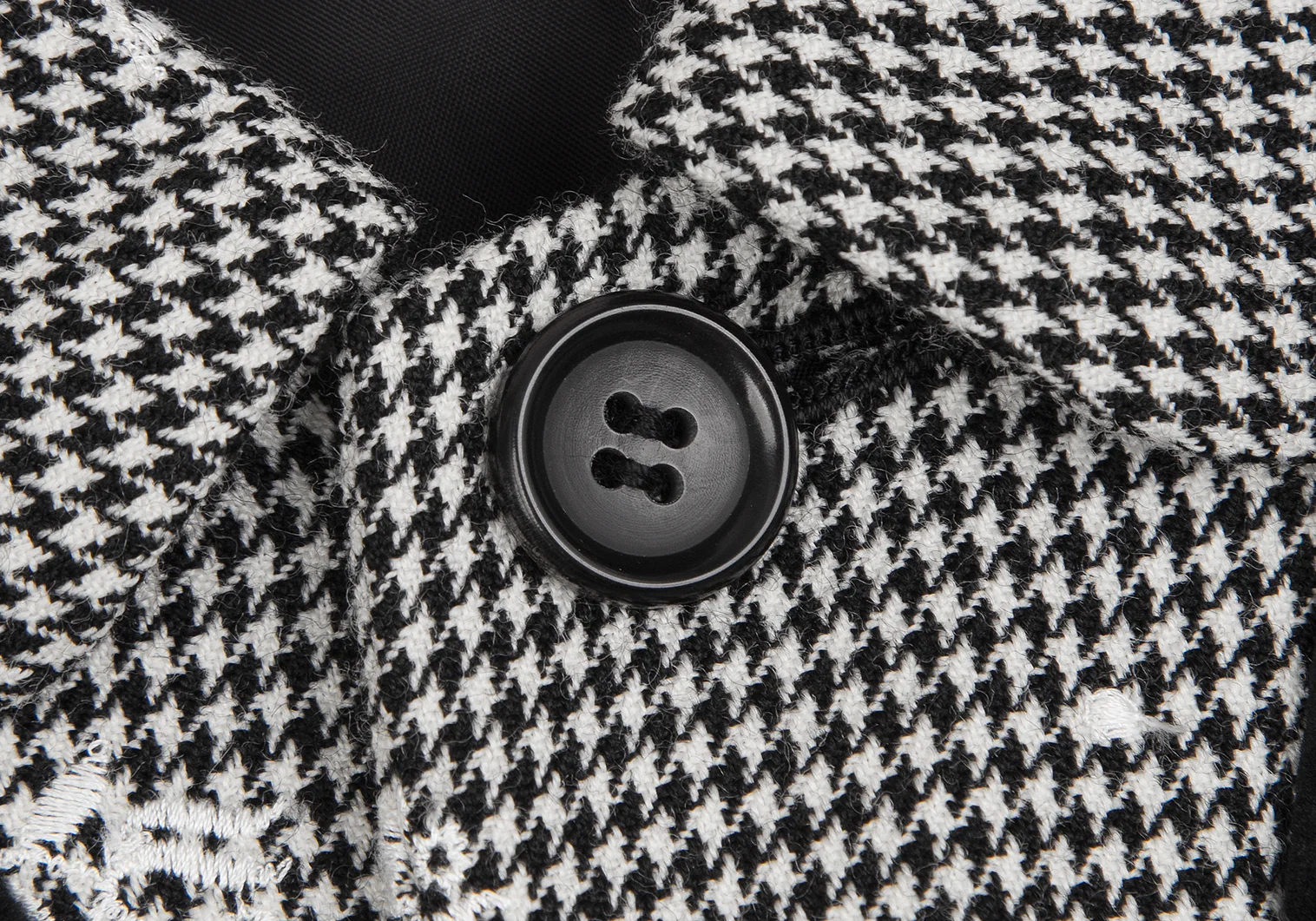 ローブドシャンブル コムデギャルソンrobe de chambre COMME des GARCONSフラワー刺繍ハウンドトゥースジャケット 黒白M