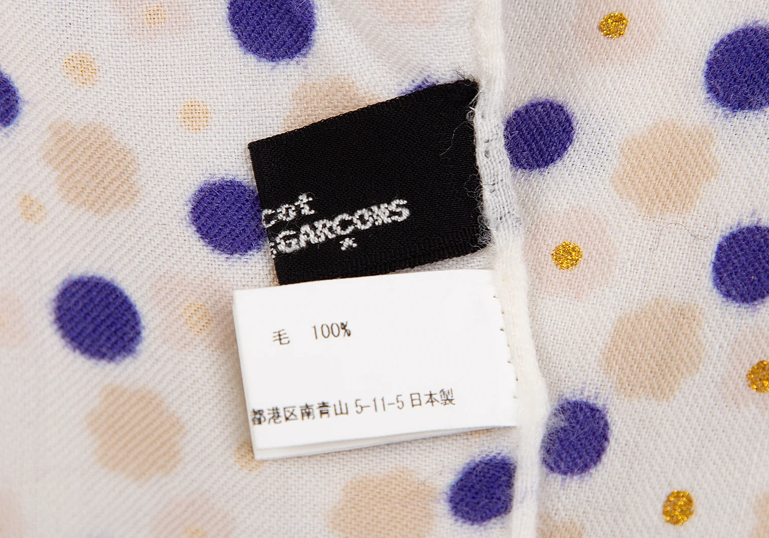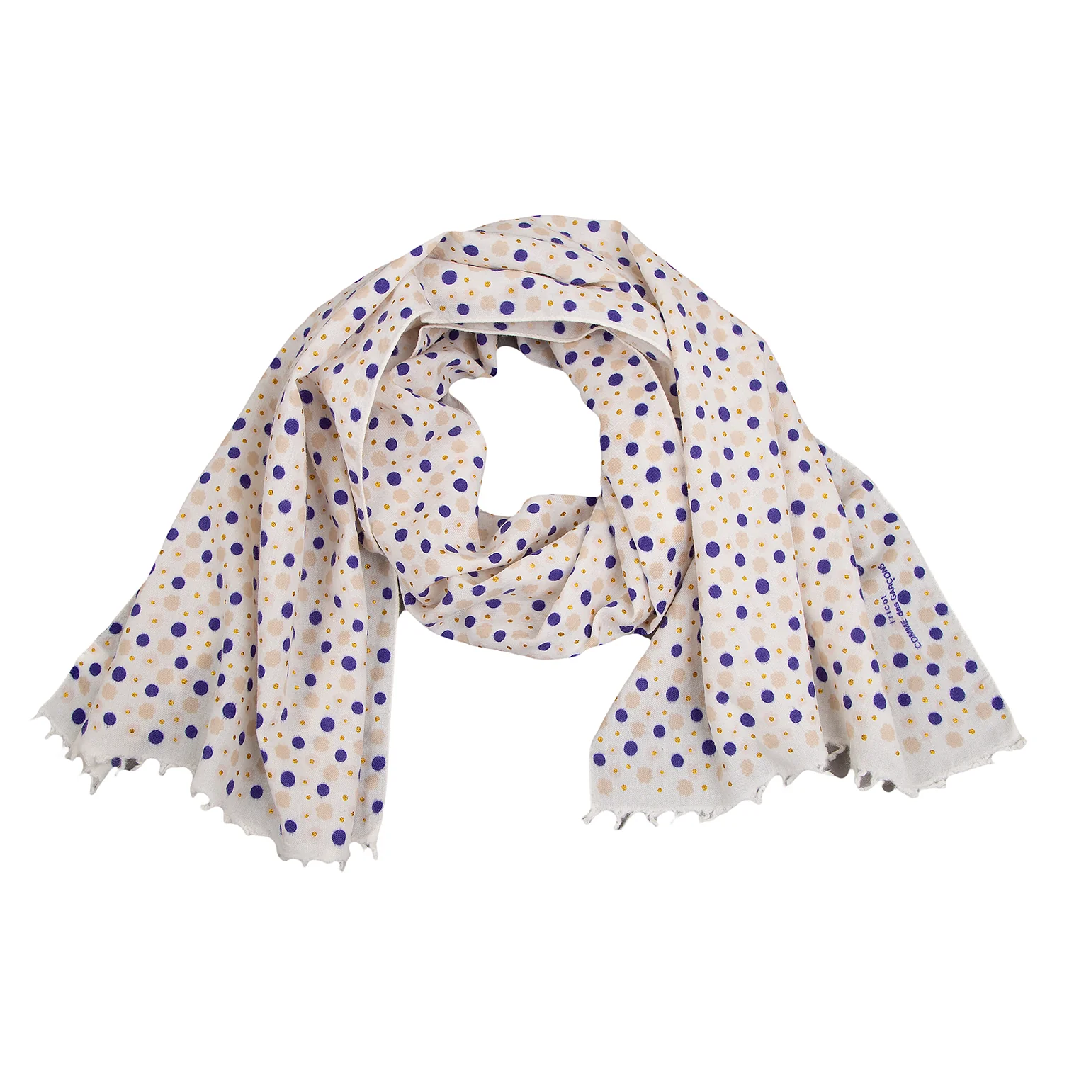 トリココムデギャルソンtricot COMME des GARCONS ドットプリントストール 白青ベージュ