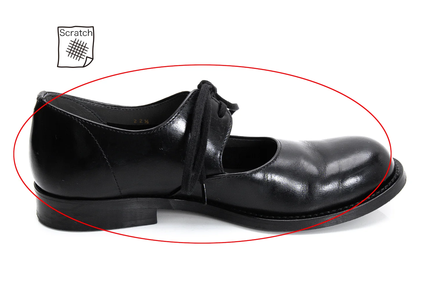 アッパーにスレ、かかとに減りがあります。(写真参照)その他目立った傷や汚れなどなくいい状態です。