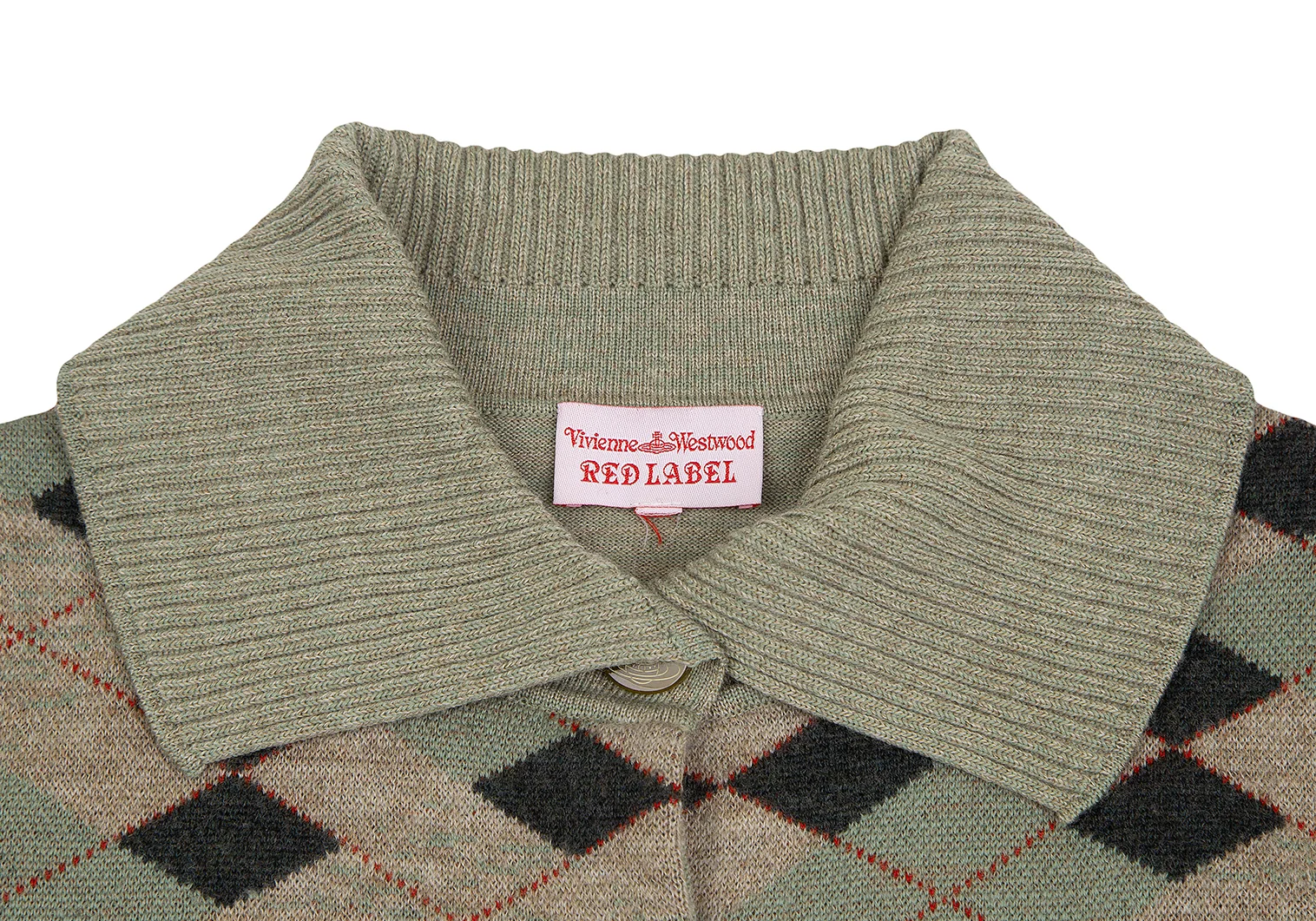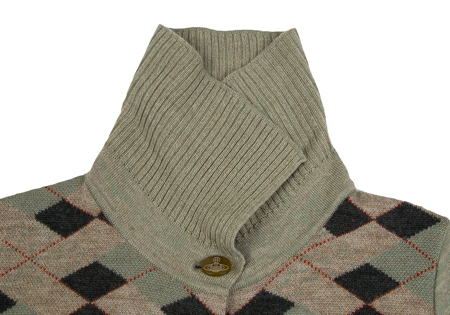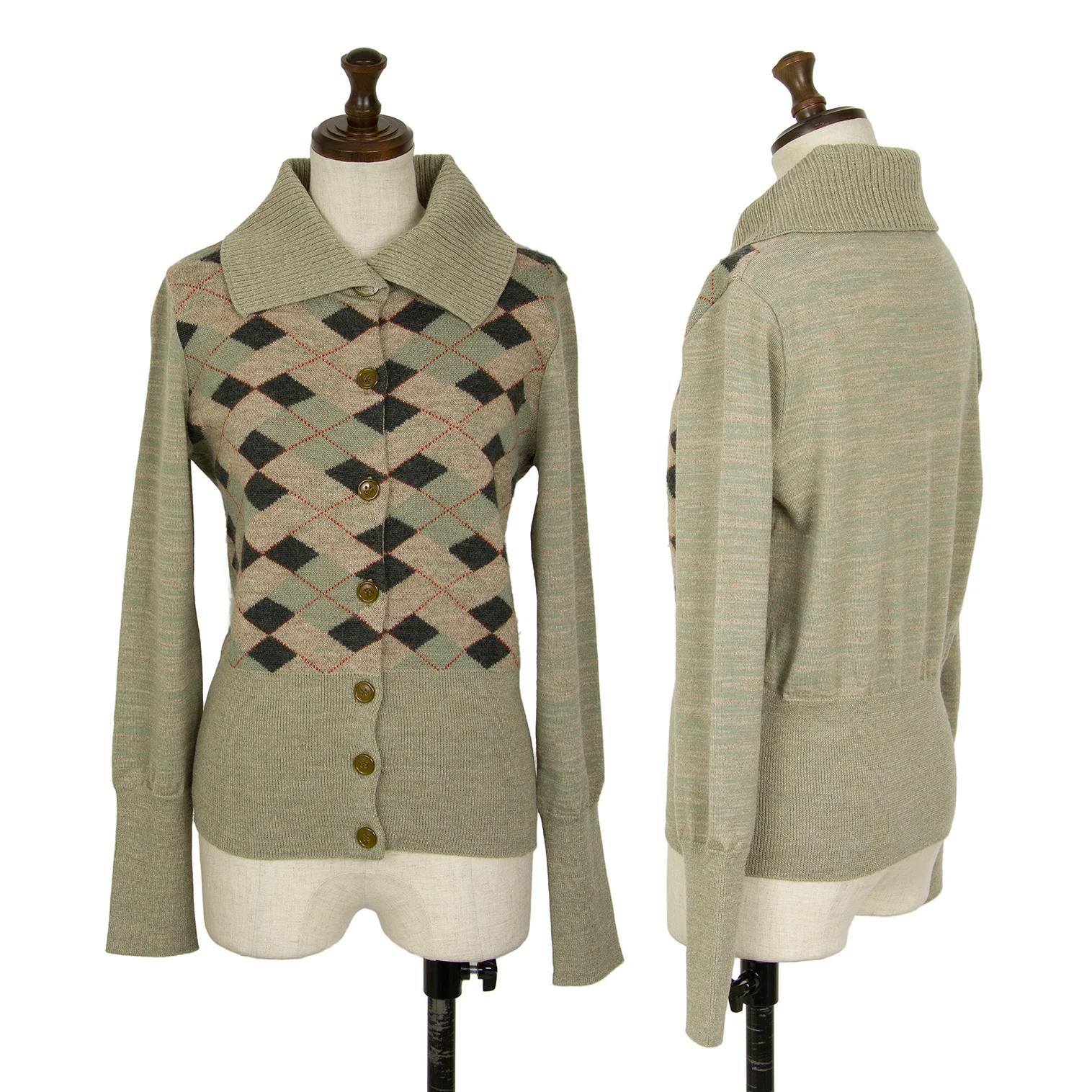 ヴィヴィアンウエストウッド レッドレーベルVivienne Westwood Red Label リブカラーアーガイルチェックカーディガン 緑他M位