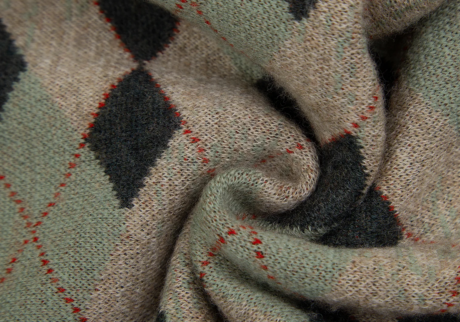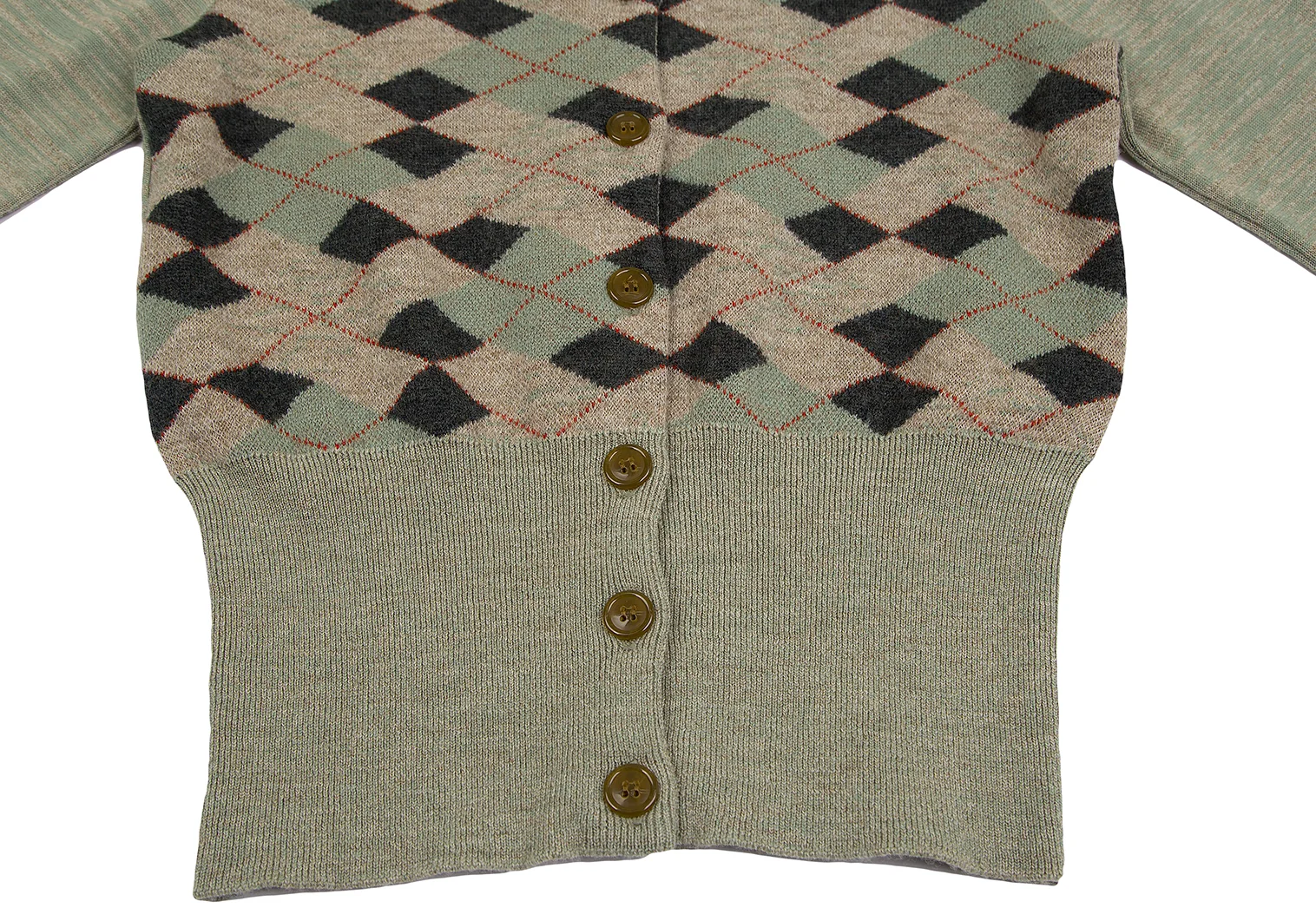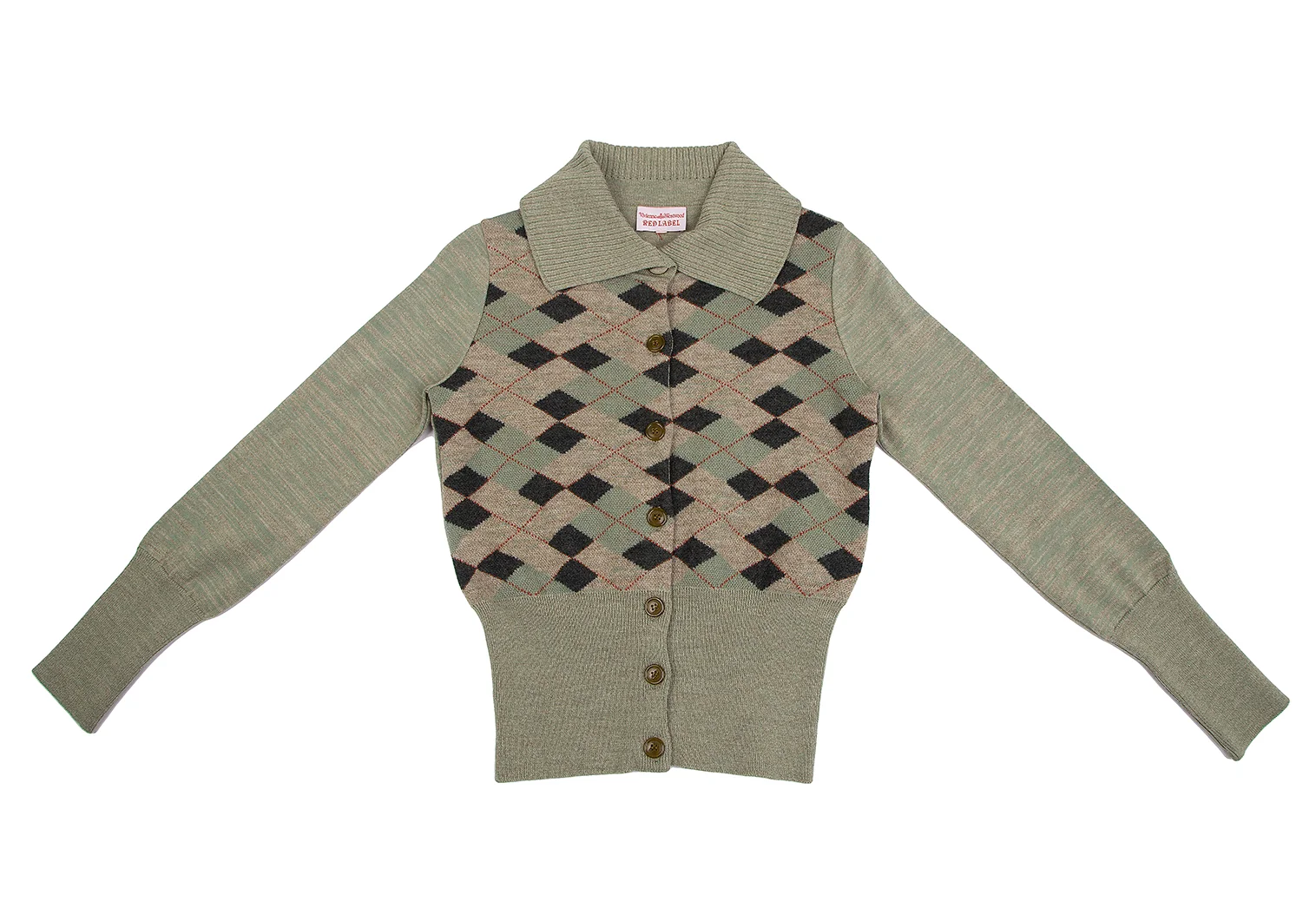 ヴィヴィアンウエストウッド レッドレーベルVivienne Westwood Red Label リブカラーアーガイルチェックカーディガン 緑他M位