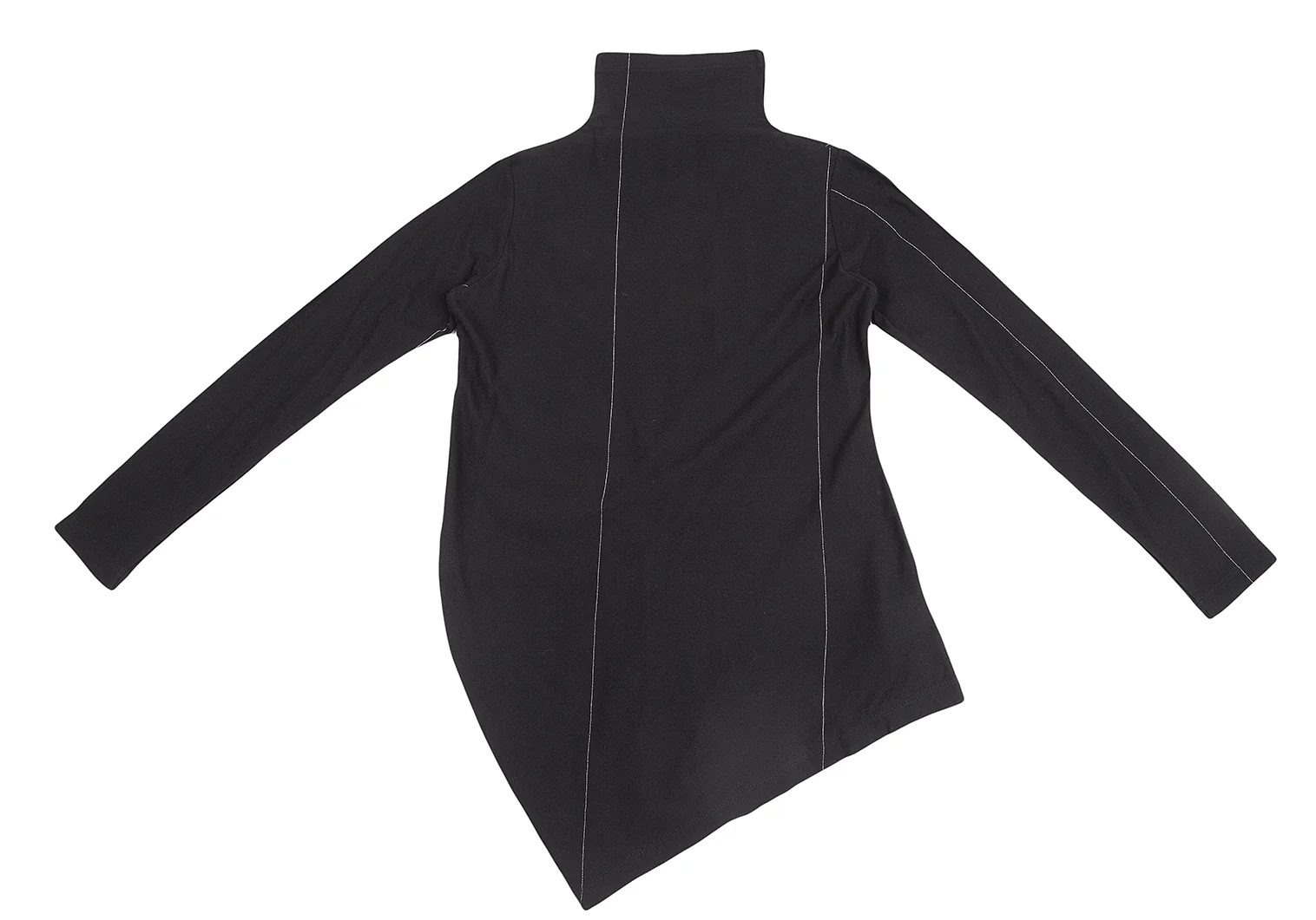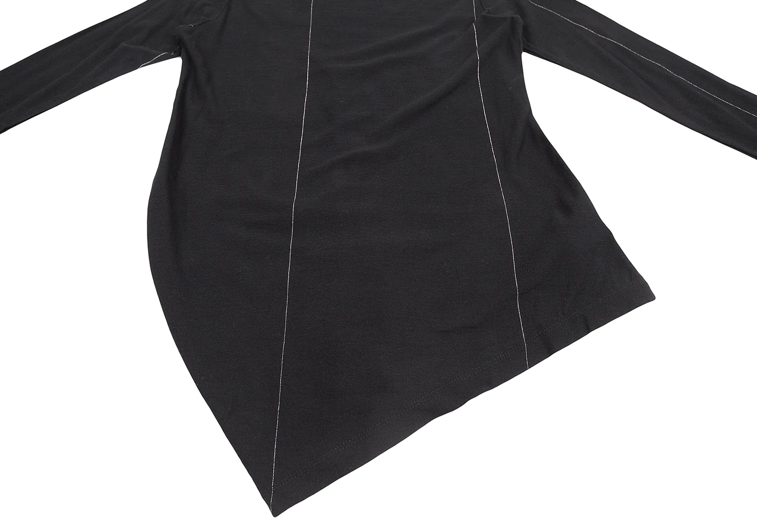 ワイズY's コットンラメステッチドレープハイネックカットソー 黒2