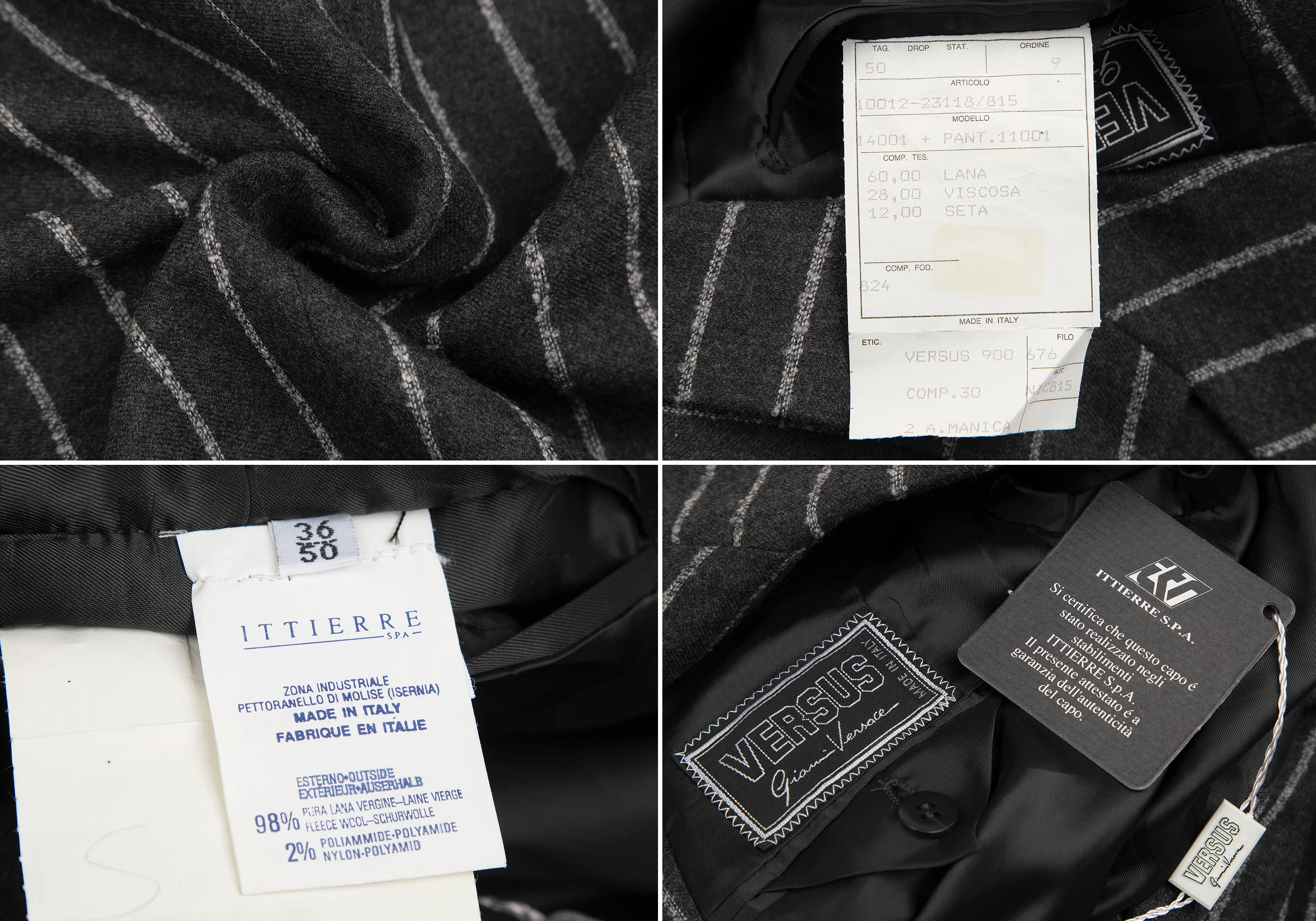 ヴェルサスVERSUS ストライプメタルボタンセットアップスーツ グレー50