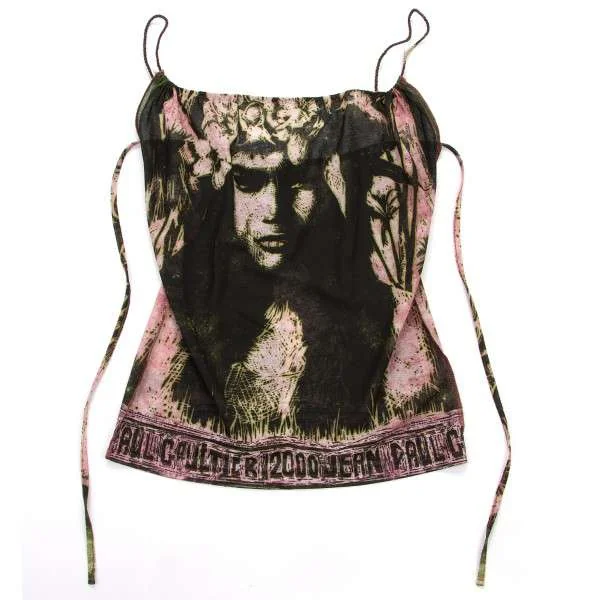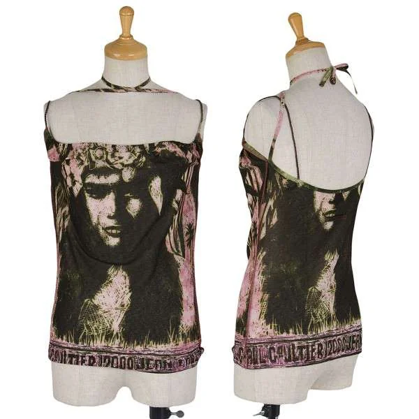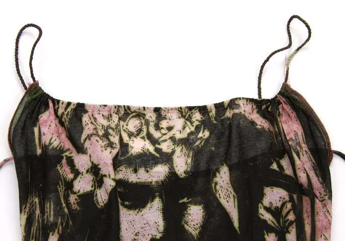 ジャンポールゴルチエファムJean Paul GAULTIER FEMME 人物柄パワーネットキャミソール 黒/ピンク40